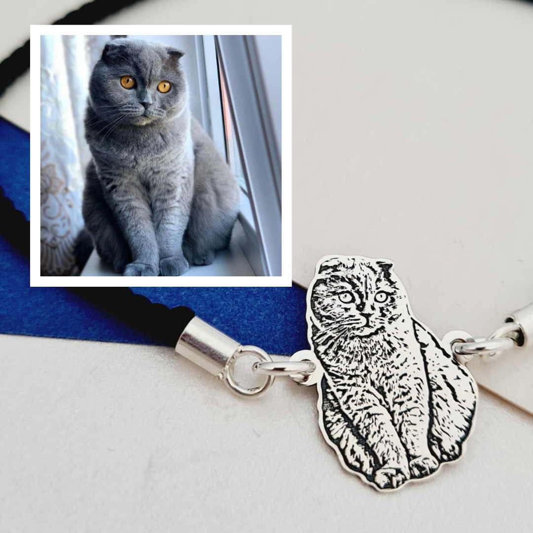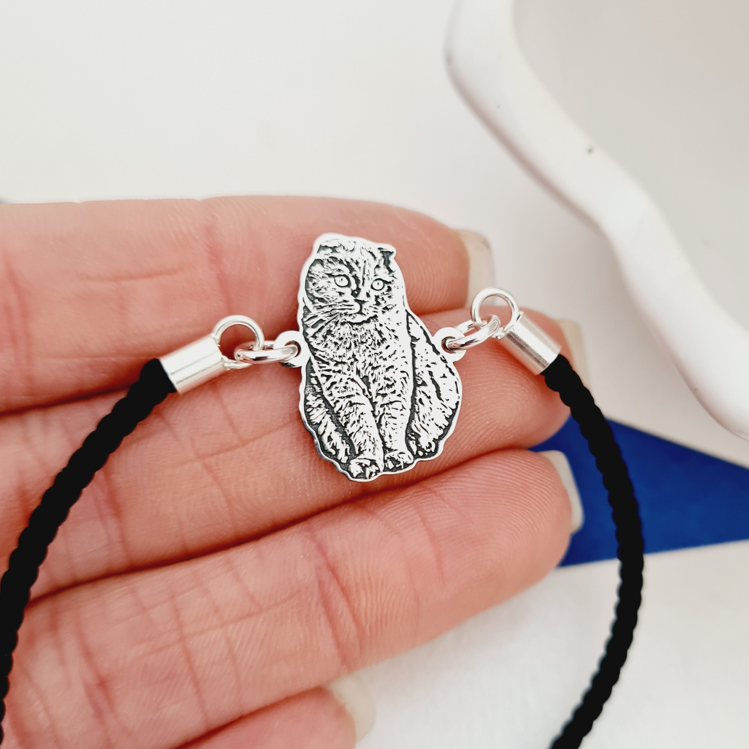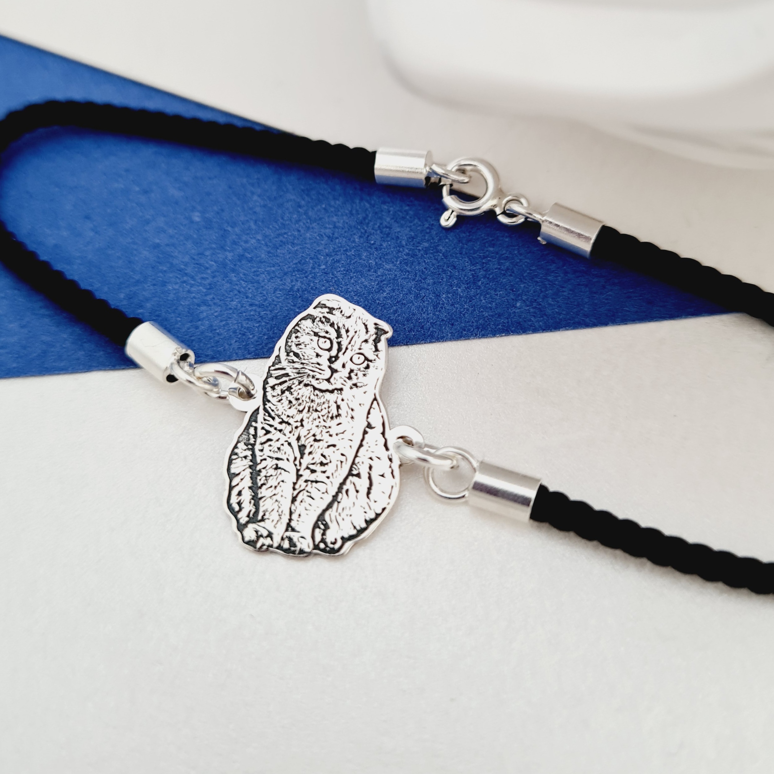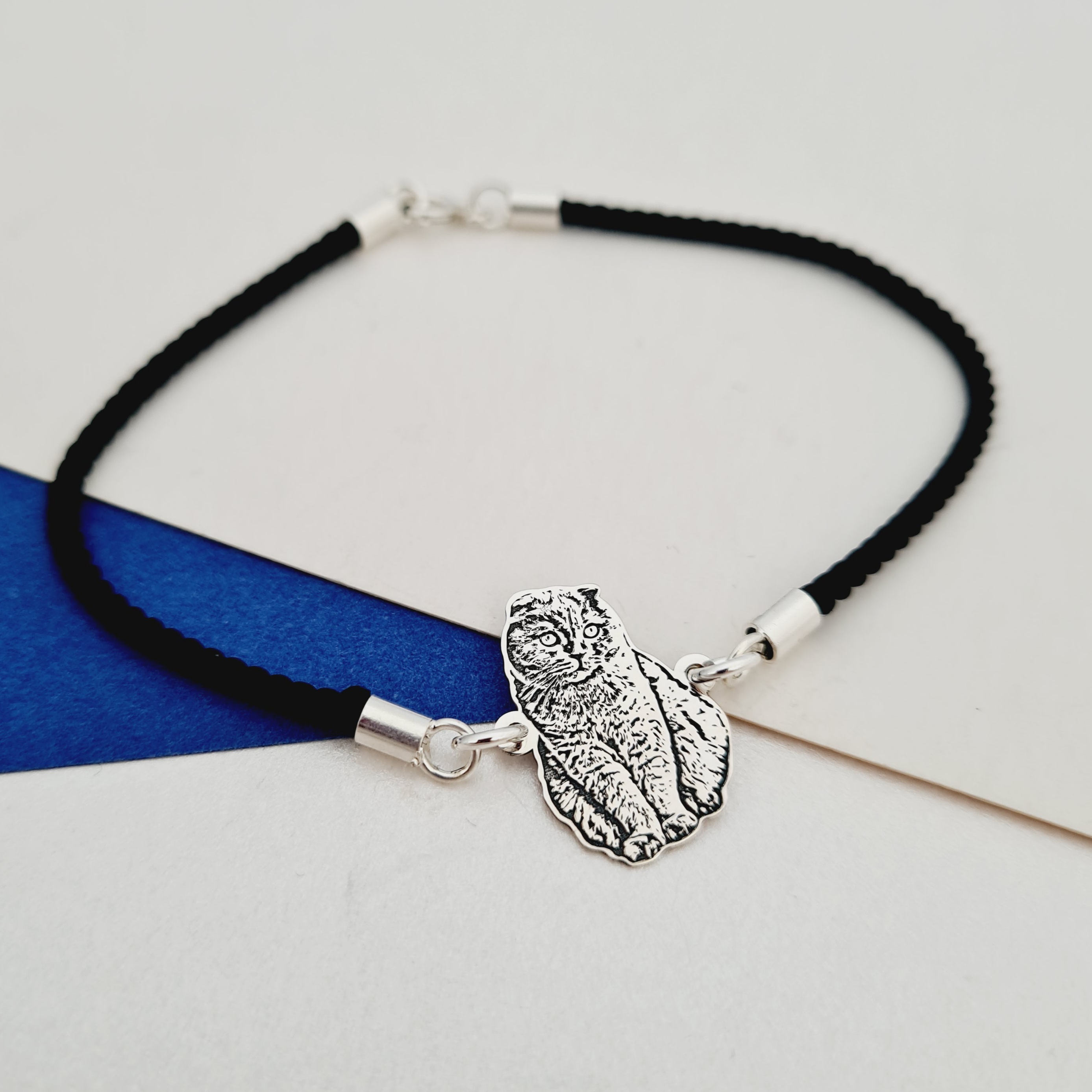 Bratara pisica iubita - Personalizare cu poza - Argint 925 - Snur gros, model fix