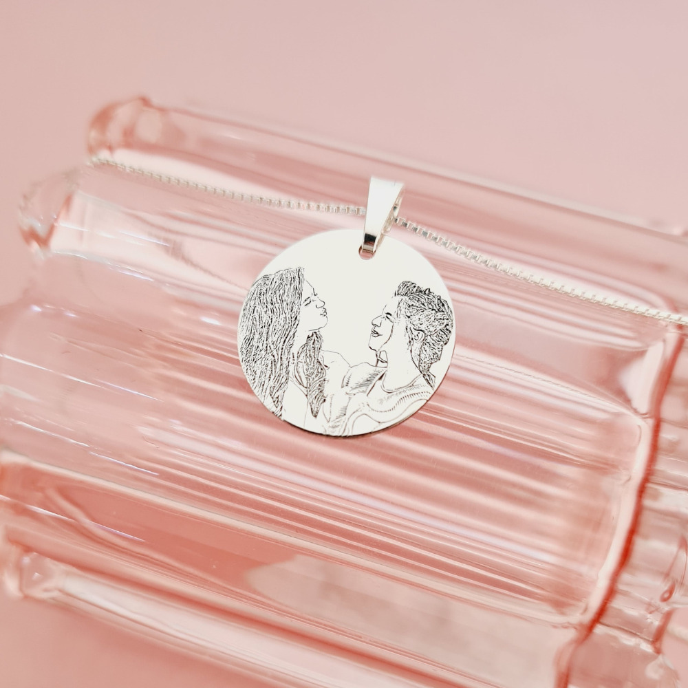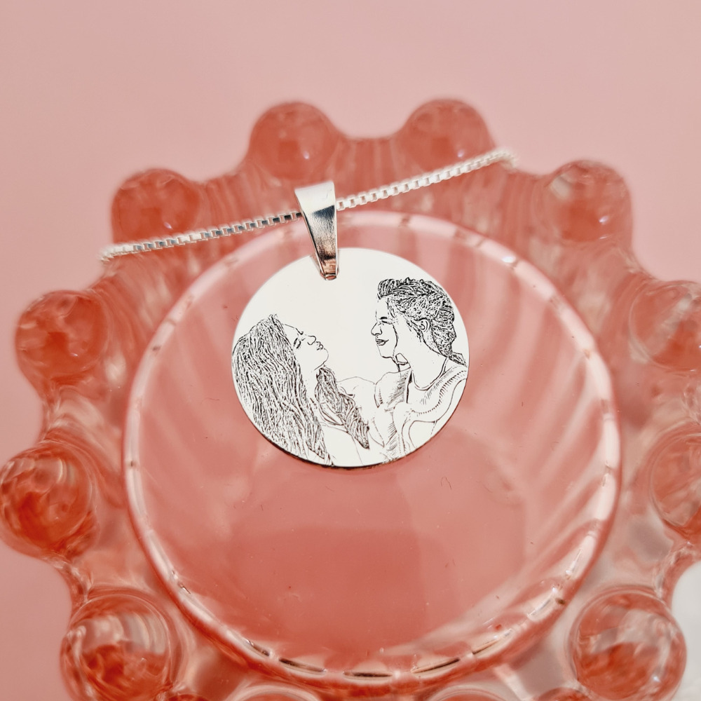 Graveaza fotografia cuiva special direct pe bijuteria aleasa si bucura-te de faptul ca te va insoti mereu. Bijuteria cu fotogravura creaza o reproducere in miniatura a fotografiei tale. Detaliile sunt incredibile si vei fi uimit(a) de liniile fine si de claritatea gravurii.
