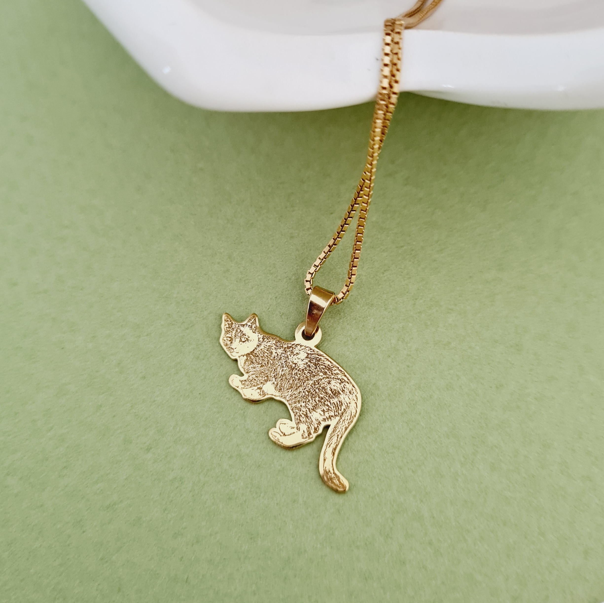 Lantisor pisica iubita - Personalizare cu poza - Argint 925 placat cu Aur Galben 18K