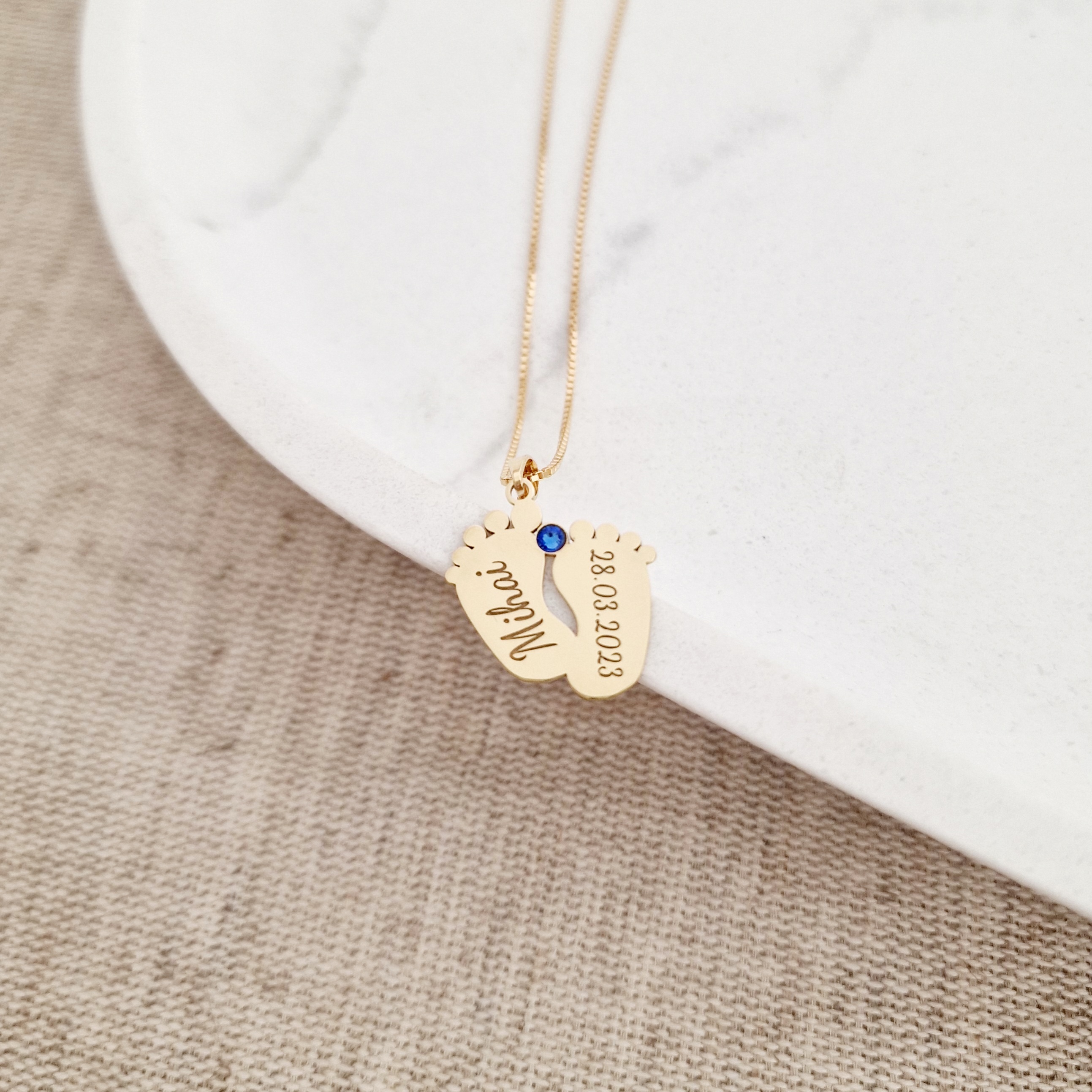 Lantisor cu pandantiv Picioruse gravate - Argint 925 placat cu Aur Galben 18K, Cristal Swarovski