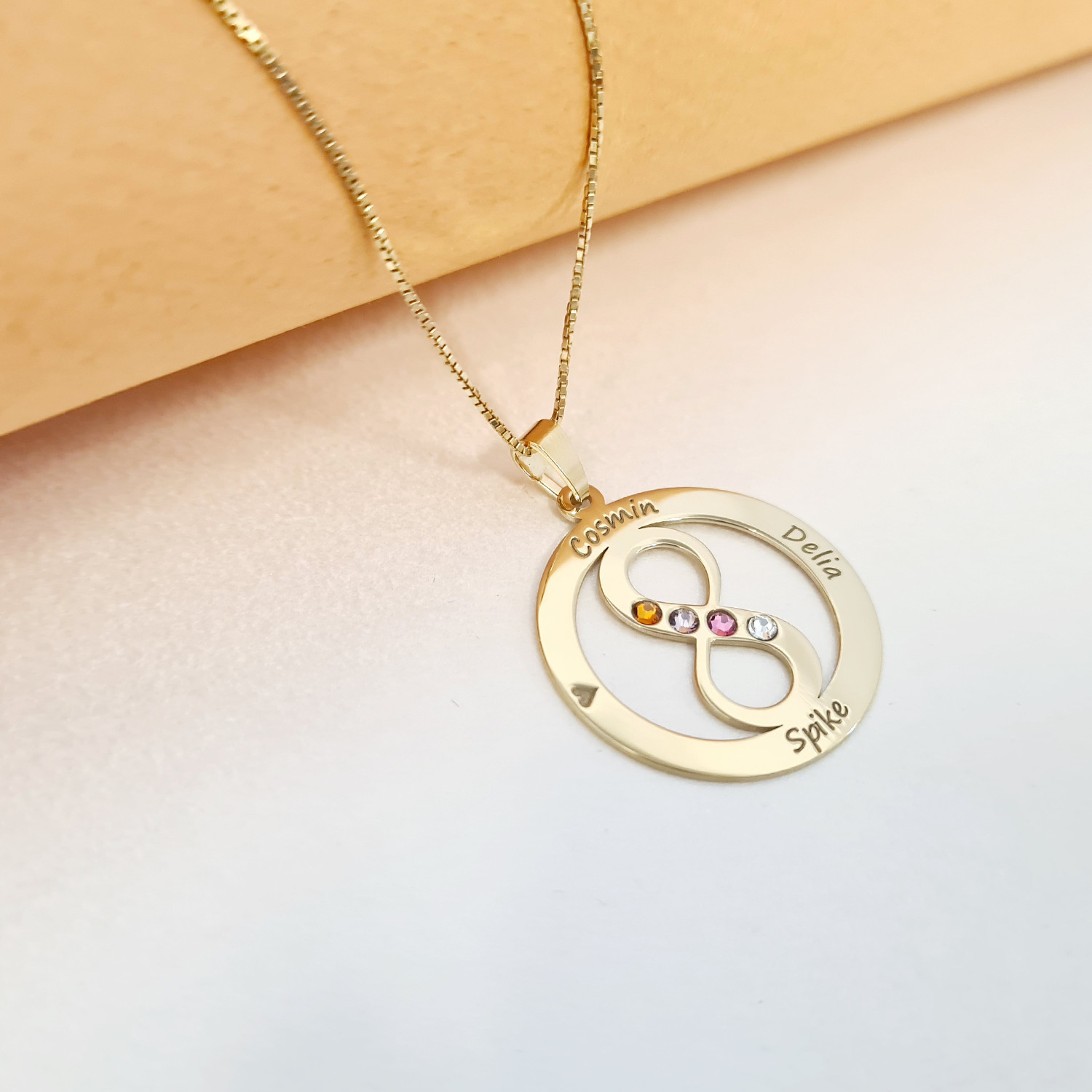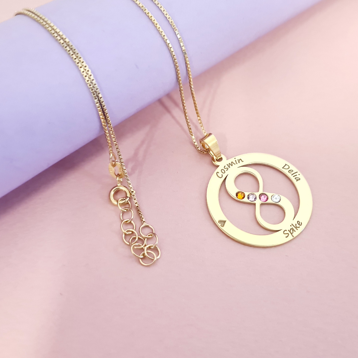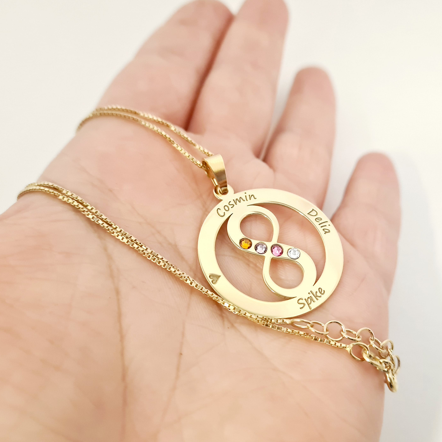 Lantisor Iubire Infinita - 4 nume - Argint 925 placat cu Aur 18K si cristale Swarovski
