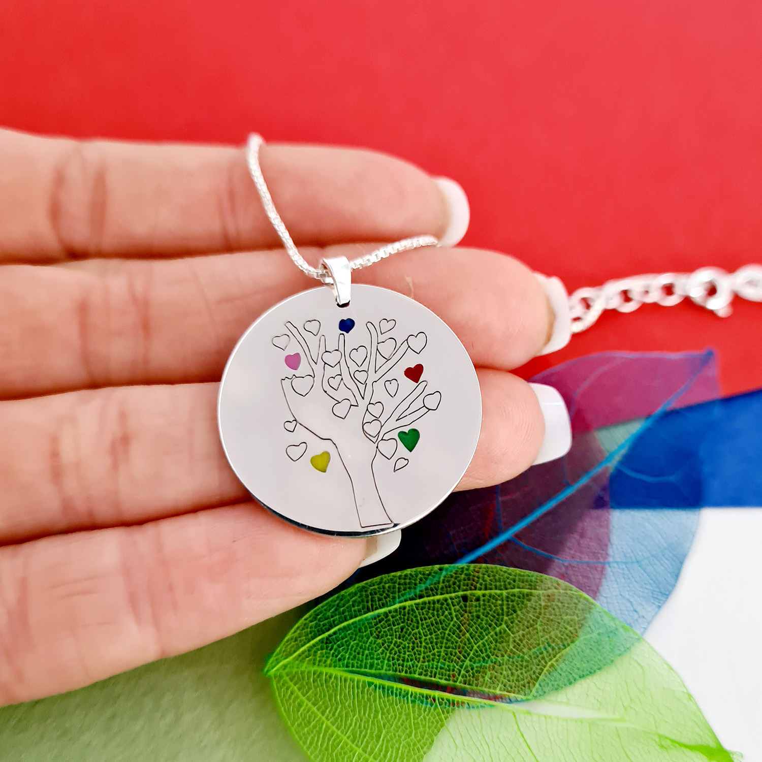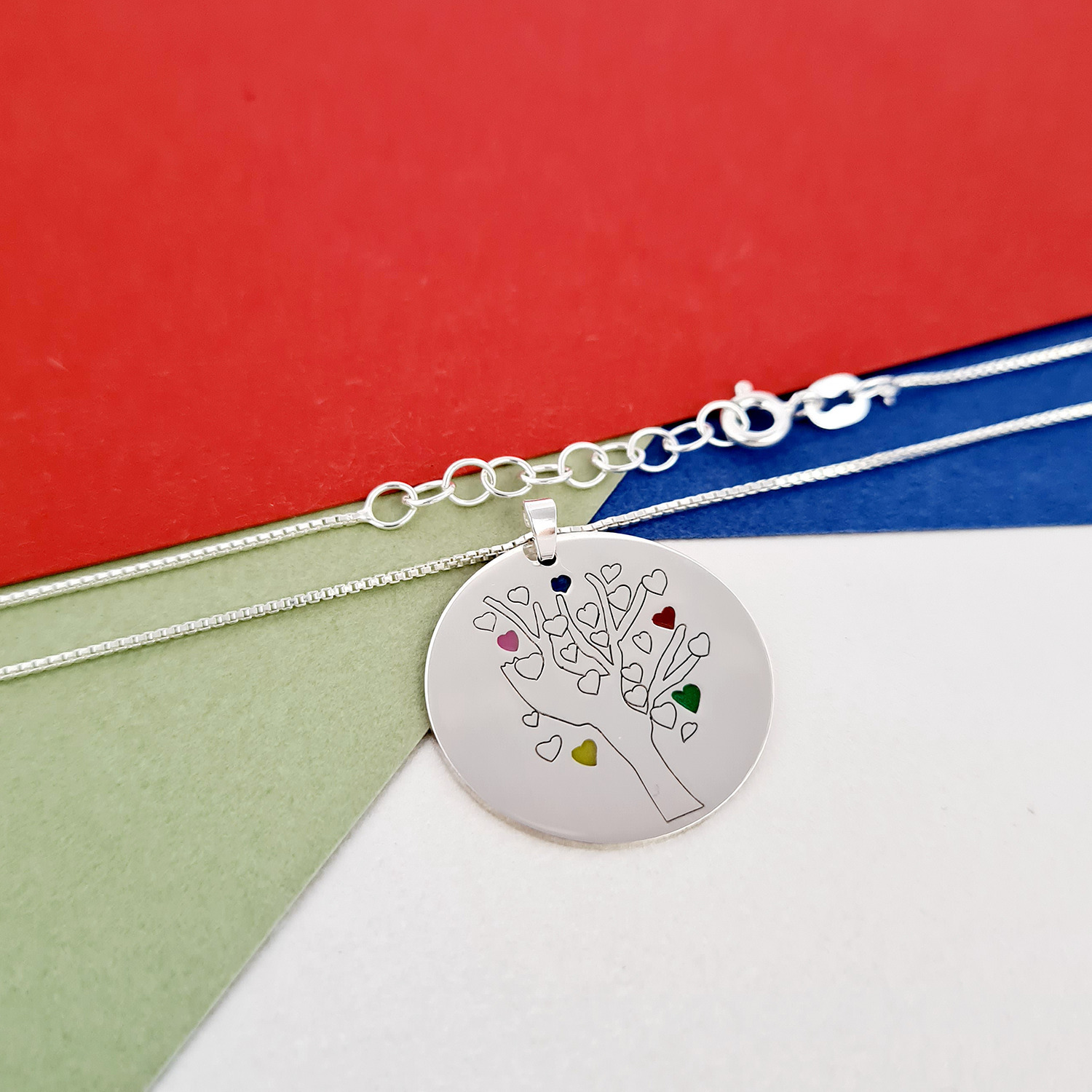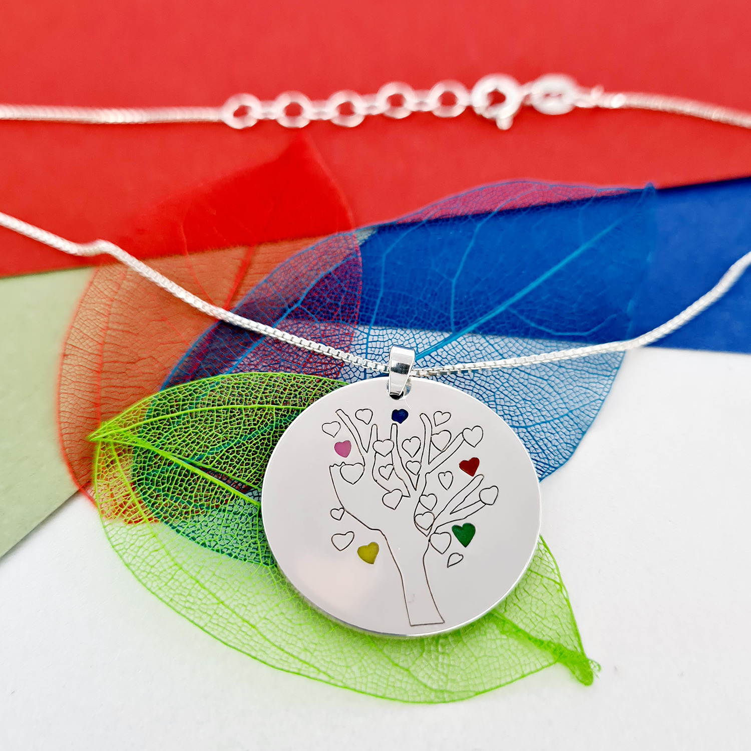 Lantisor LUCAS colectia Our Children - Pandantiv copac cu inimi colorate - Argint 925 si email