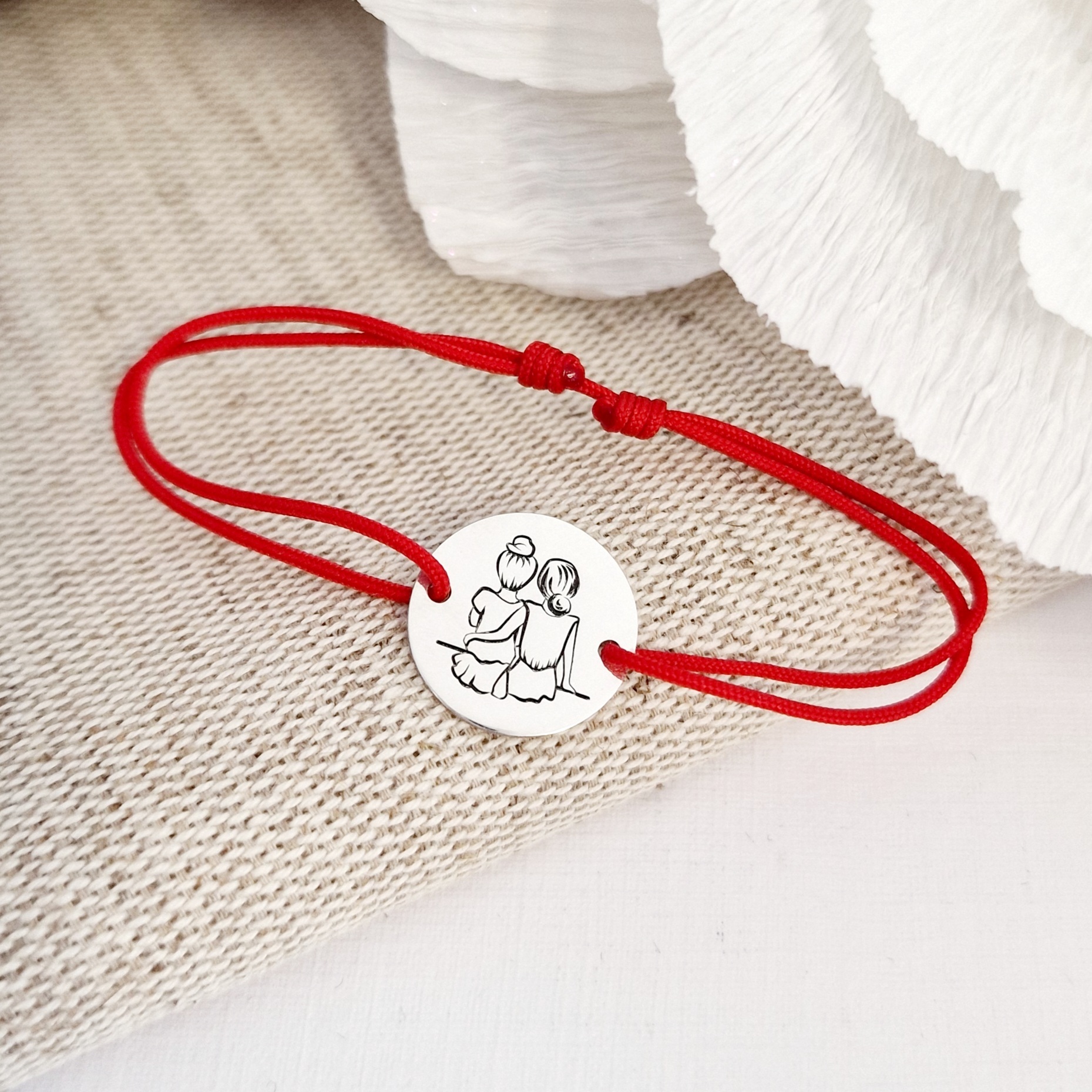 Bratara 2 surori / prietene - Argint 925, snur rosu