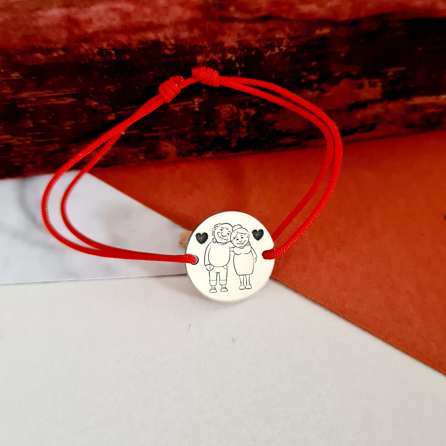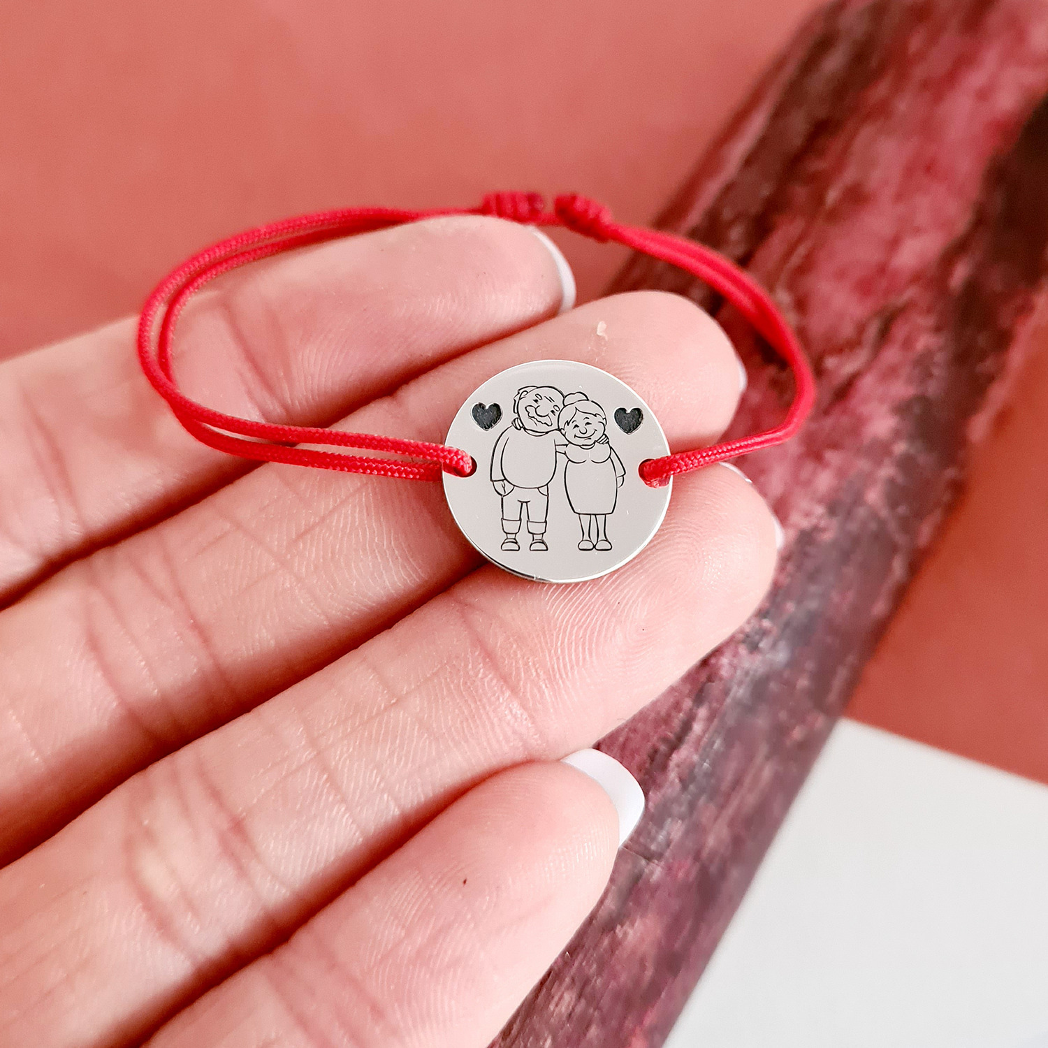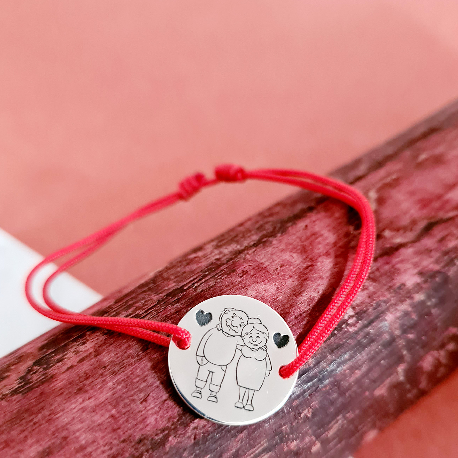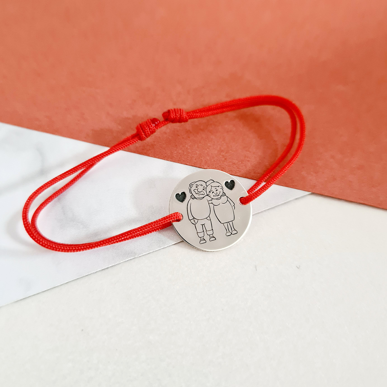 Bratara banut cu siluete bunici - Argint 925, snur reglabil