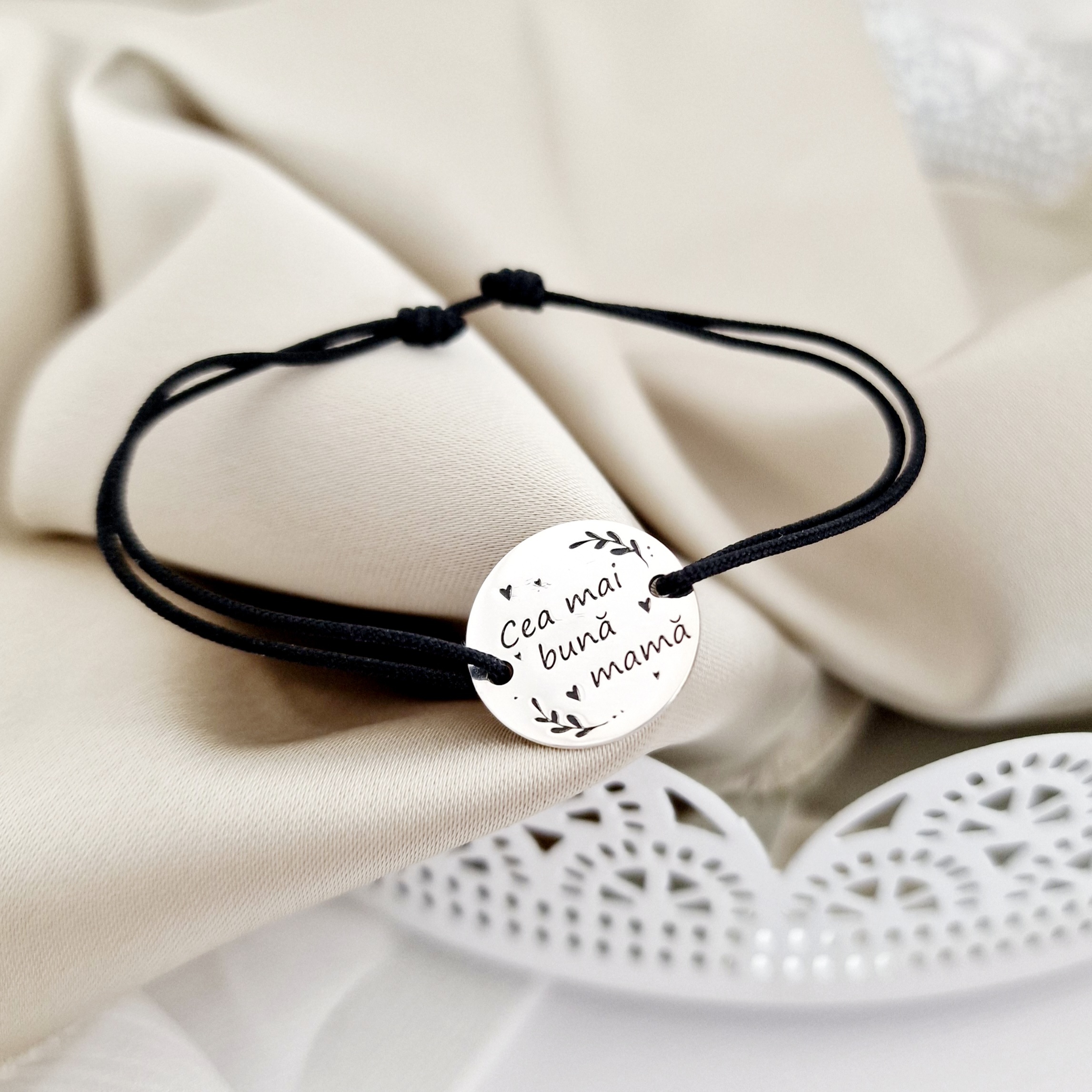 Bratara Cea mai buna mama - Argint 925, snur negru