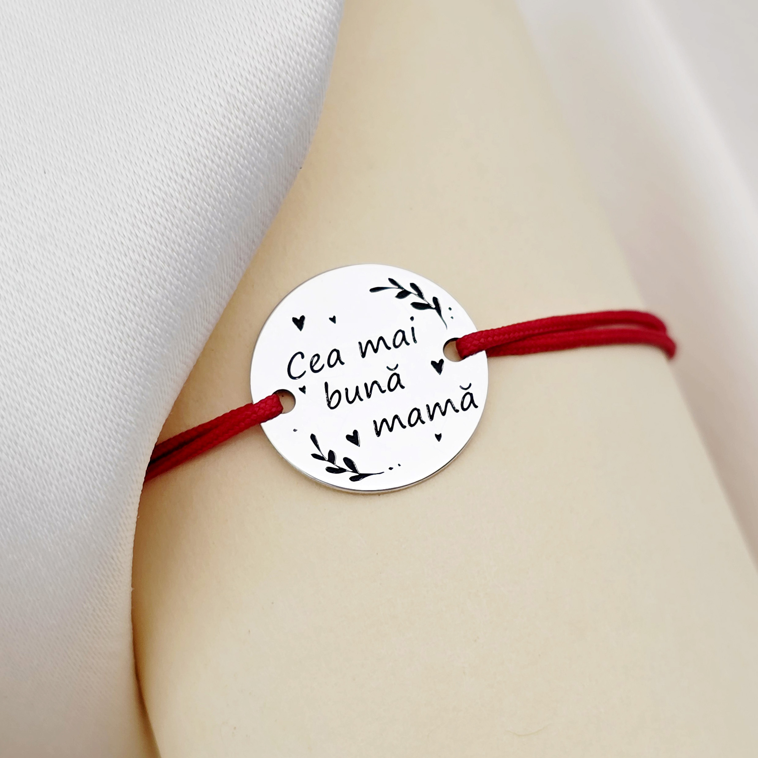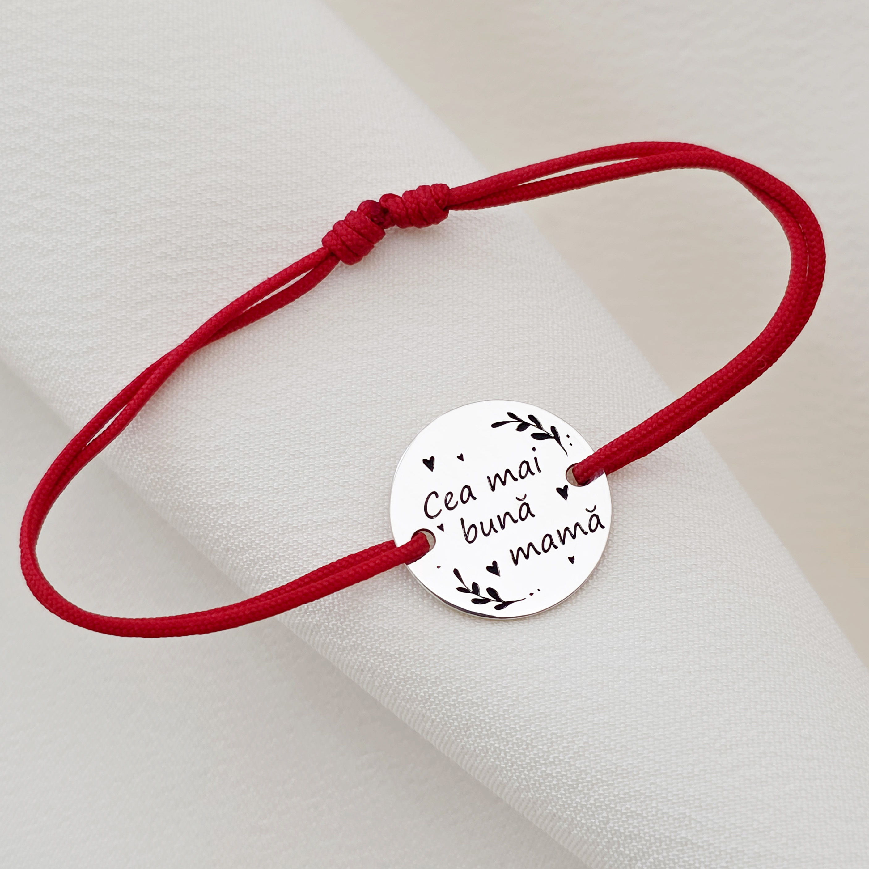 Bratara Cea mai buna mama - Argint 925, snur rosu