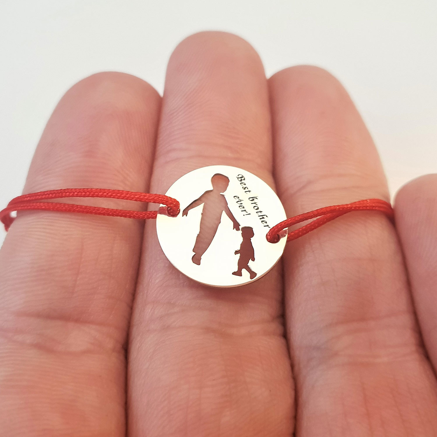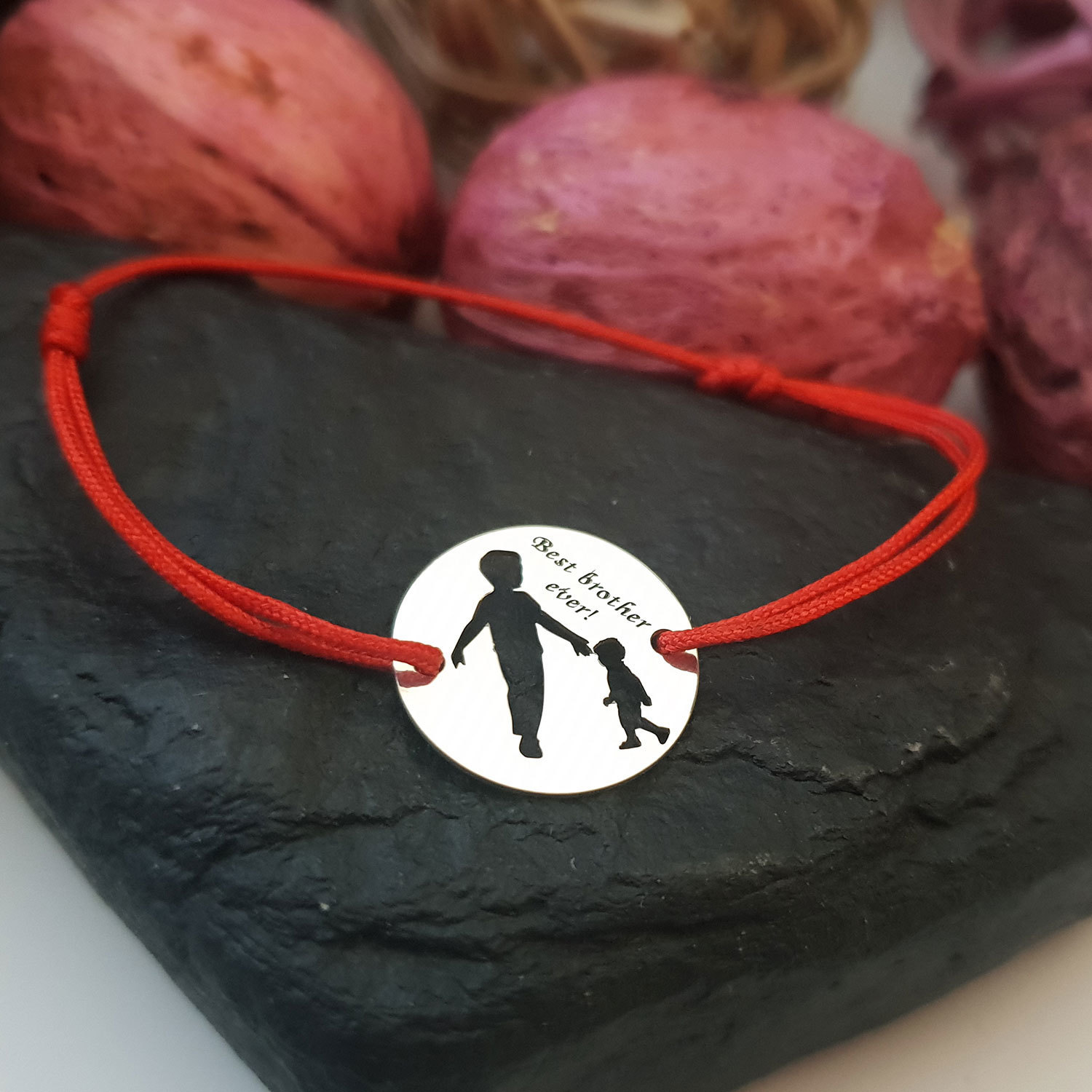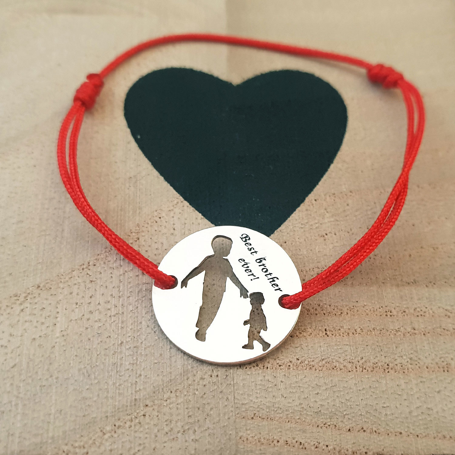Modelul de pe bratara este reprezentat de 2 siluete de frati decupate si un mesaj special.