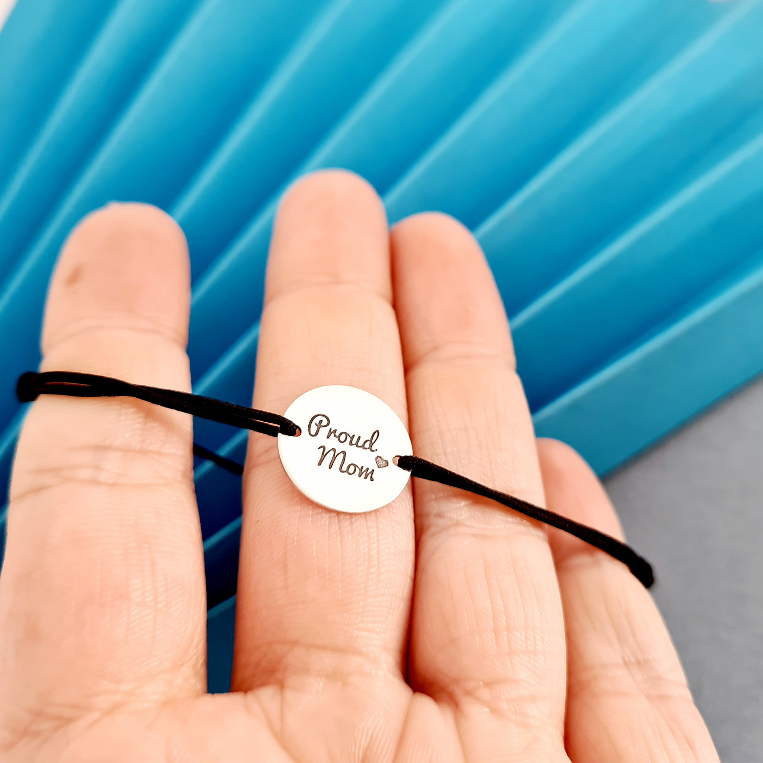 Bratara Proud Mom - Argint 925, snur negru