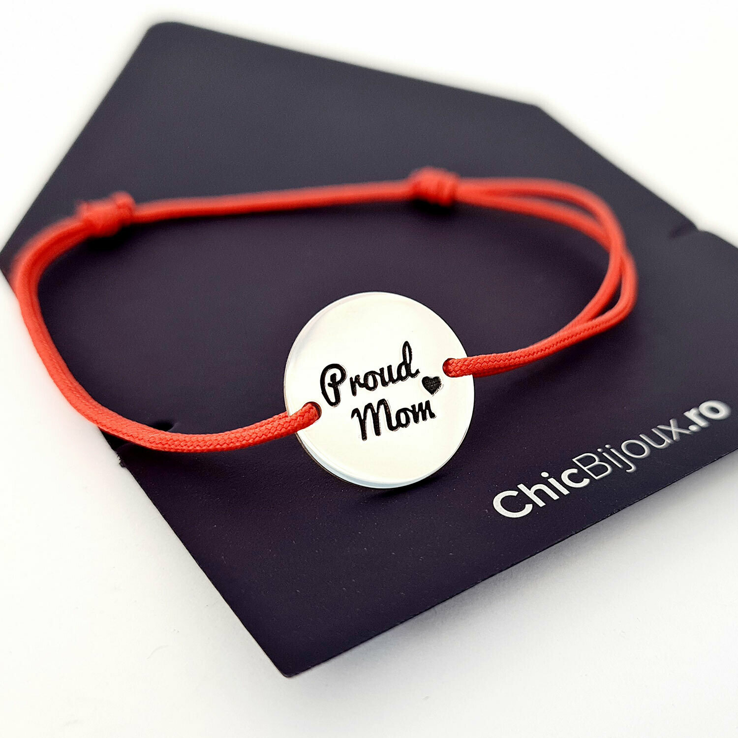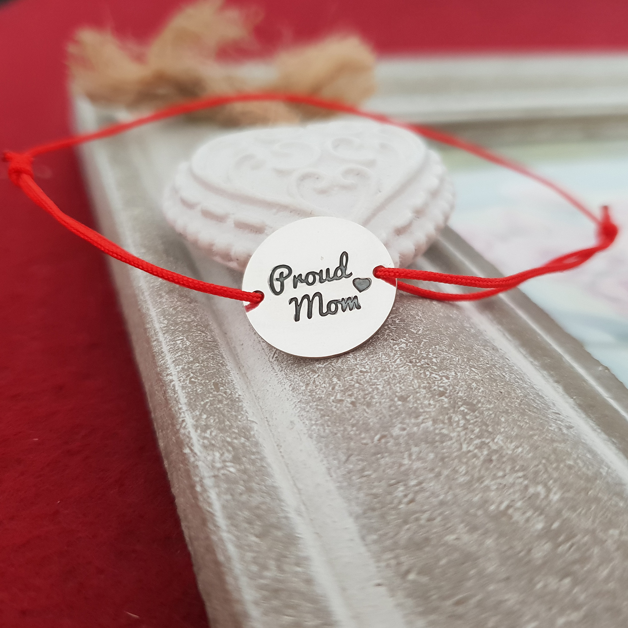 Bratara Proud Mom - Argint 925, snur rosu