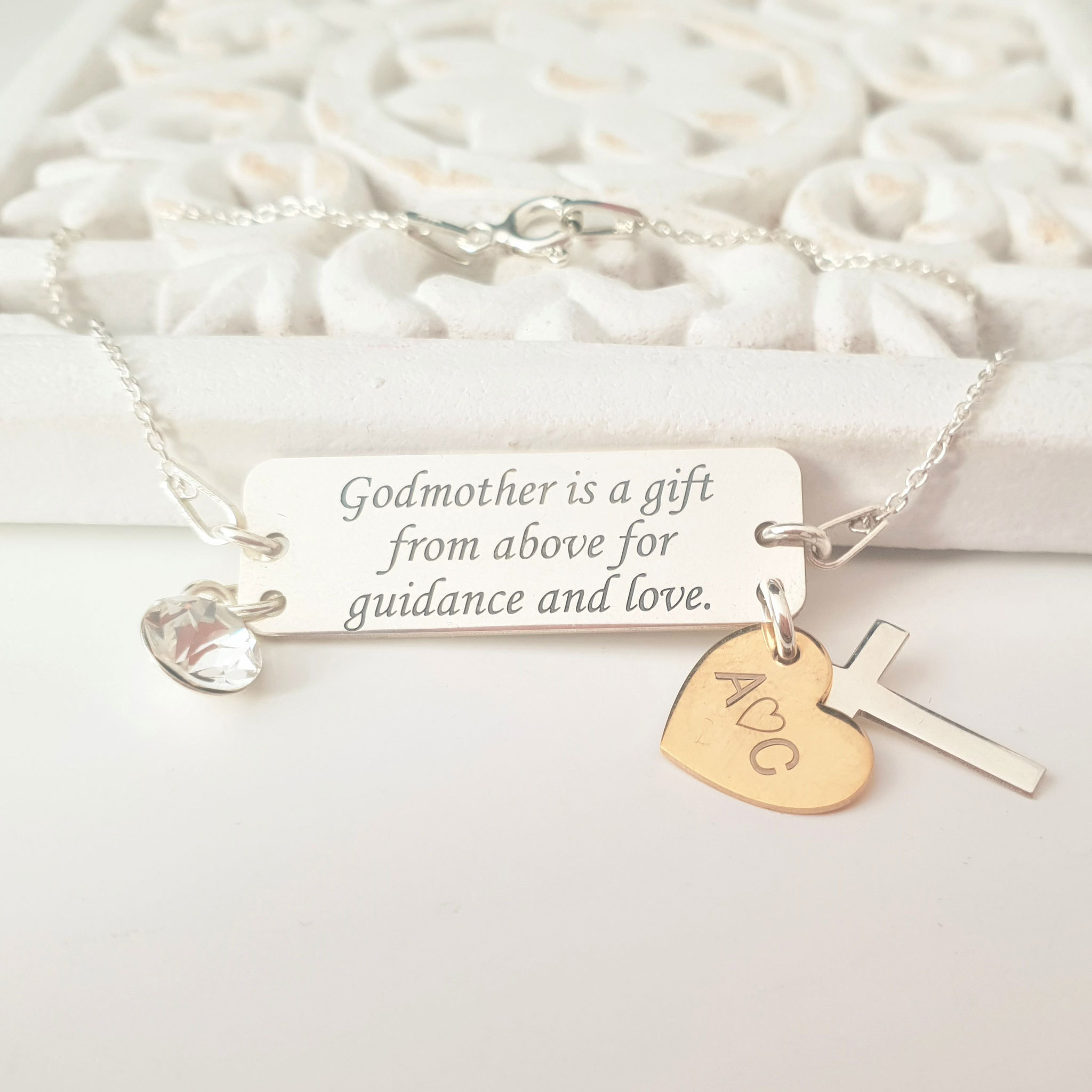 Bratrara personalizata - Nasa de cununie sau botez - placuta gravata si pandantive atasate tip charm - Argint 925, lantisor