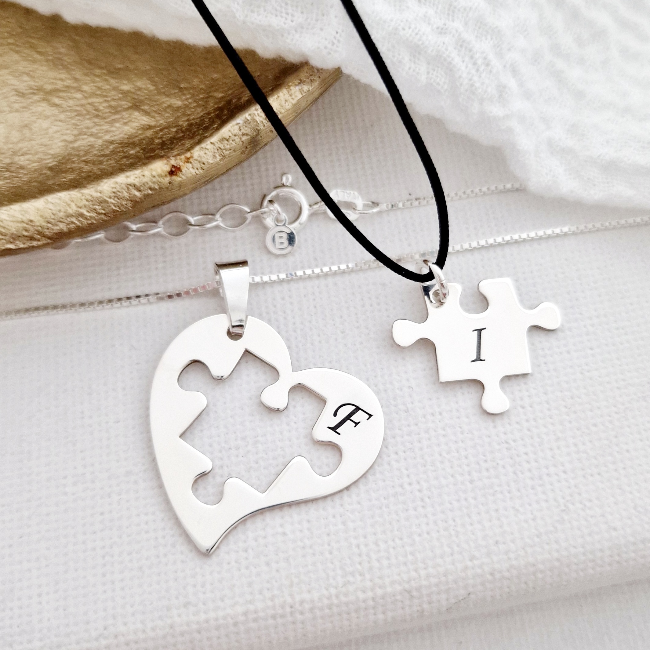 Set 2 lantisoare - Cuplu - Inima si Puzzle - Argint 925