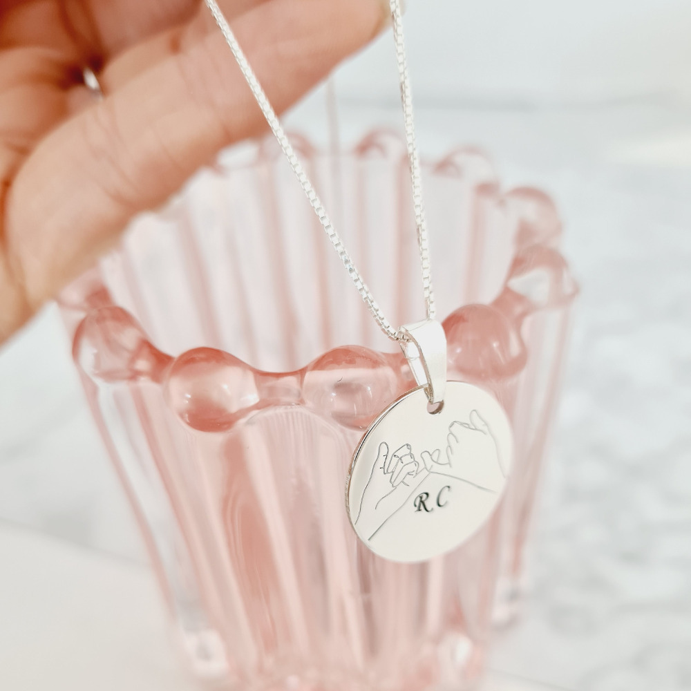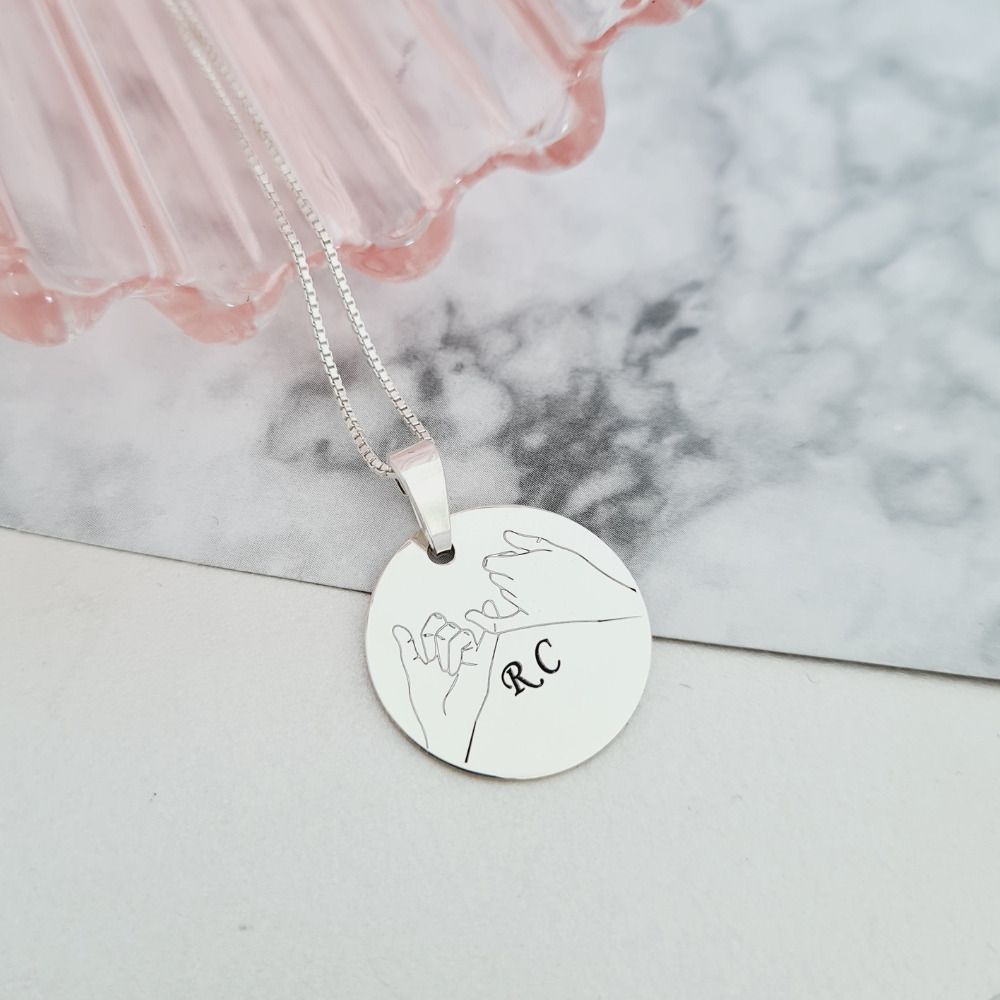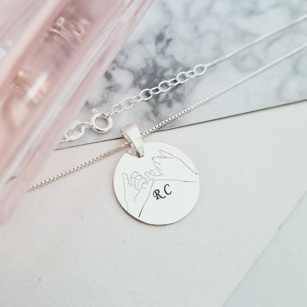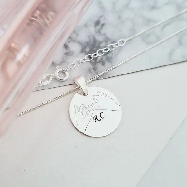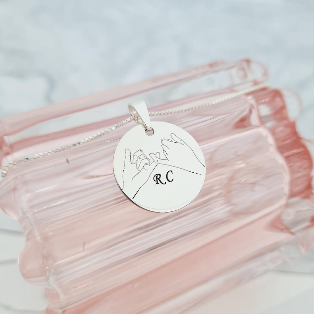 Lantisor cu pandantiv banut cu 2 maini gravate - Promisiune - Pinky promise - Argint 925