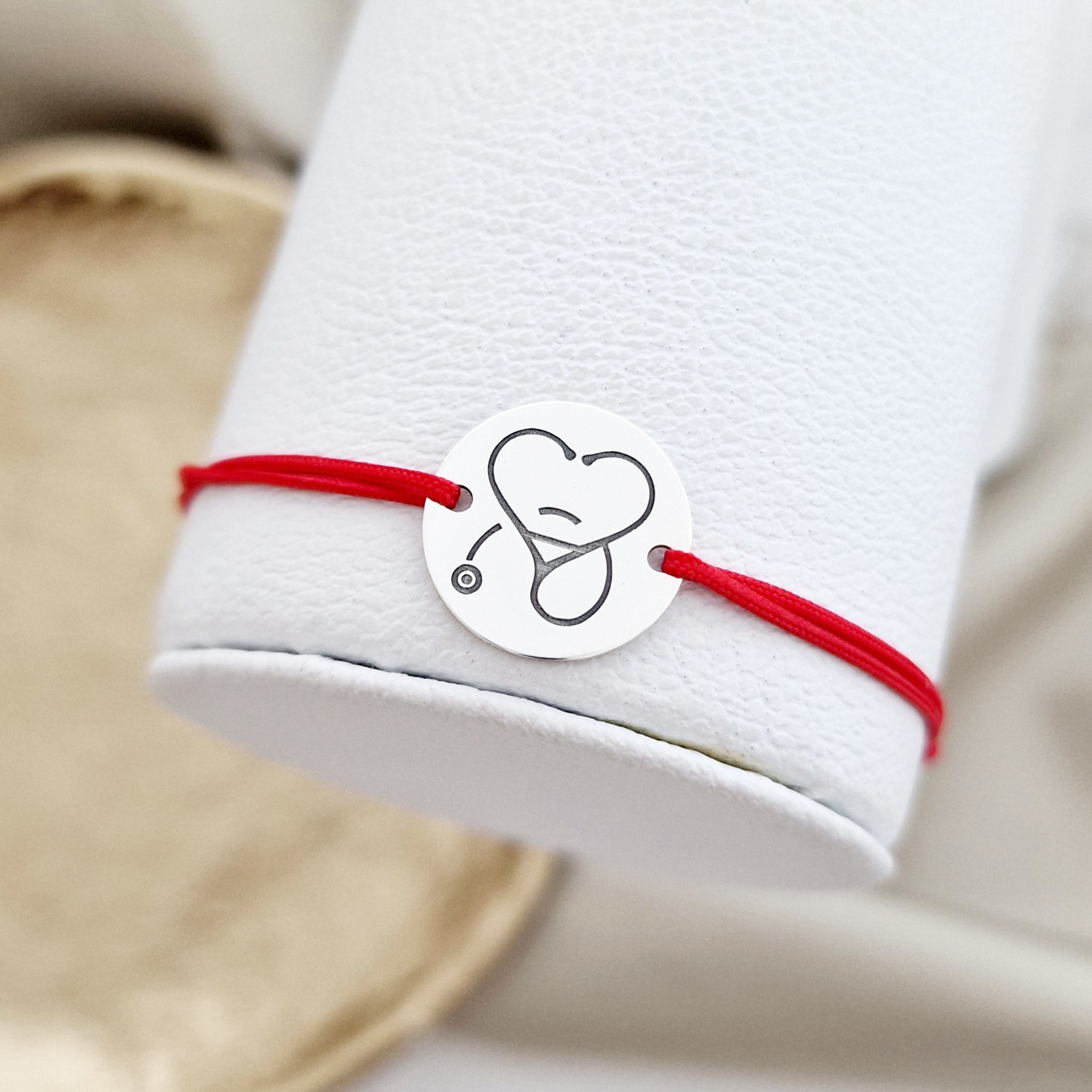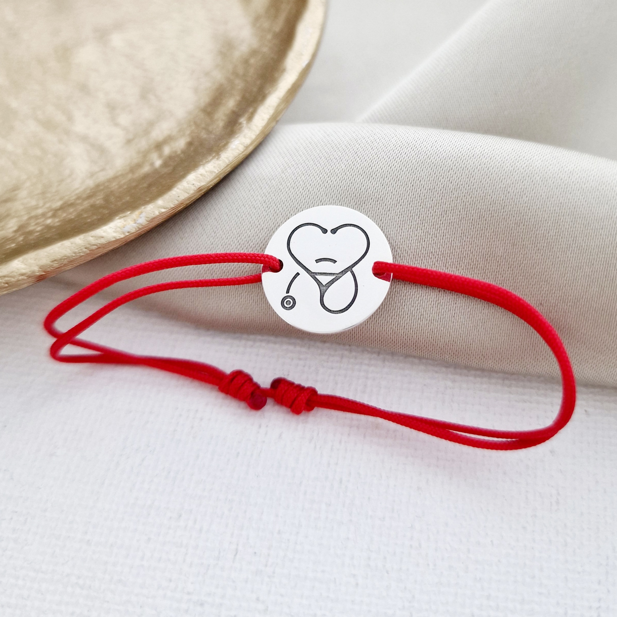 Bratara banut personalizata - Stetoscop sub forma unei inimi - Argint 925, snur reglabil diverse culori