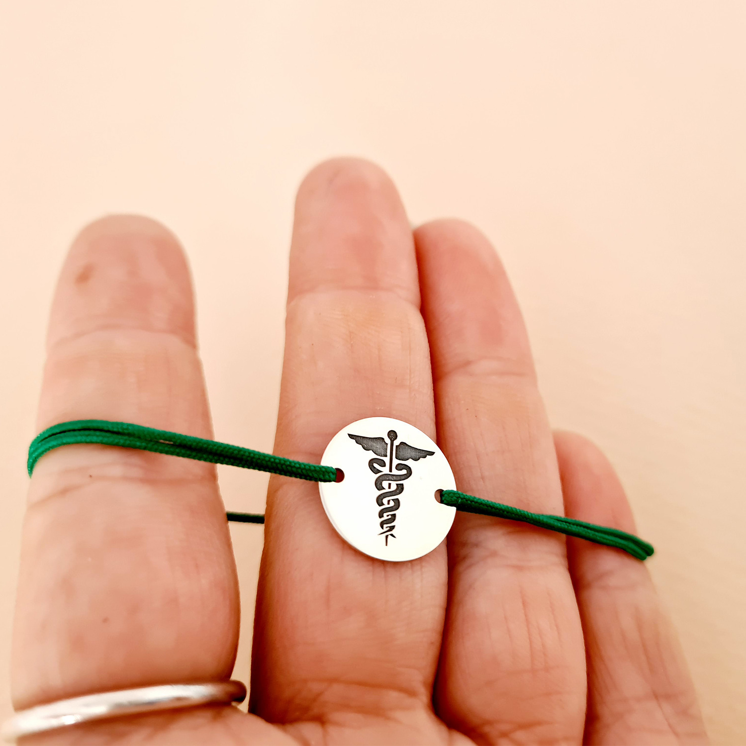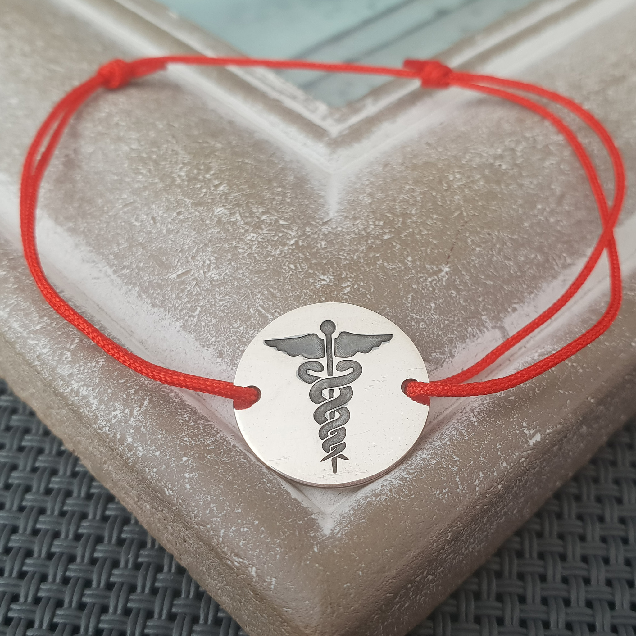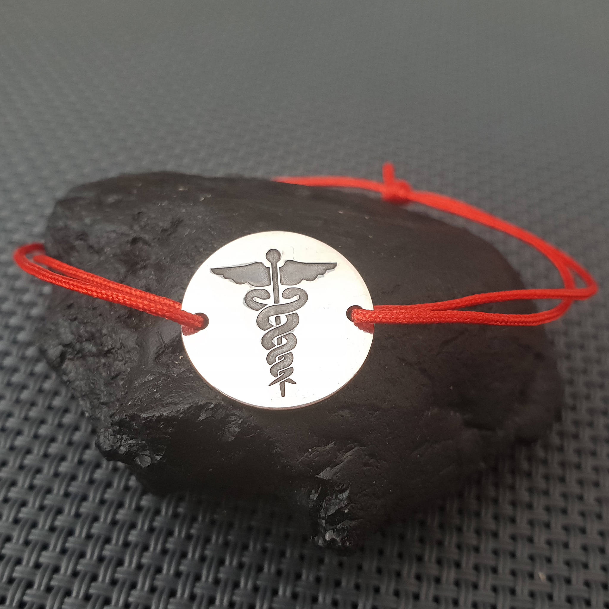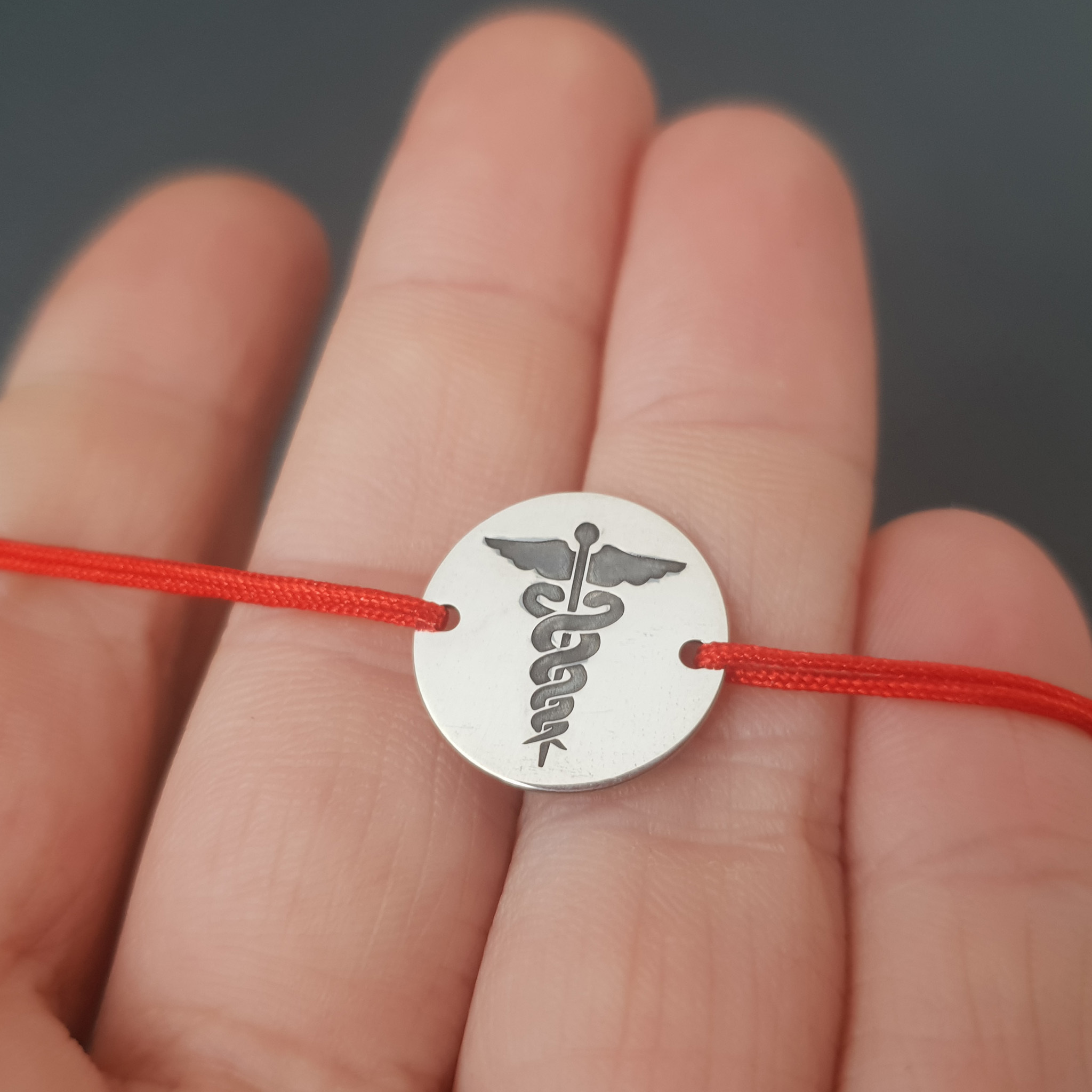 Bratara poate fi un cadou personalizat pentru medici, doctori, rezidenti, studenti etc. De asemenea poti alege sa gravezi o data, o mica amintire sau initiala pe banutul din Argint 925 de 1,5 cm.