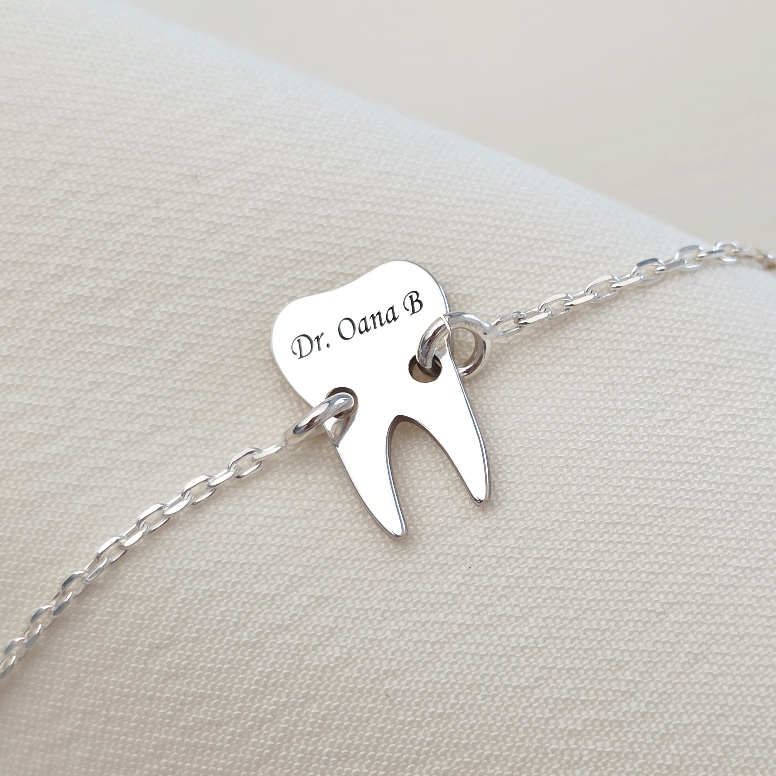 Se zice ca un mar pe zi tine dentistul la distanta, dar noi va recomandam sa il tineti aproape de voi cu un cadou simpatic si de efect: o bratara dinte pe care puteti alege sa o personalizati prin gravarea numelui sau initialelor.