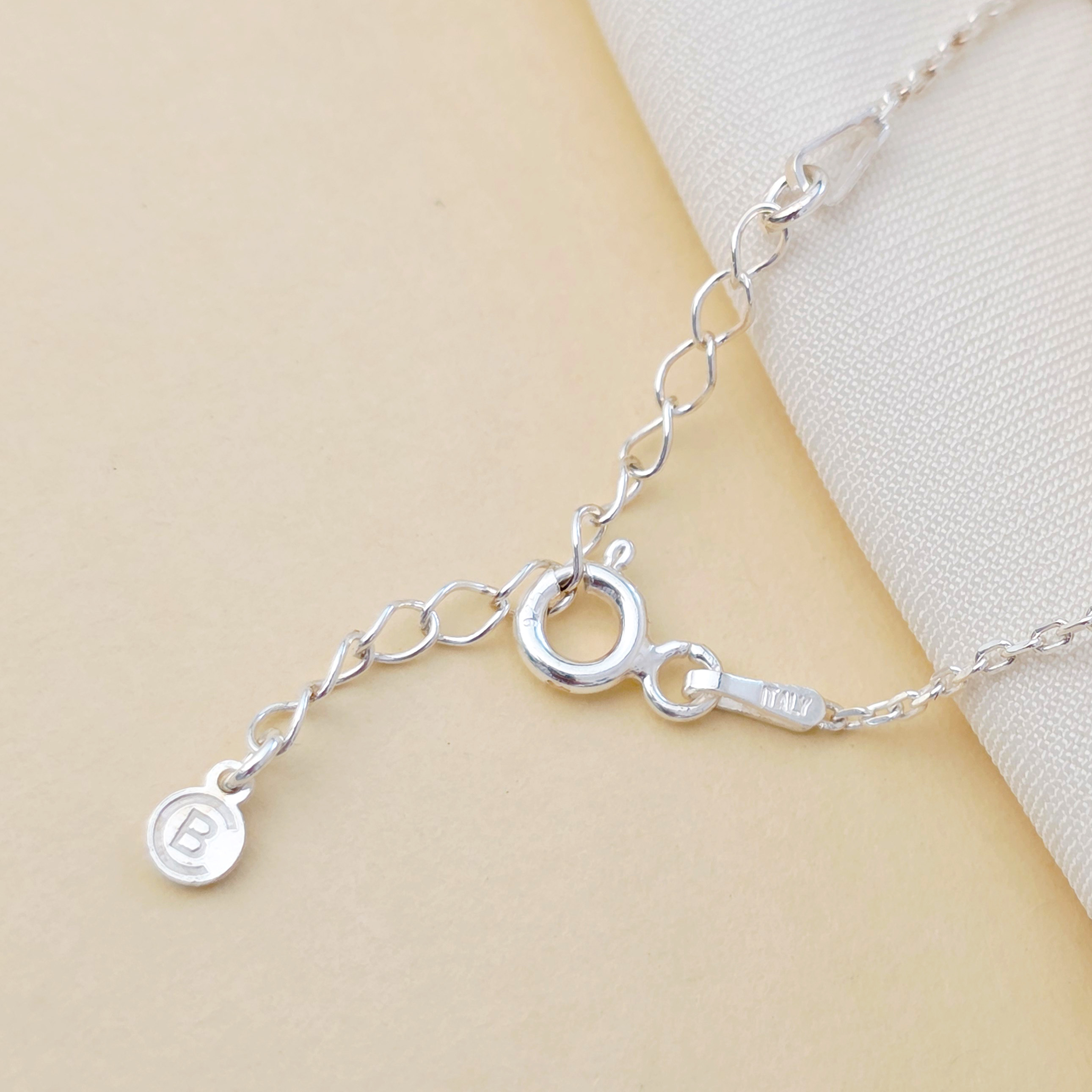 Bratara este creata din Argint 925 prin taiere si gravare laser, avand dimensiunea de 12 x 8 mm si vine atasata de un lantisor din Argint 925. Dimensiunea totala a bratarii este de 15,8 cm, iar la cerere se poate adauga o prelungire de 5 cm. Un cadou deosebit!