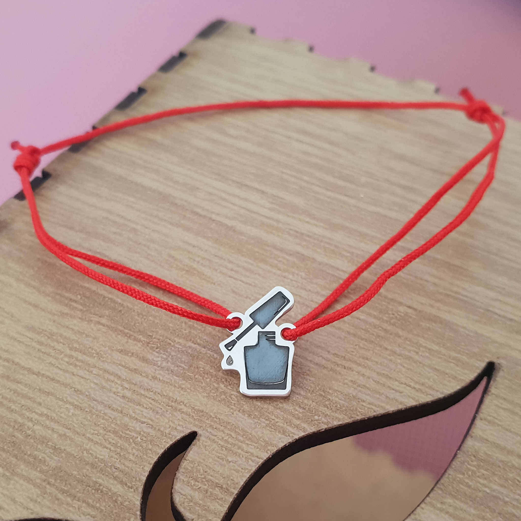 Bratara lac unghii - Argint 925, snur rosu reglabil