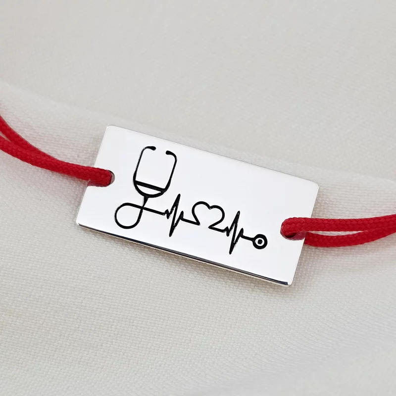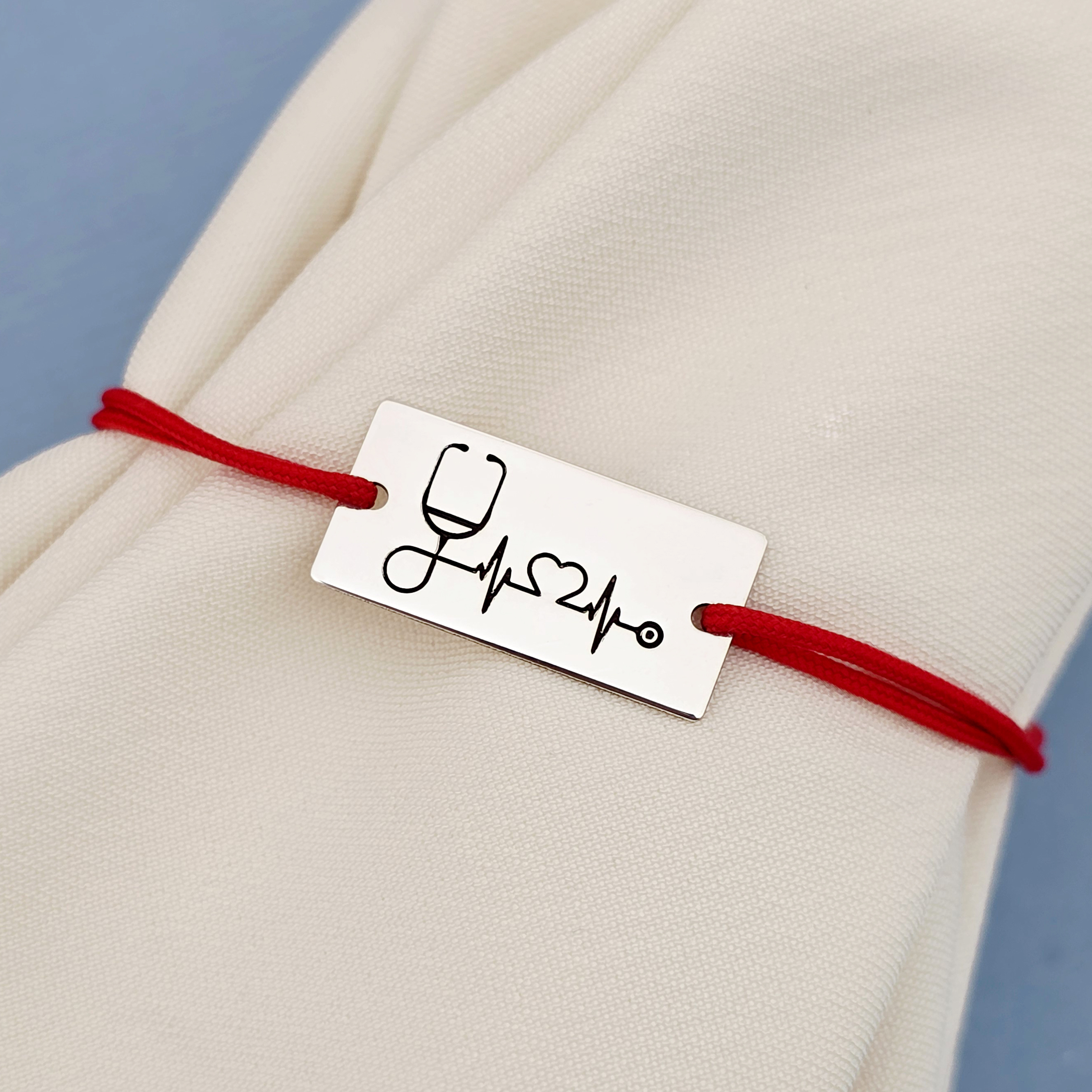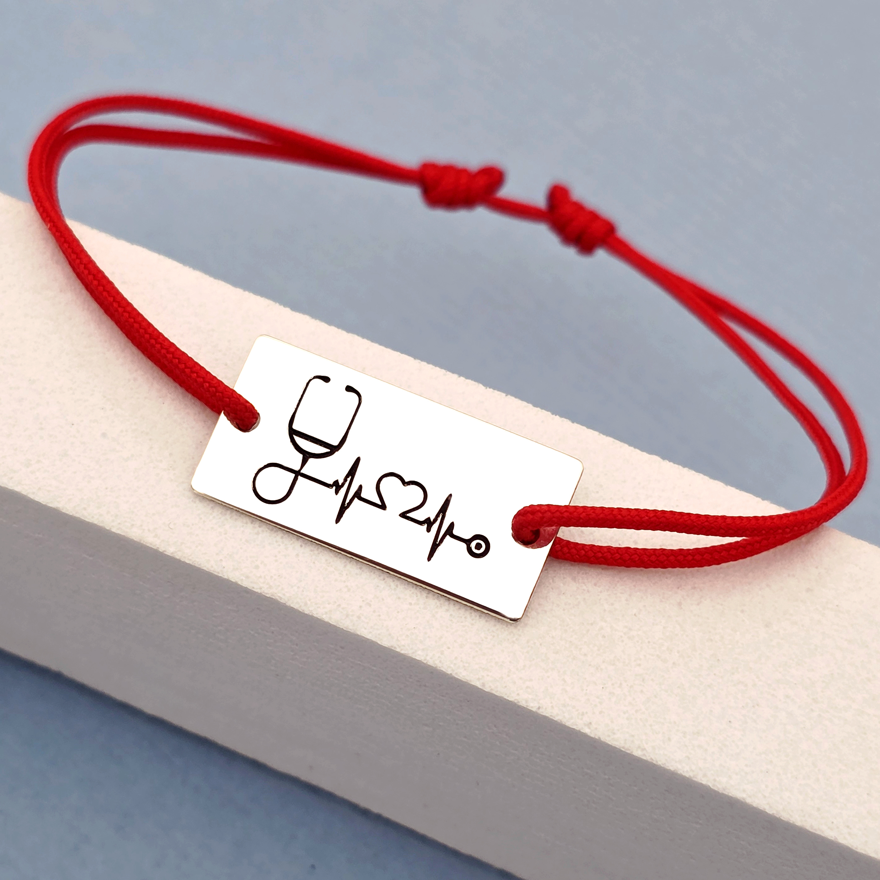Bratara personalizata placuta - Stetoscop si bataia inimii - Argint 925, snur reglabil diverse culori
