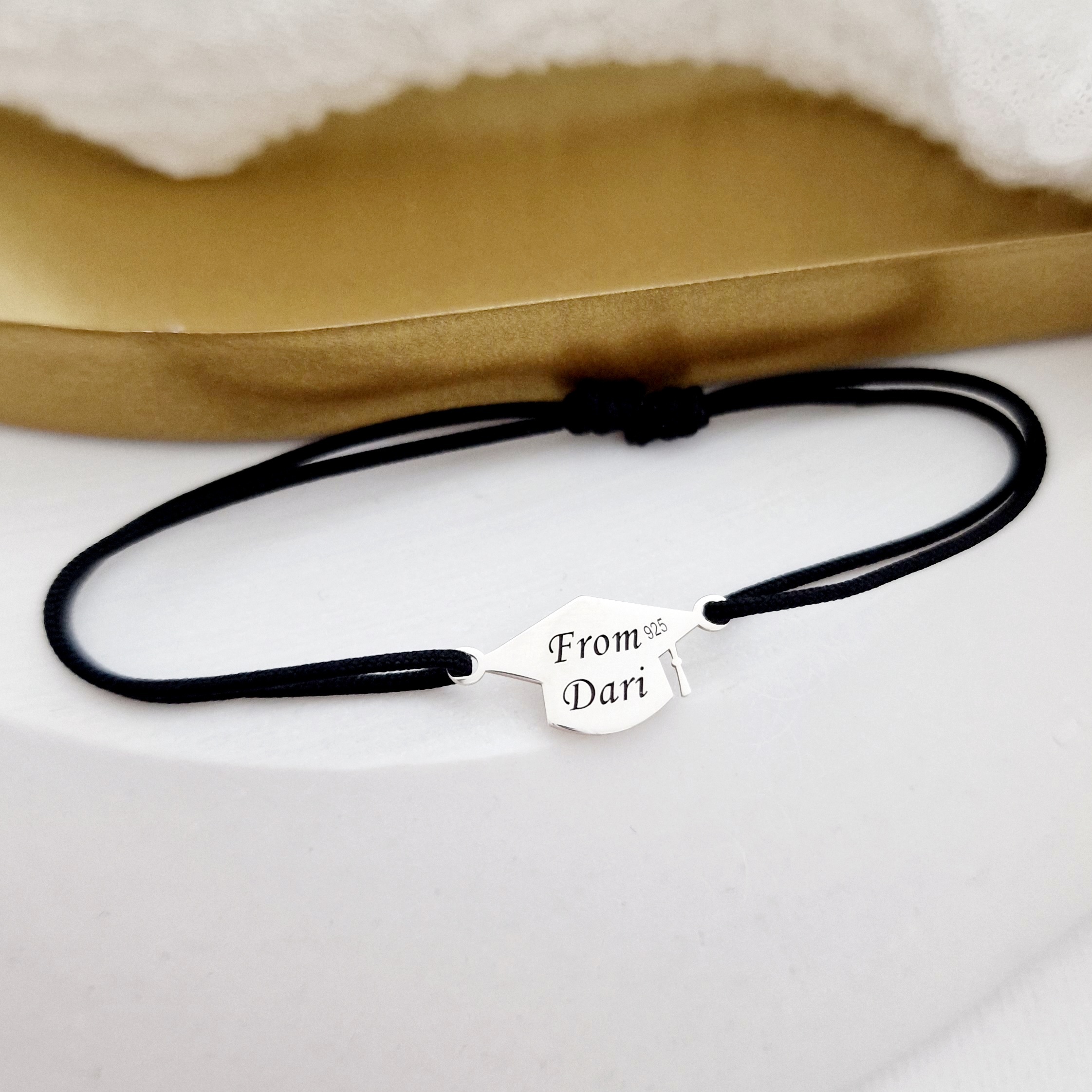 Marcheaza ziua absolvirii liceului sau a facultatii printr-o bratara simpla si de efect pe care poti grava o data, promotia, numele sau initiala noului alumnus.