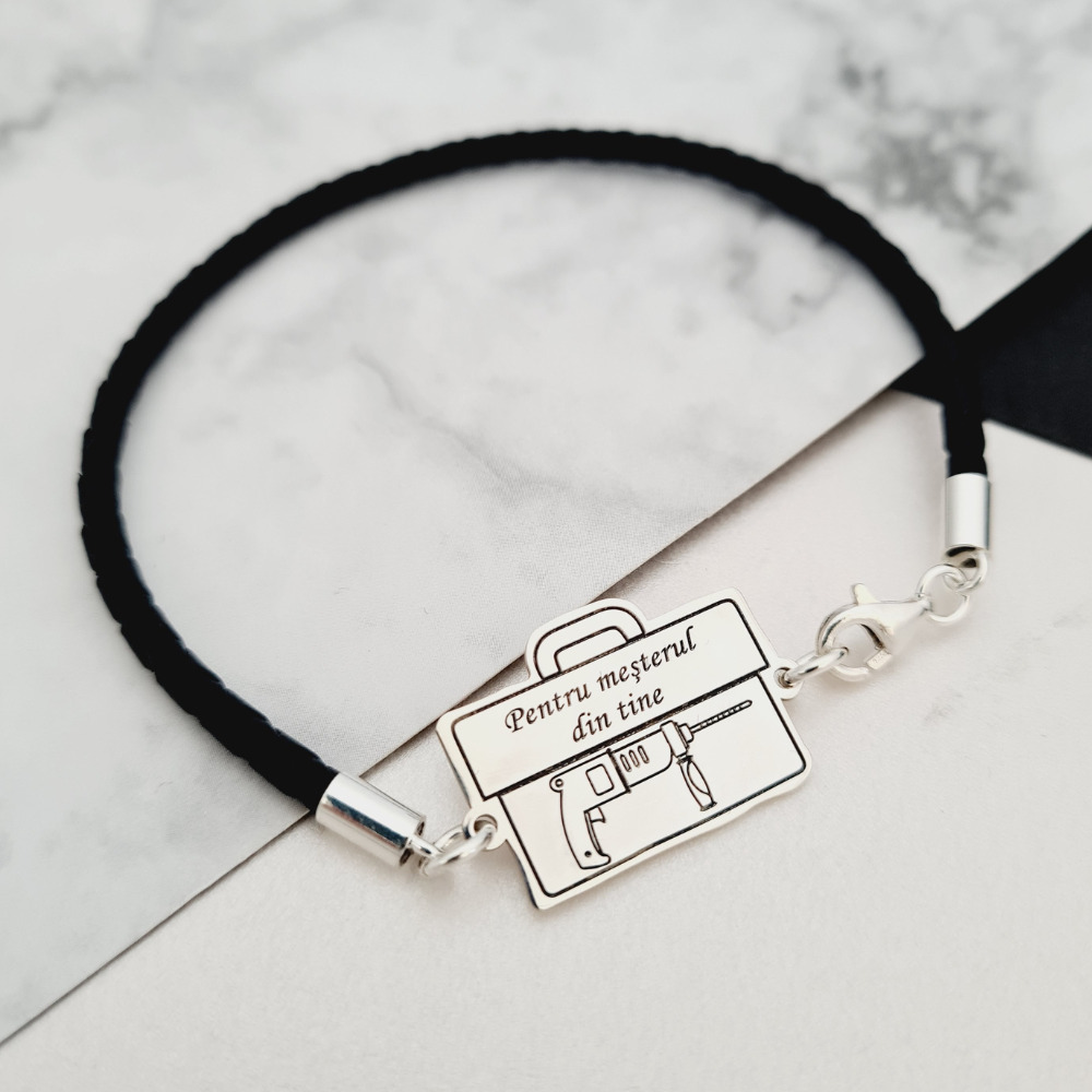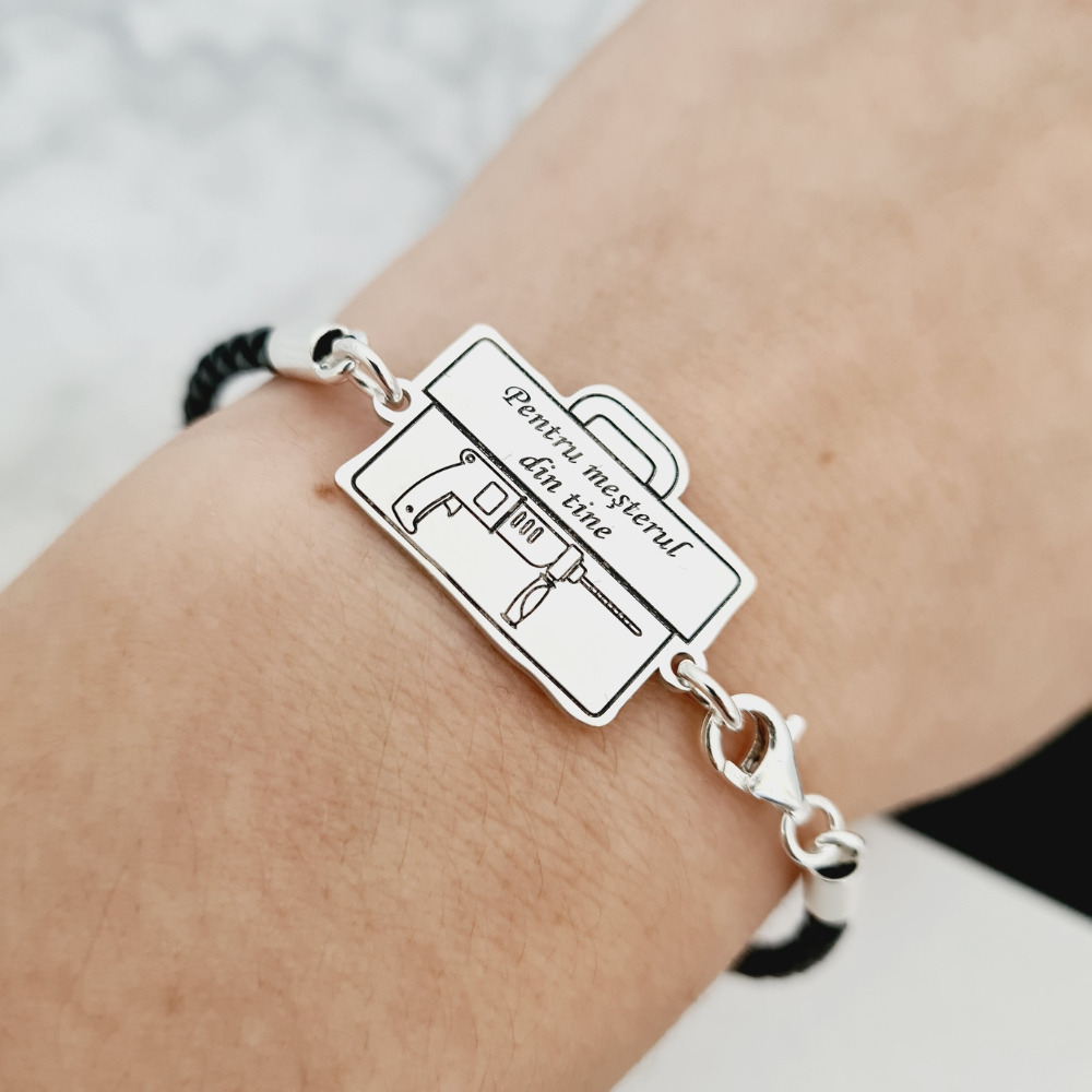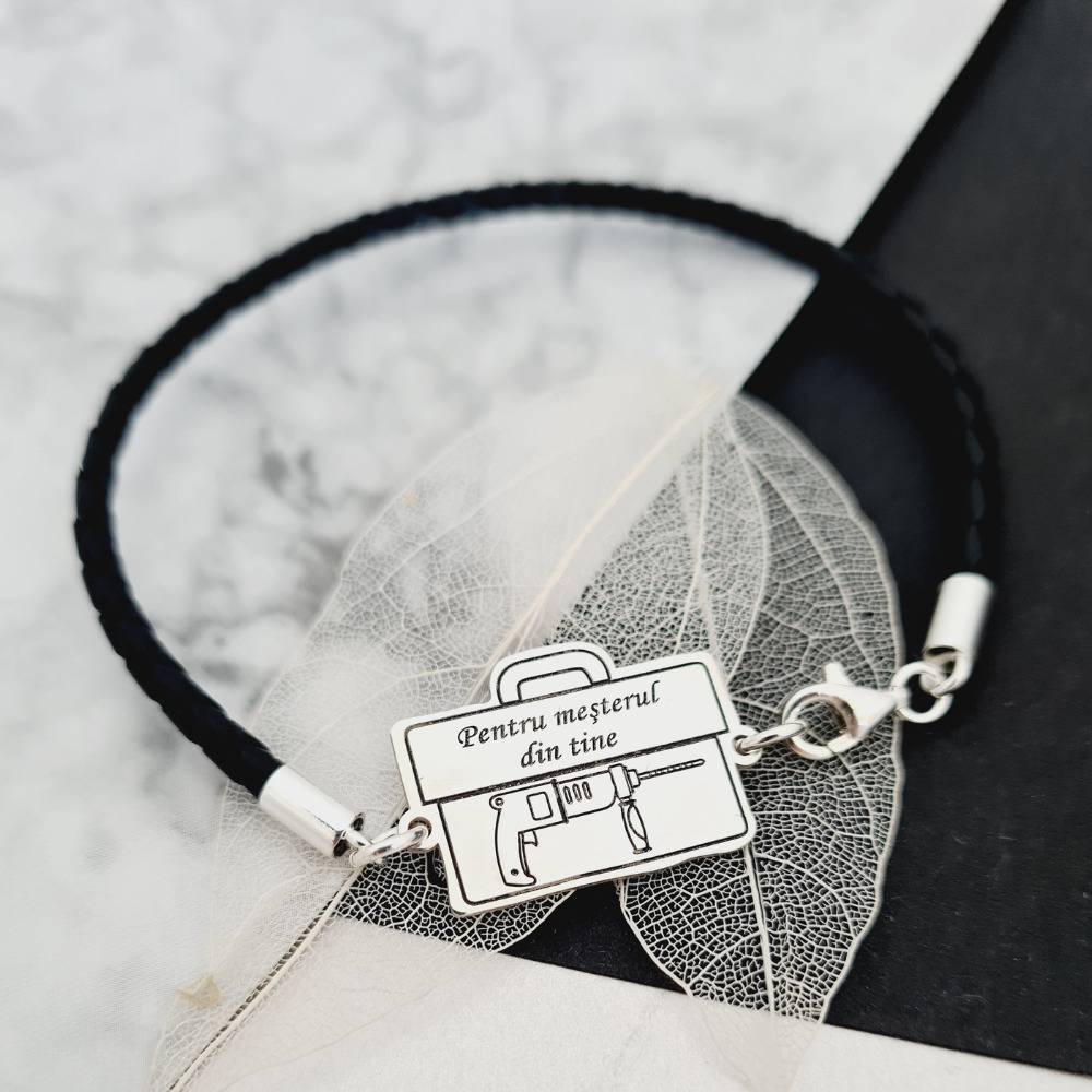 Bratara Trusa scule cu Bormasina gravata - Argint 925, piele impletita
