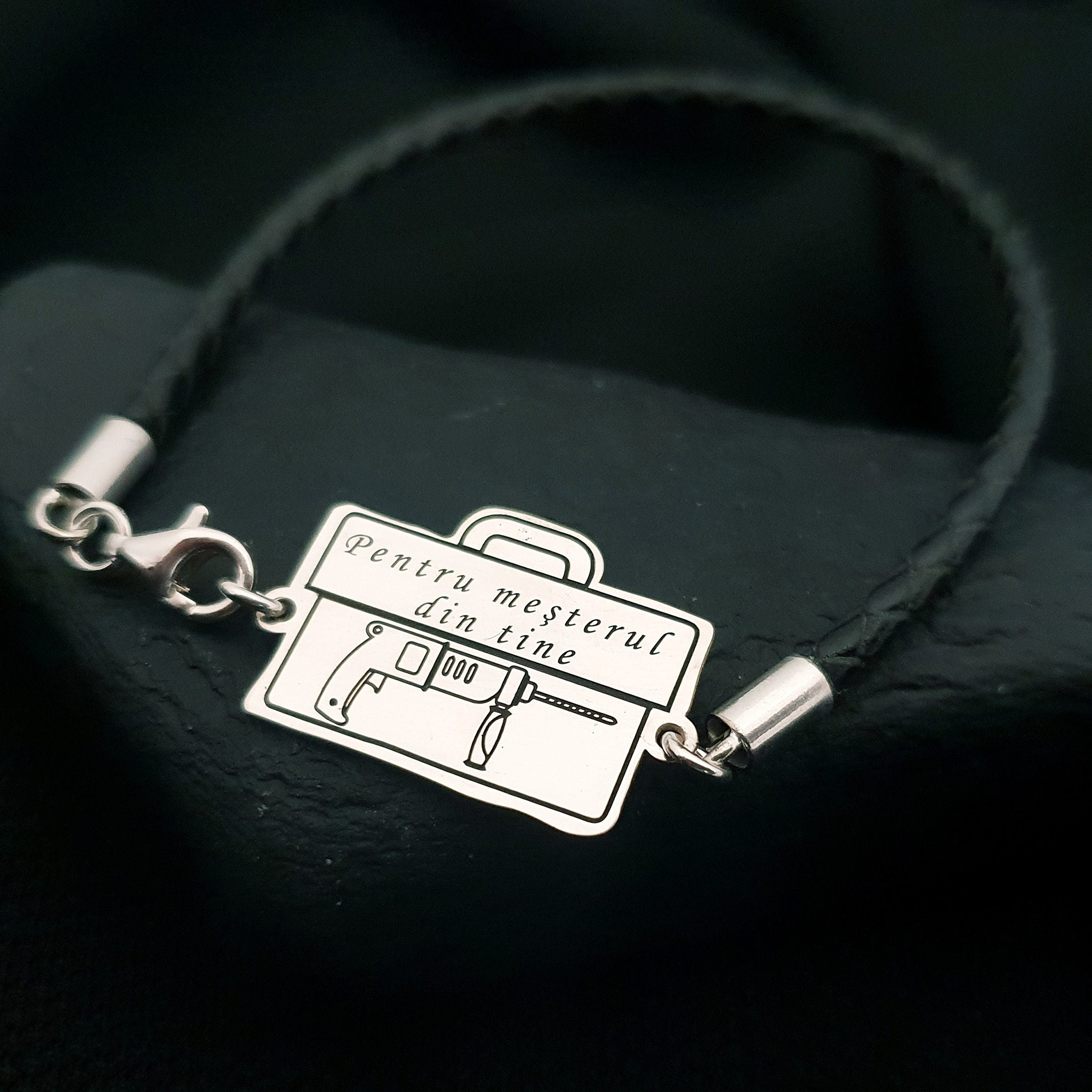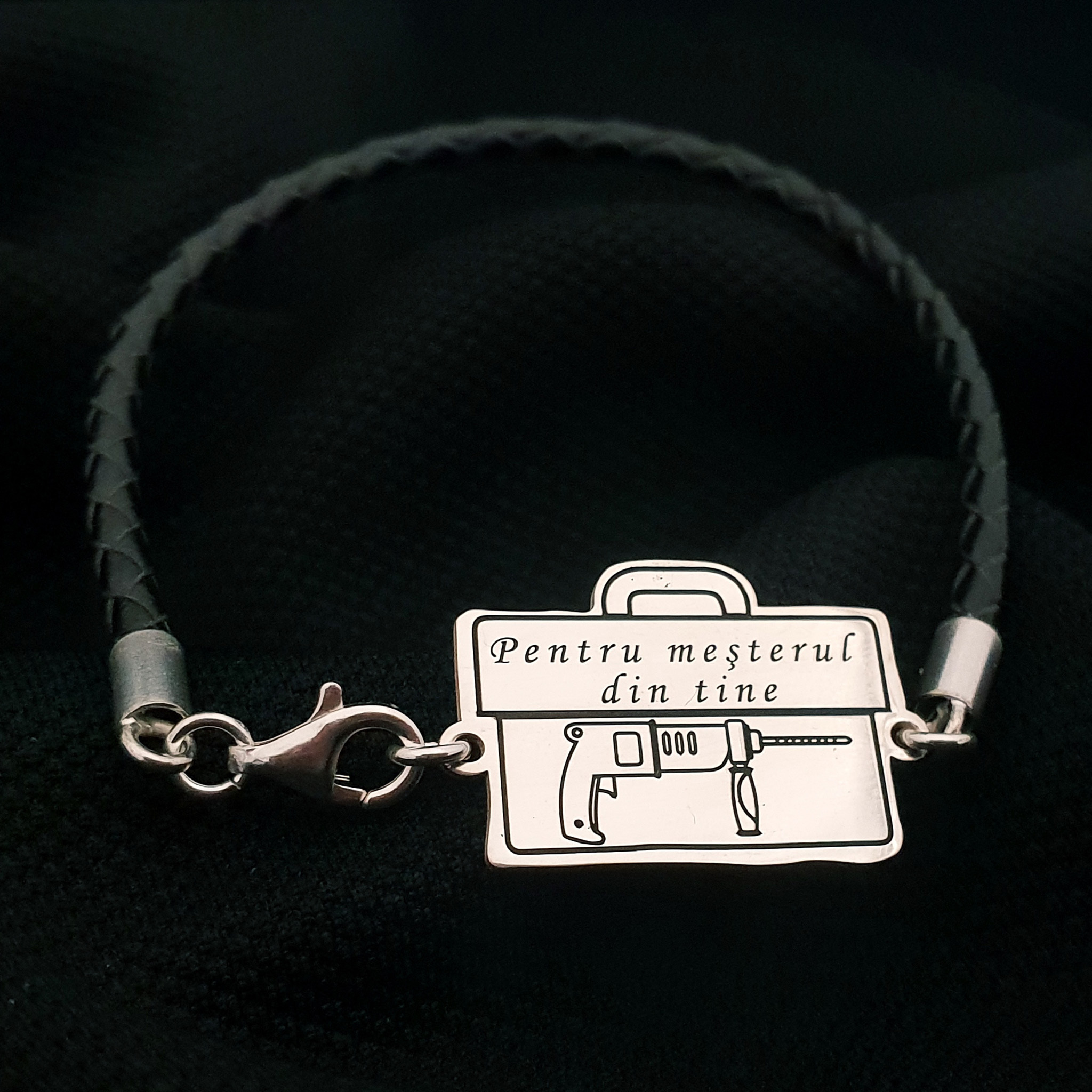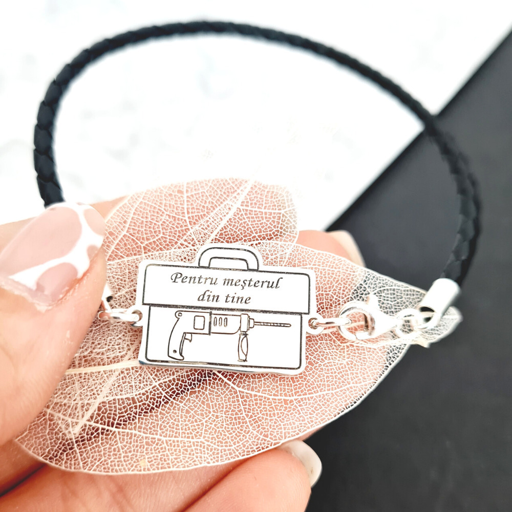 Bratara Trusa scule cu Bormasina gravata - Argint 925, piele impletita