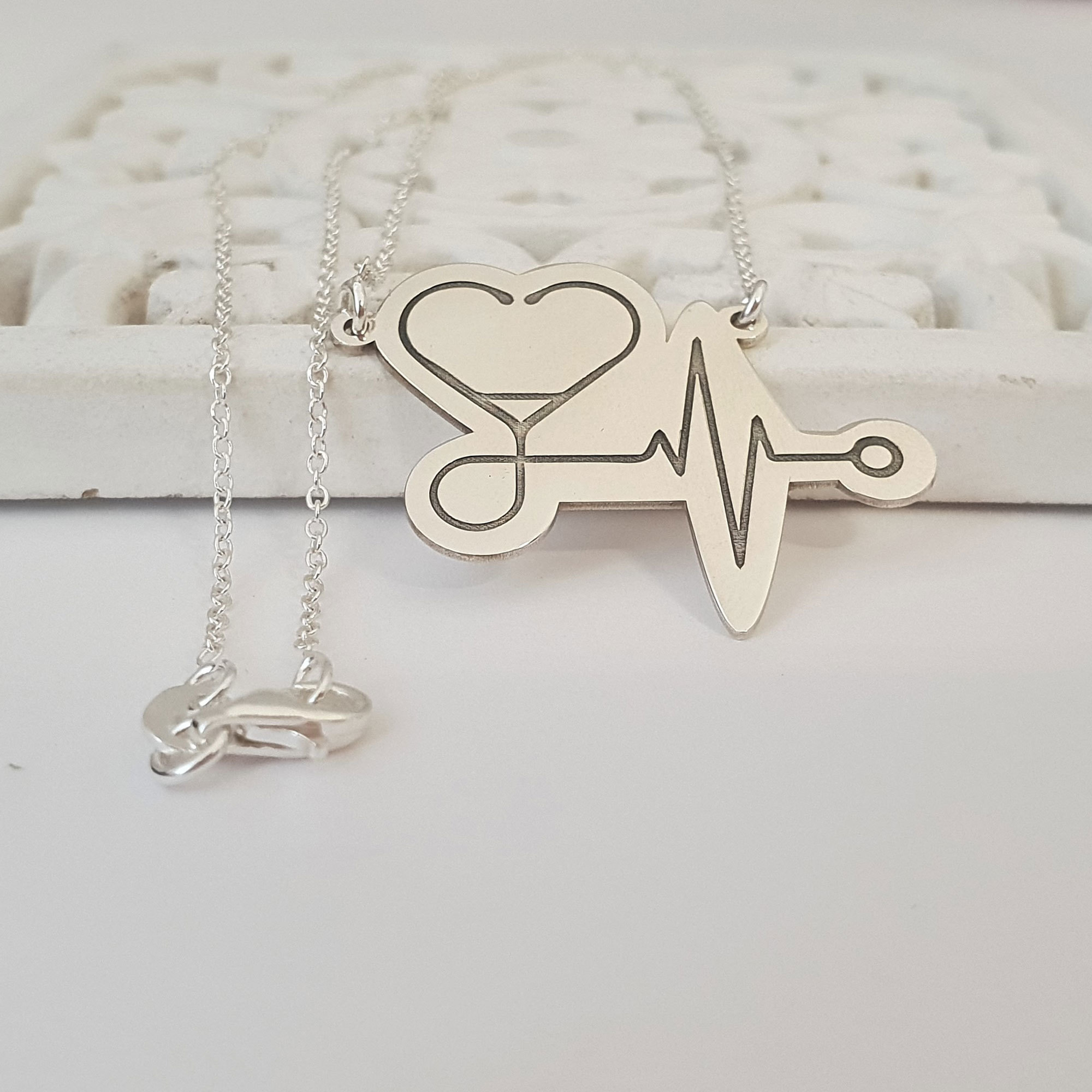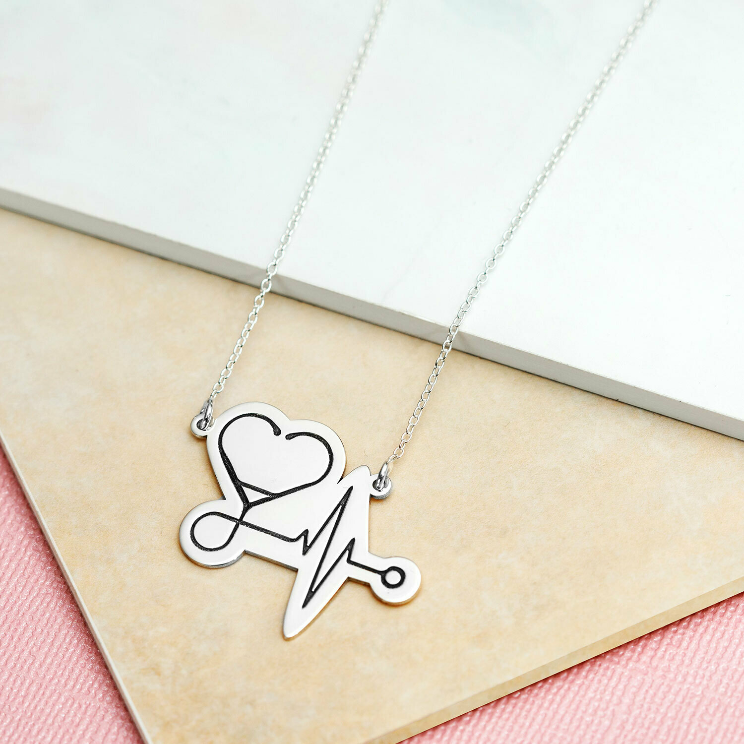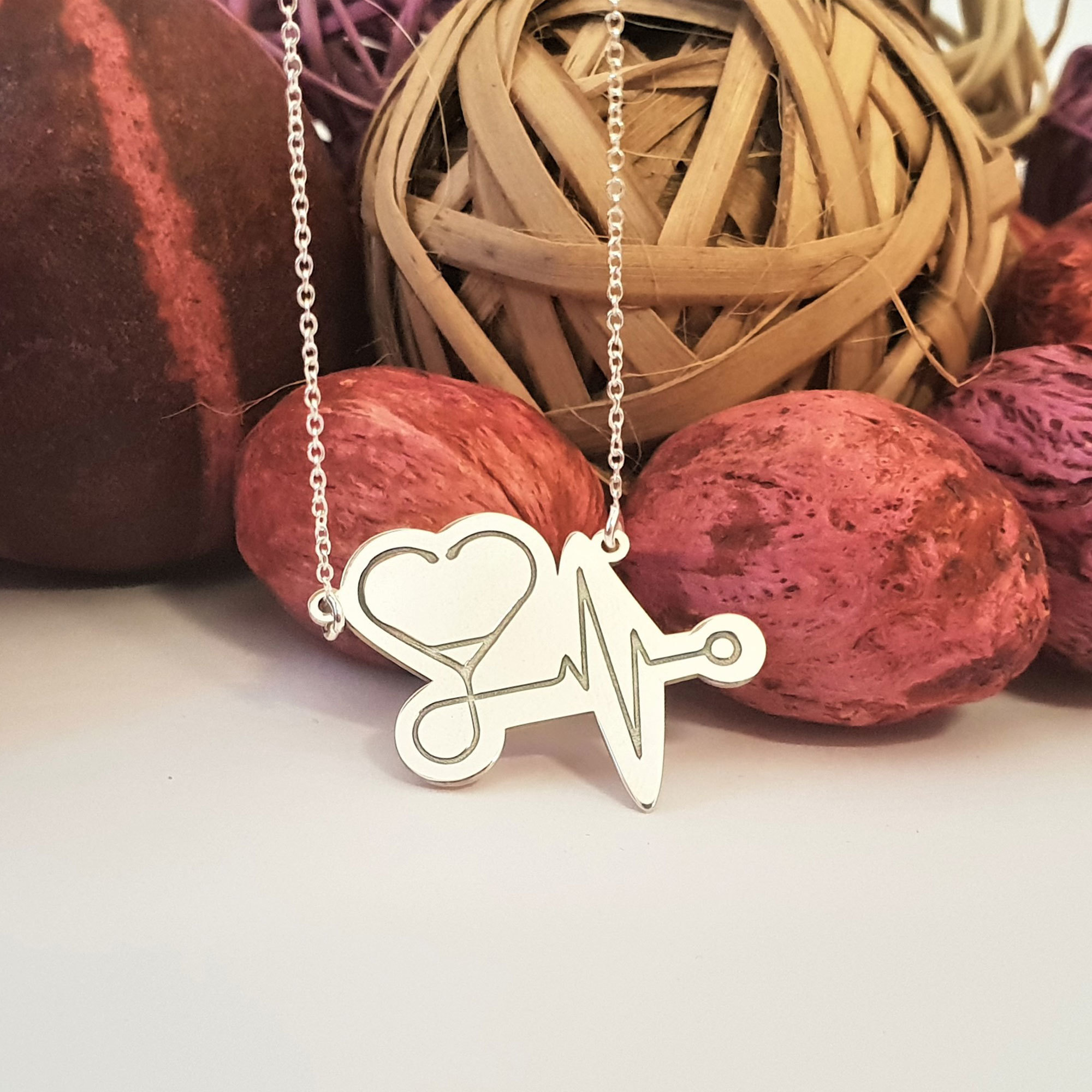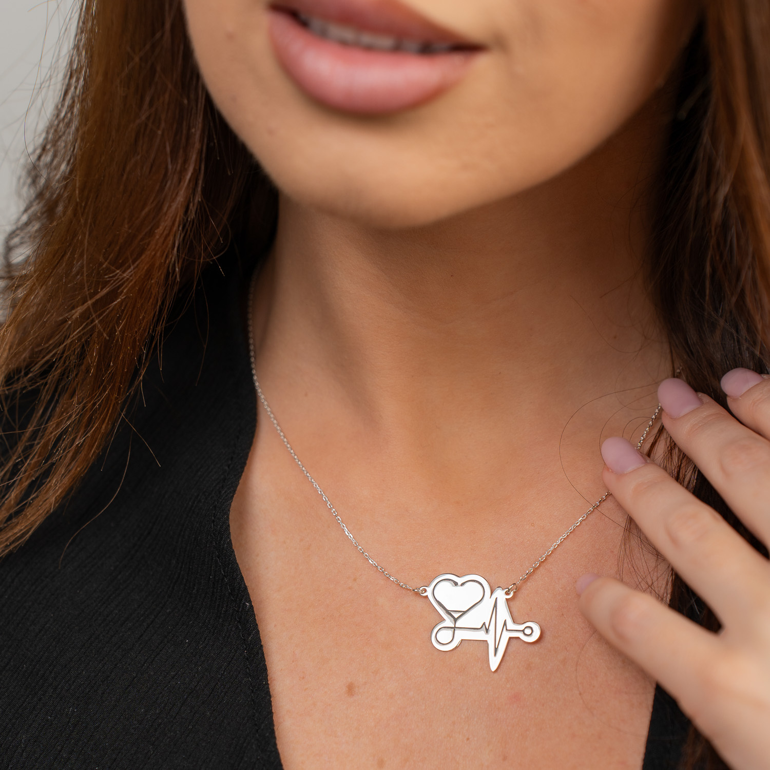 Lantisor cu pandantiv personalizat - Stetoscop sub forma unei inimi - Argint 925