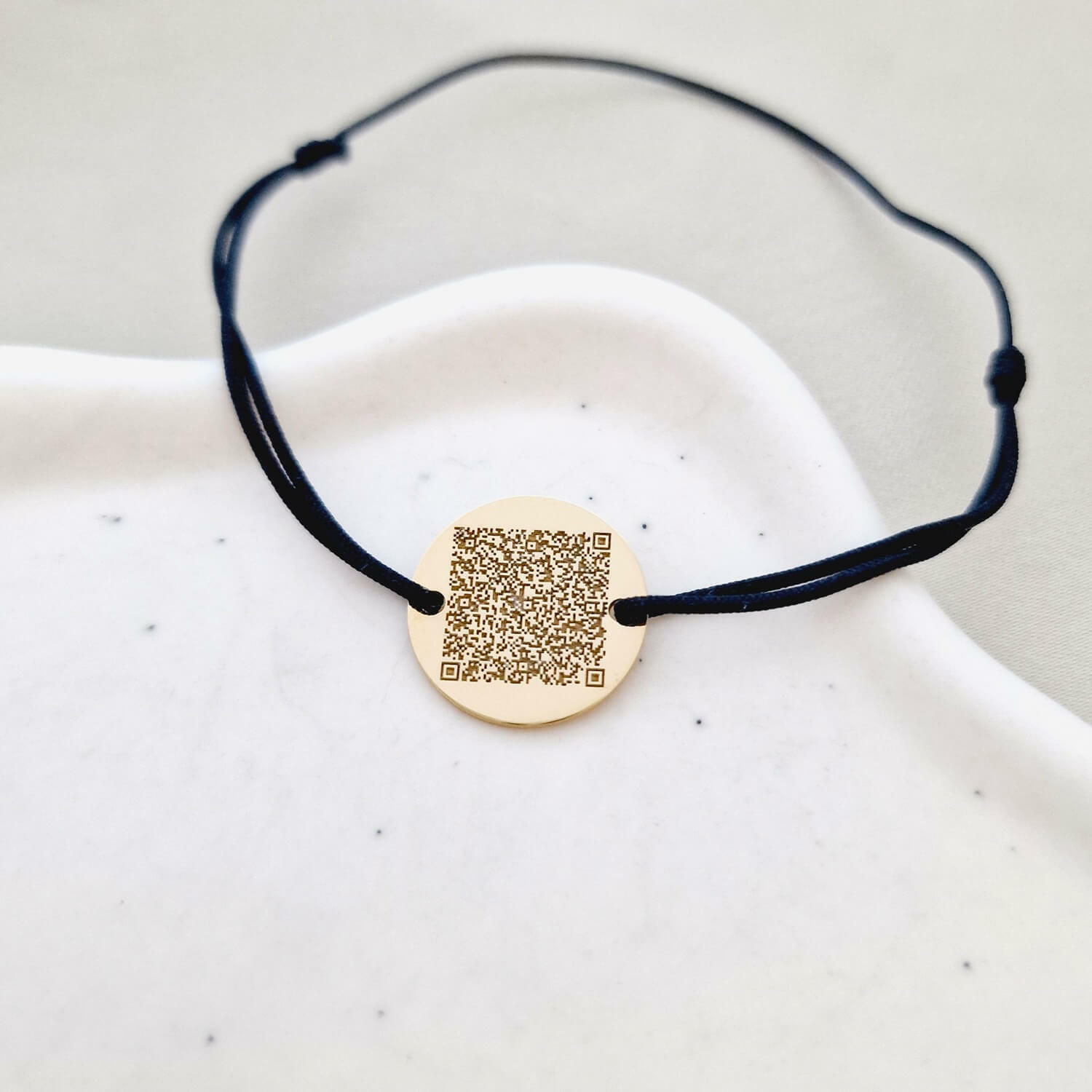 Bratara banut personalizata cu QR code - Argint 925 placat cu Aur Galben 18K si snur reglabil, diverse culori