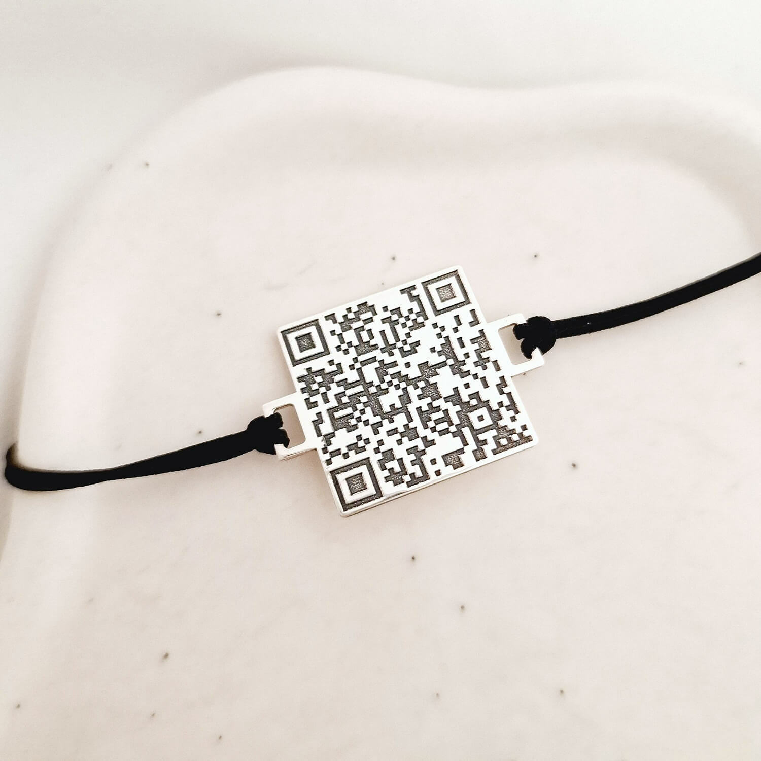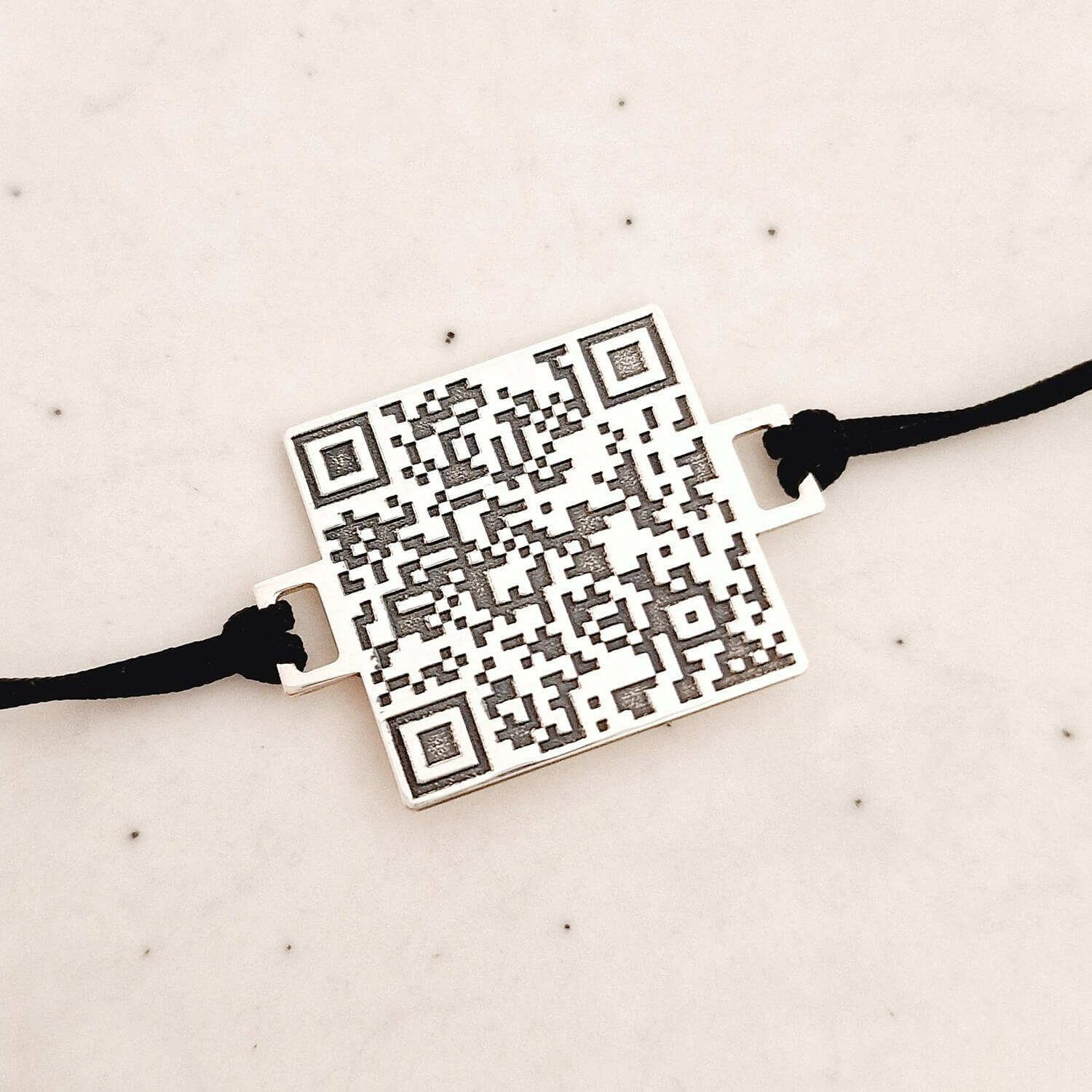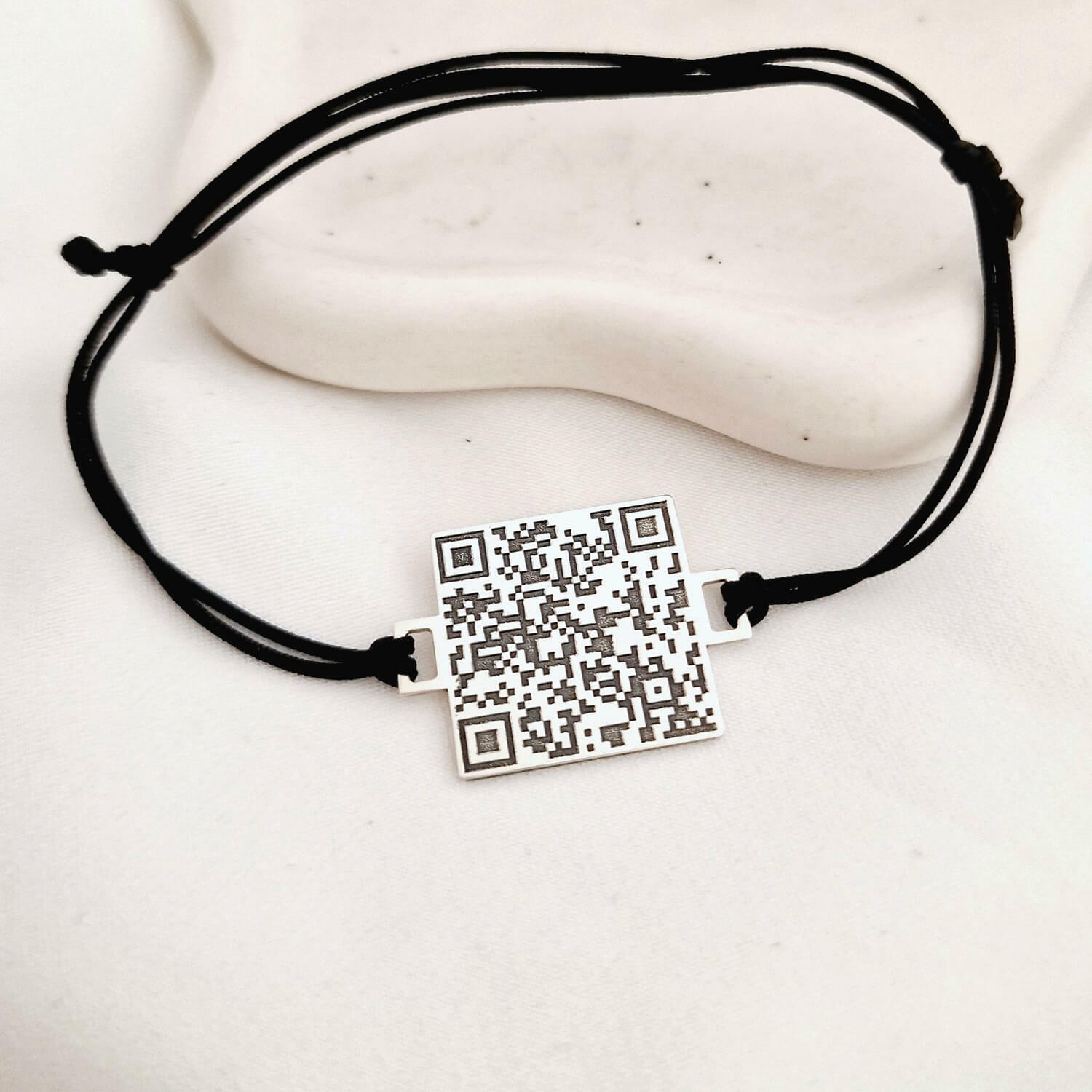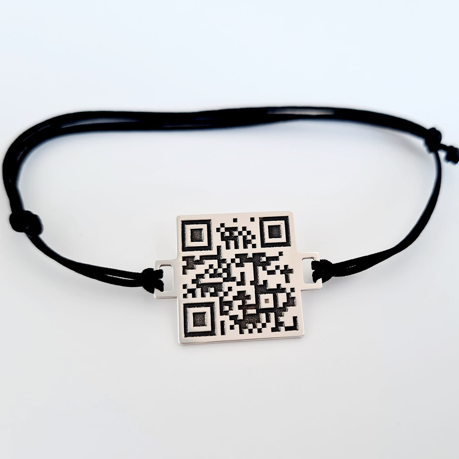 Bratara personalizata cu QR code - Argint 925 si snur reglabil