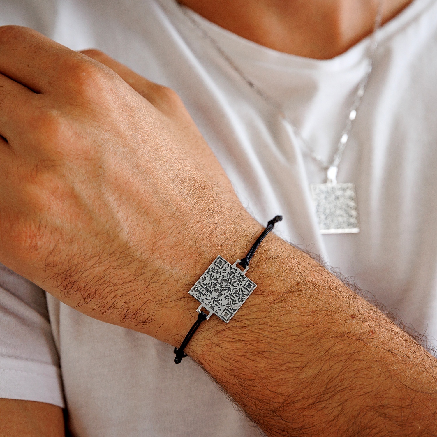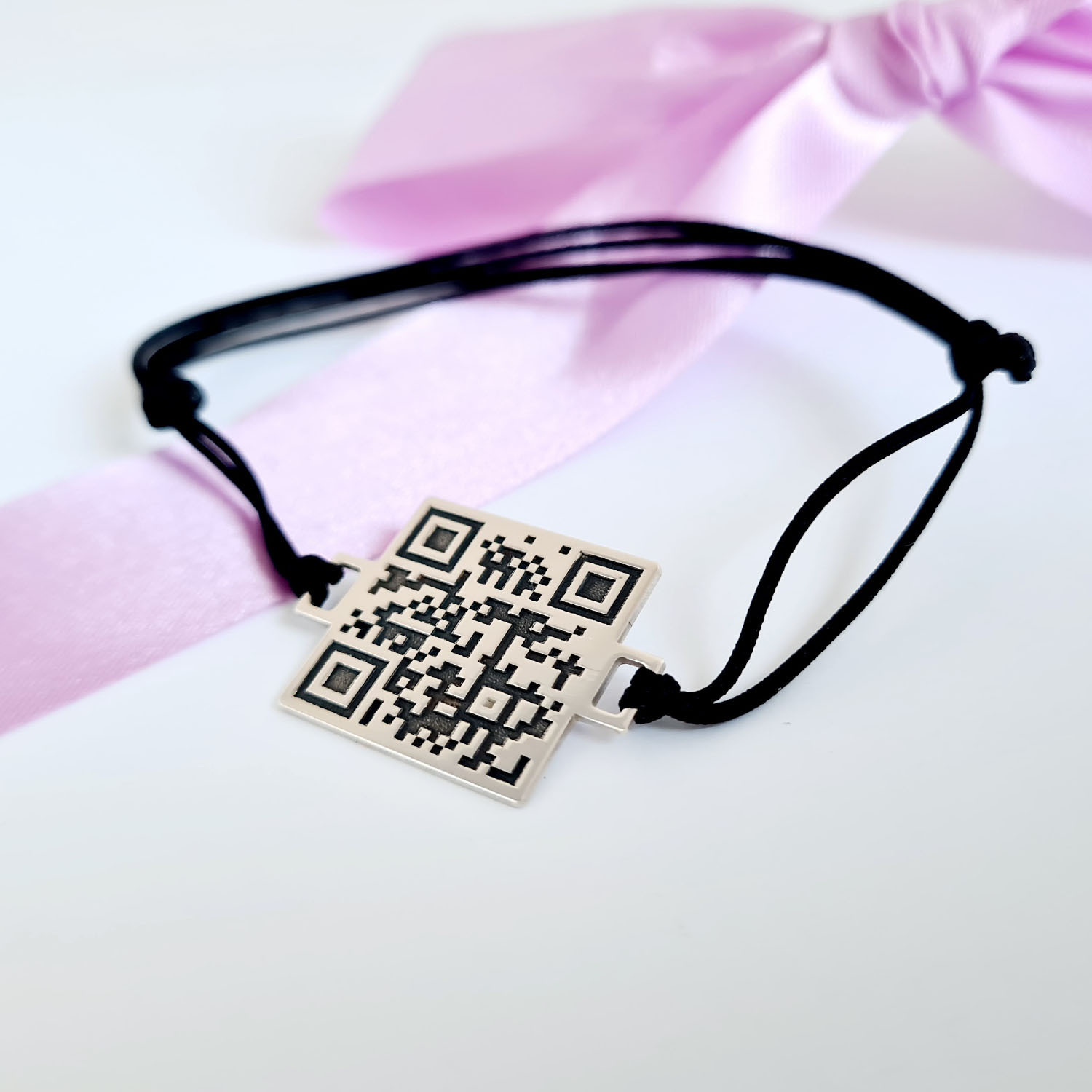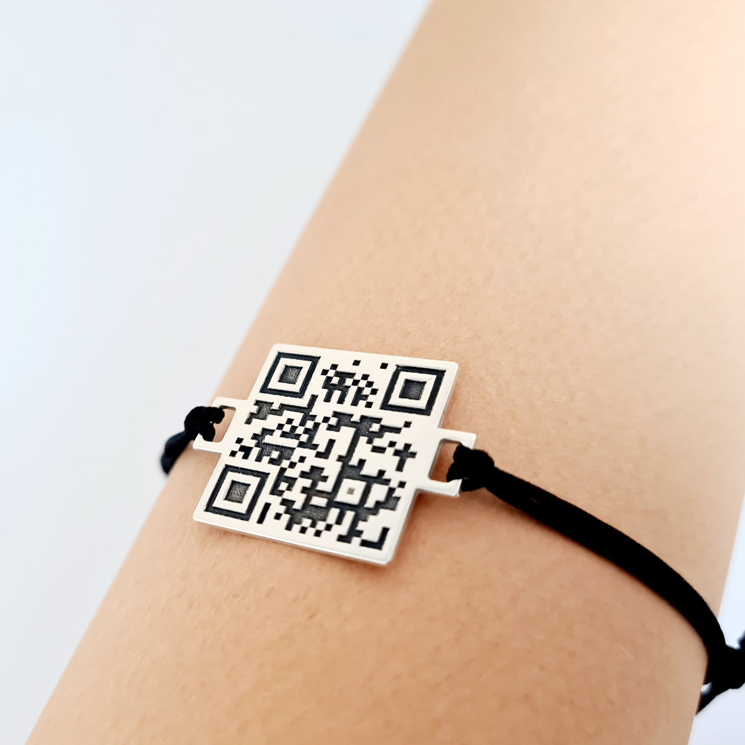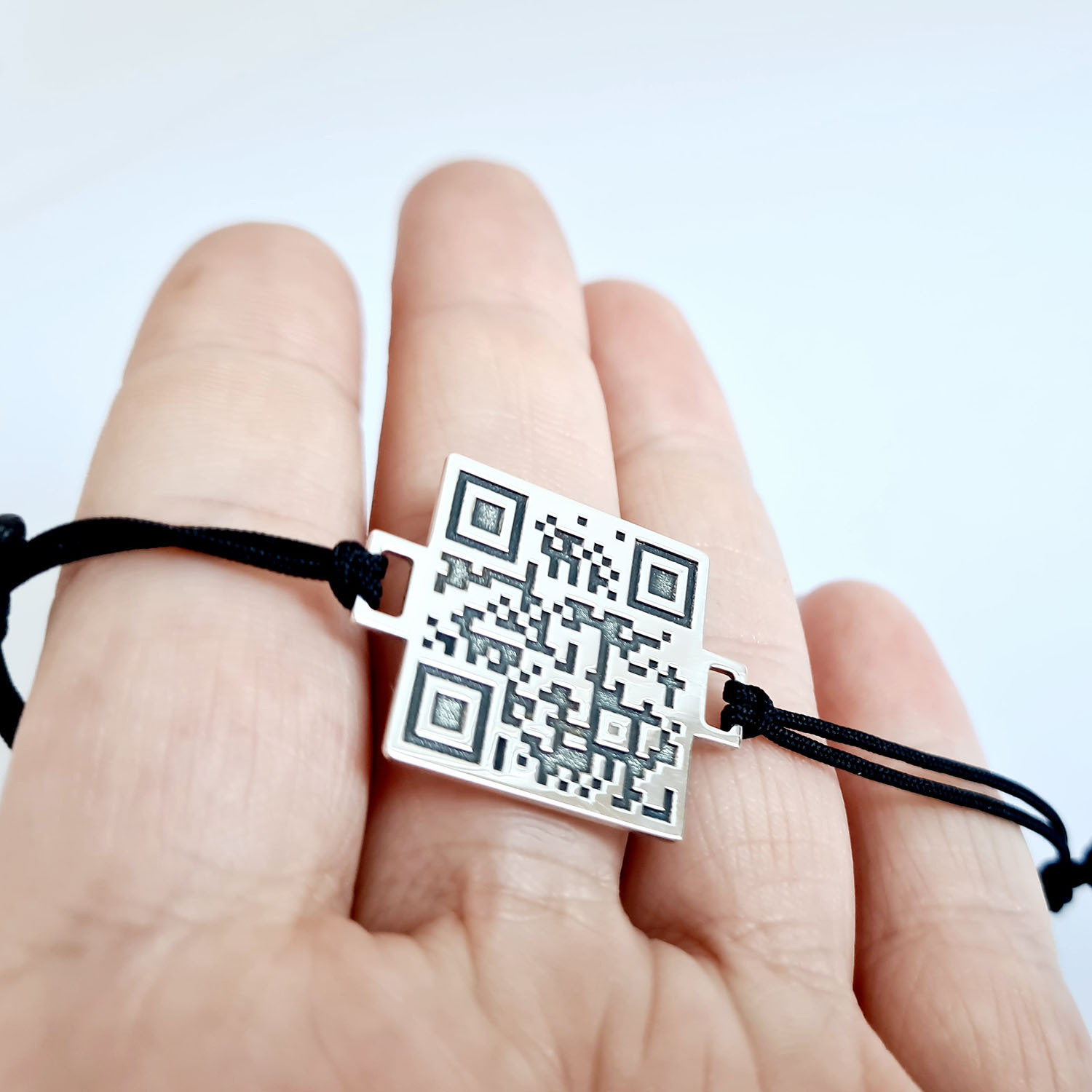 Bratara personalizata cu QR code - Argint 925 si snur reglabil