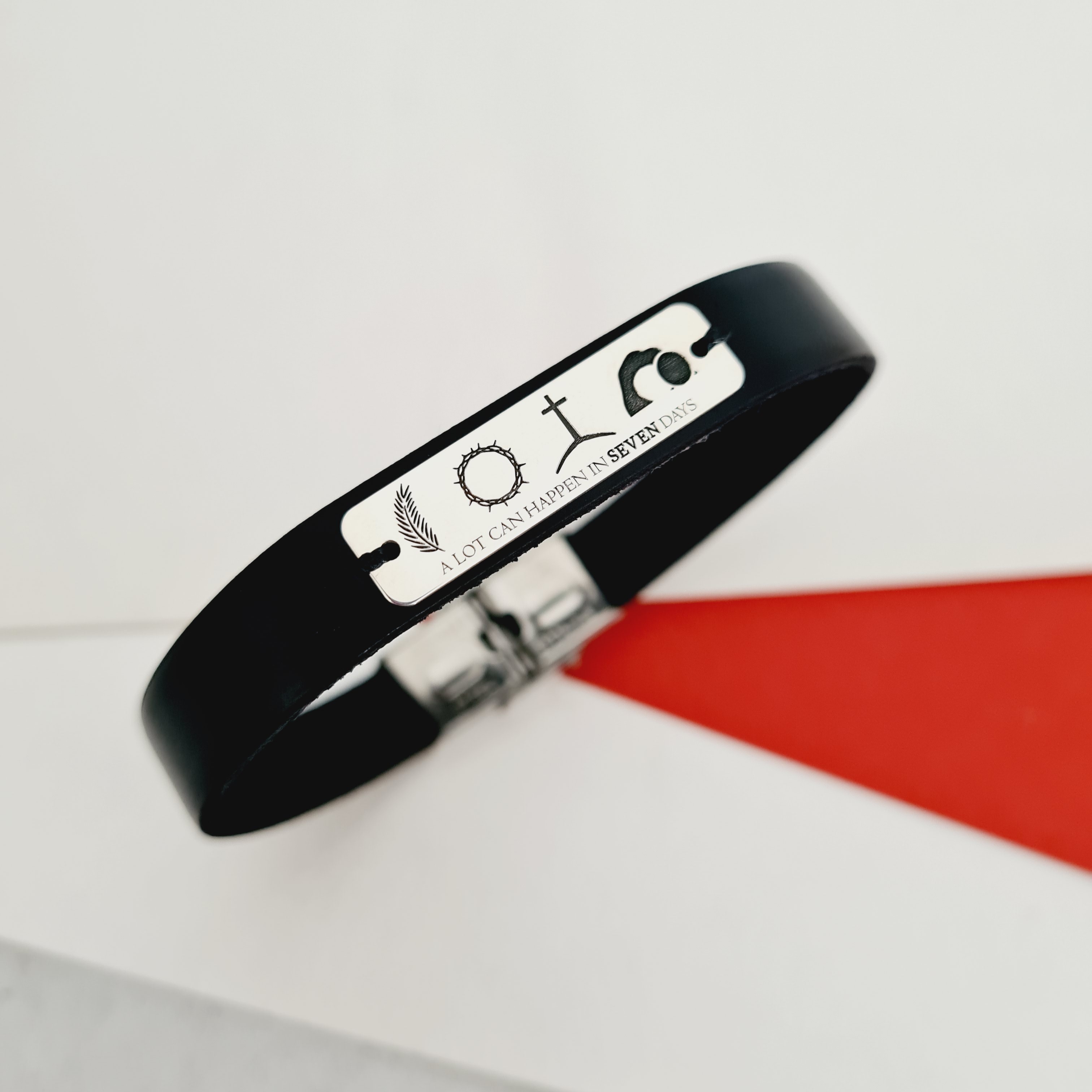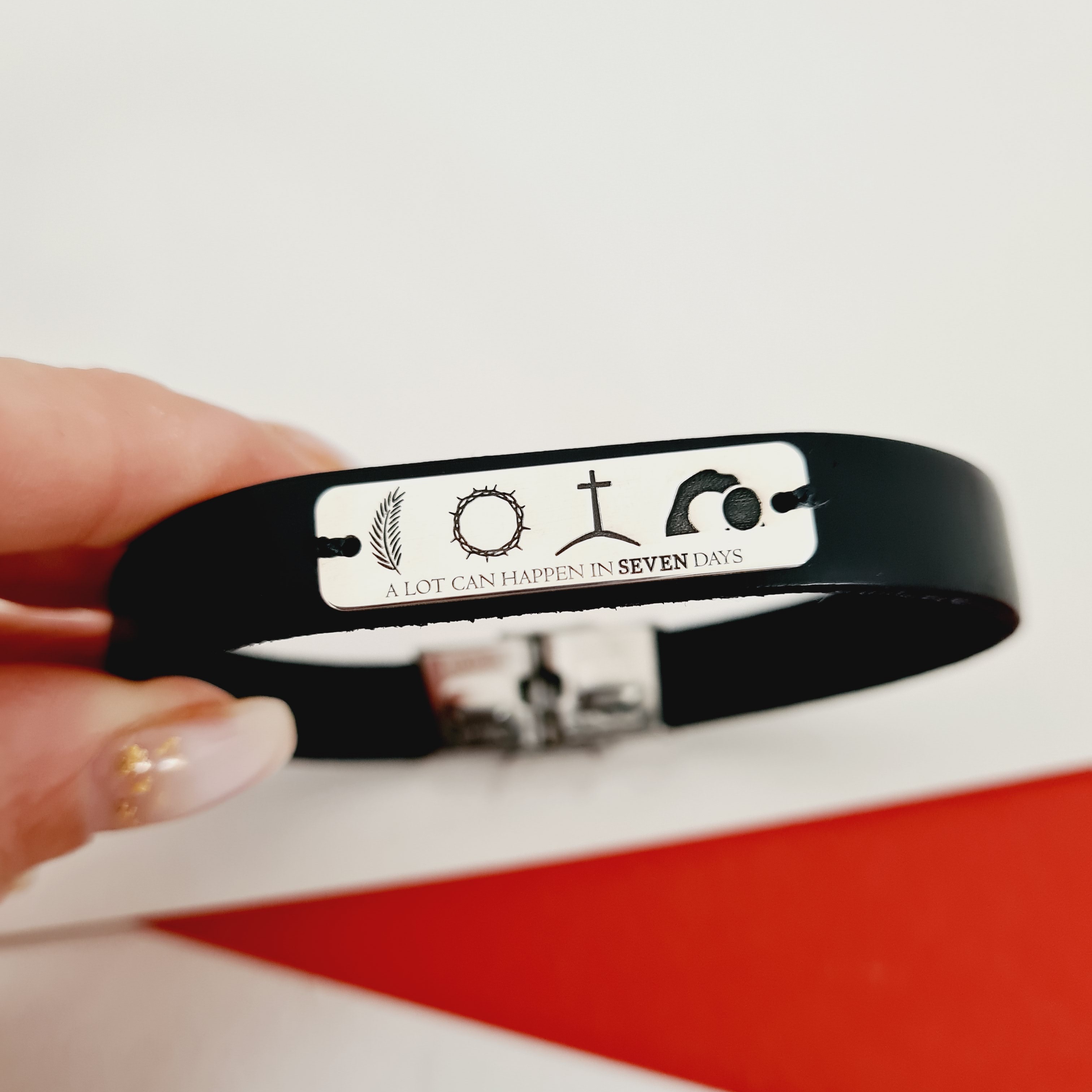 Bratara Crearea lumii in 7 zile - Bijuterie cu Har - Placuta Argint 925 - Piele si nchizatoare clips inox