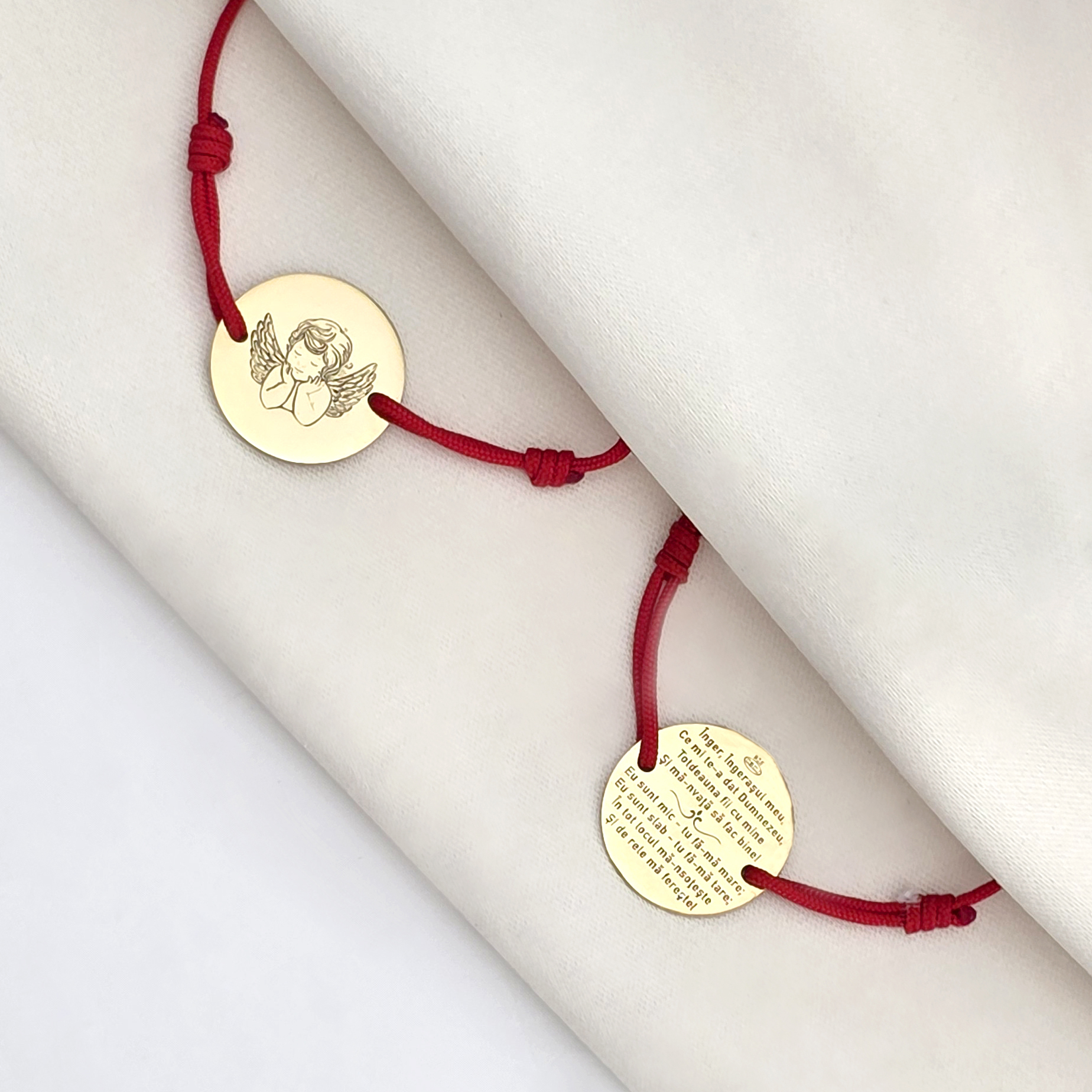 Pentru ca intelegem importanța credintei in viata noastra am creat bratara cu ingeras si rugaciunea "Ingerasul meu", gravata in intregime pe verso. Este o bijuterie speciala, respectiv un cadou ideal pentru copilul iubit care sa poarte aproape o amuleta cu har.