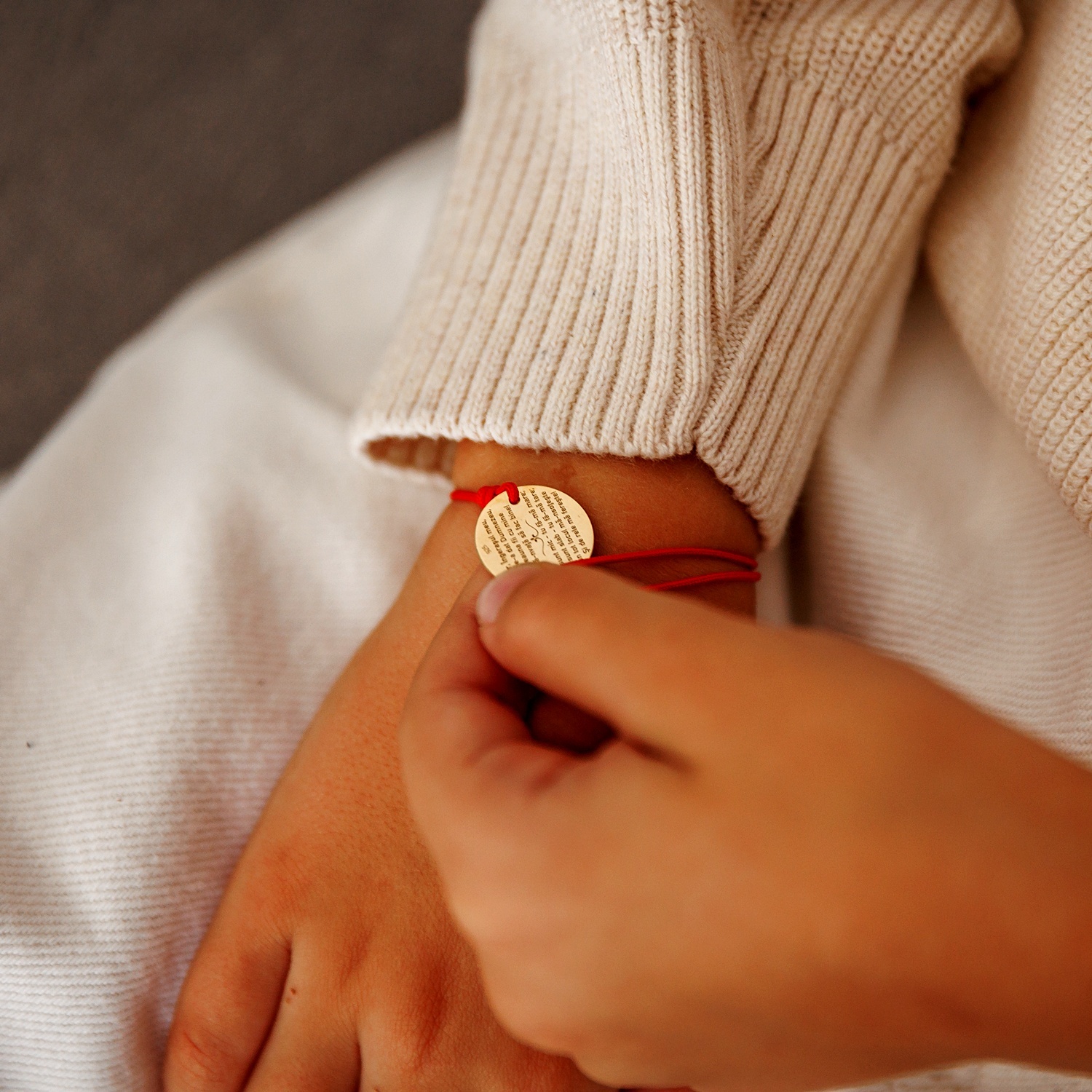 Bratara Rugaciune Ingerasul meu - Bijuterie cu Har - Argint 925 placat cu Aur Galben 18K - Snur reglabil