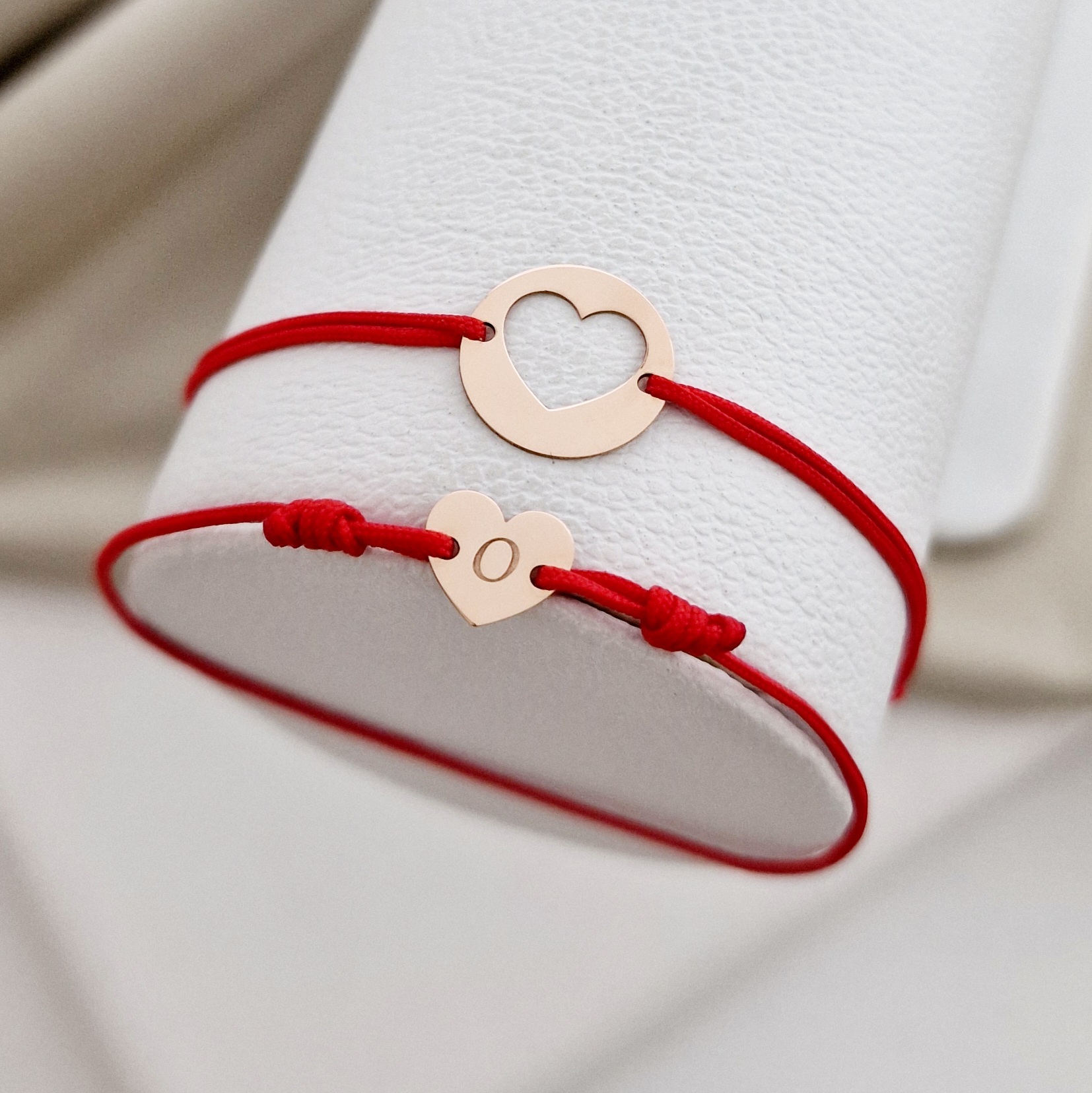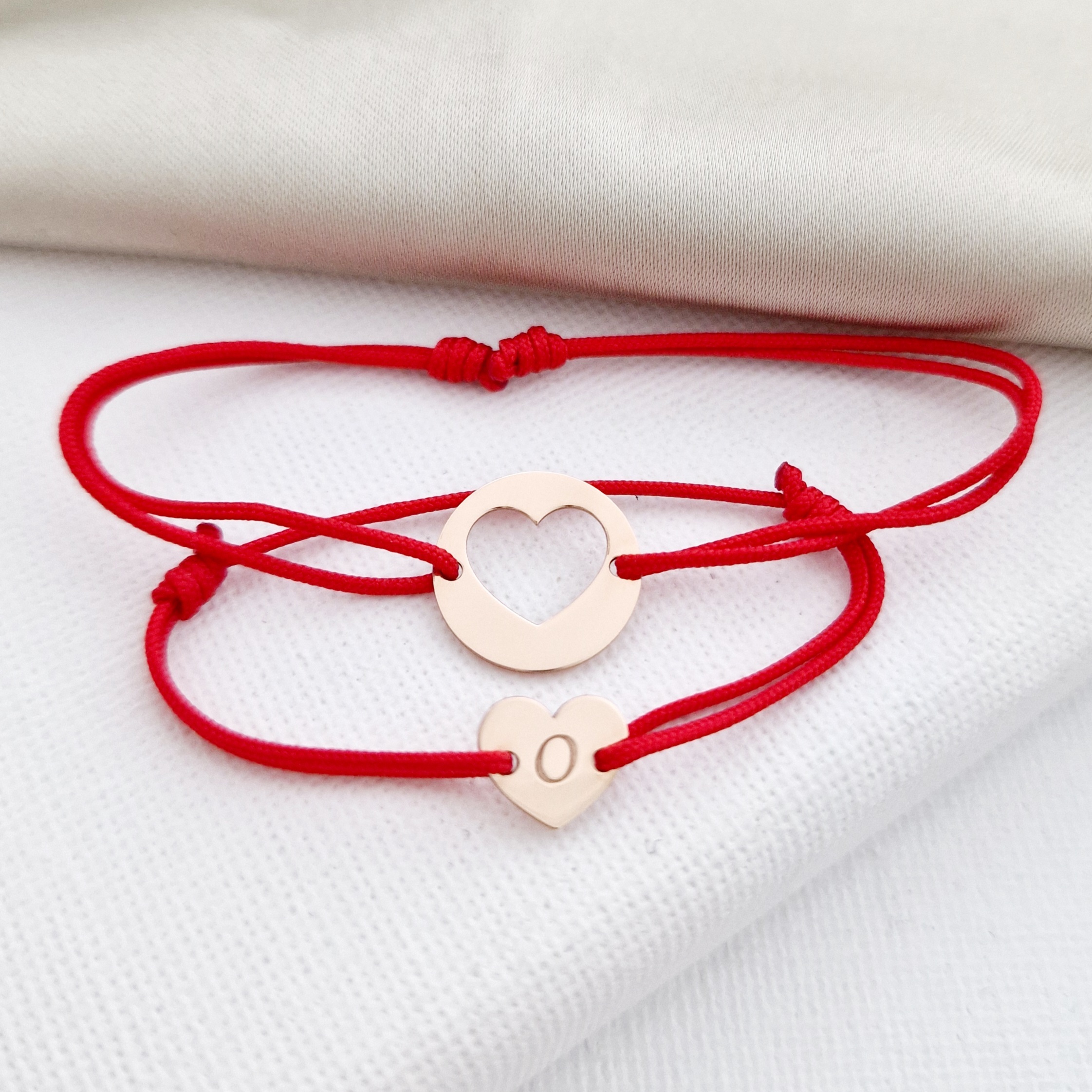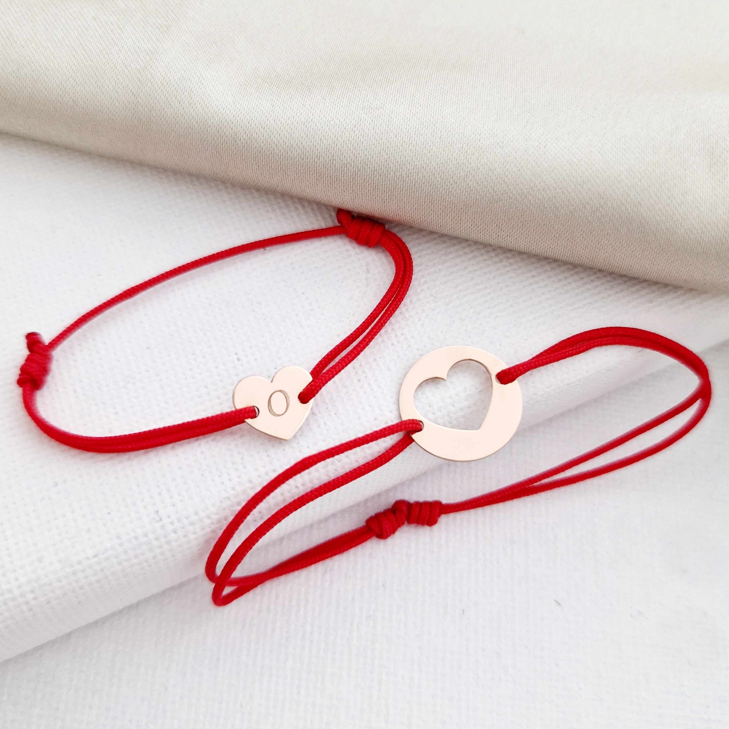 Set 2 bratari - banut si inima decupata - Aur Roz 14K - snur reglabil