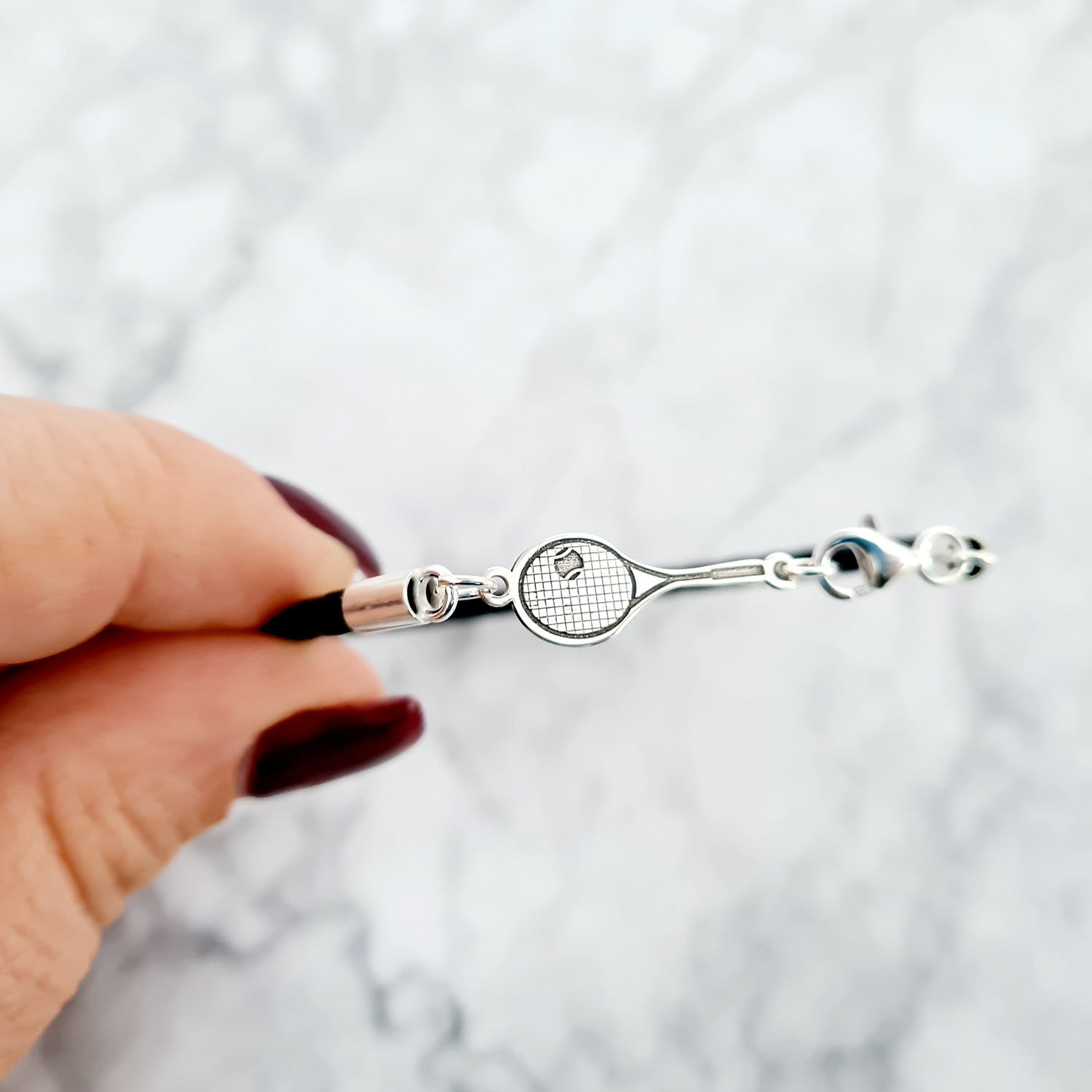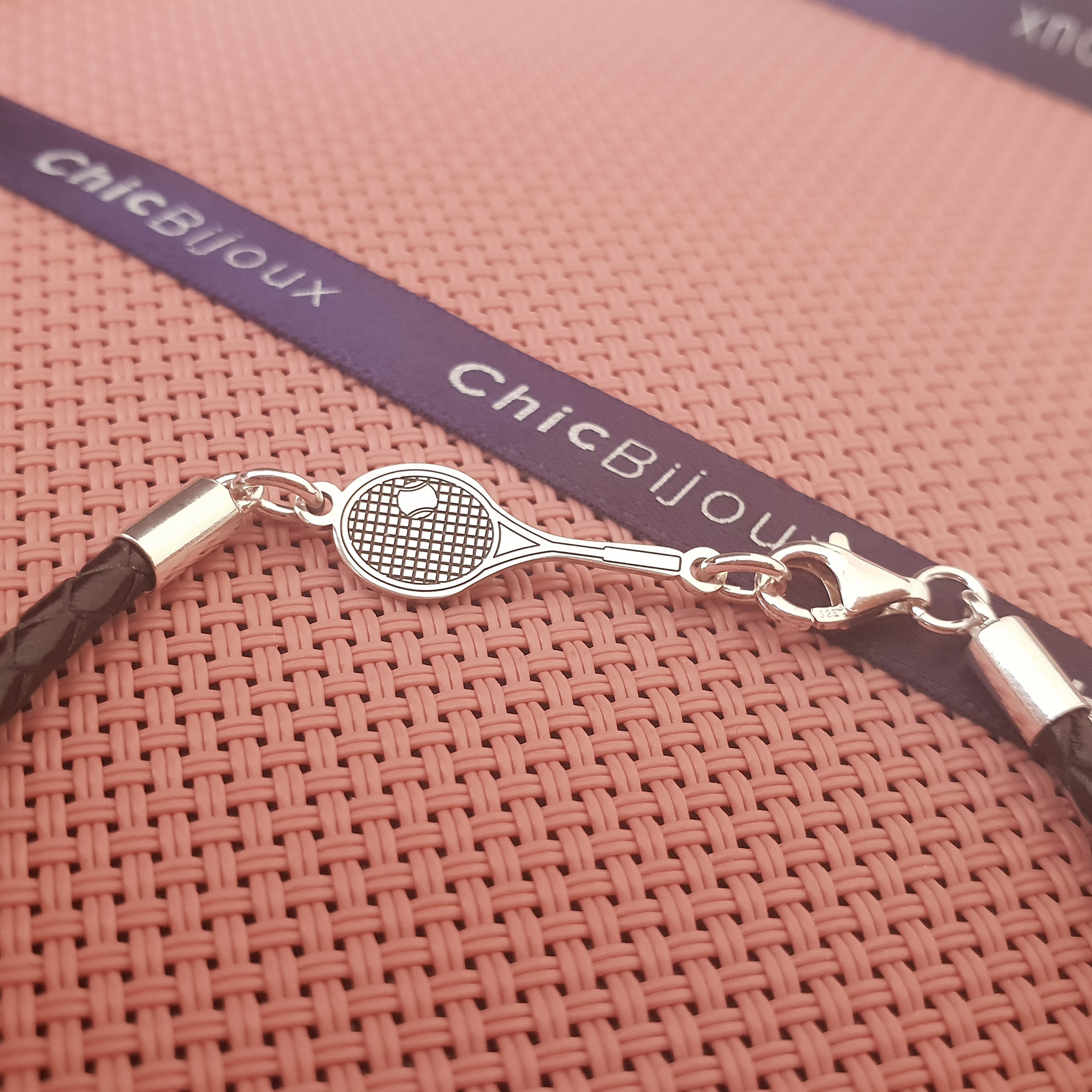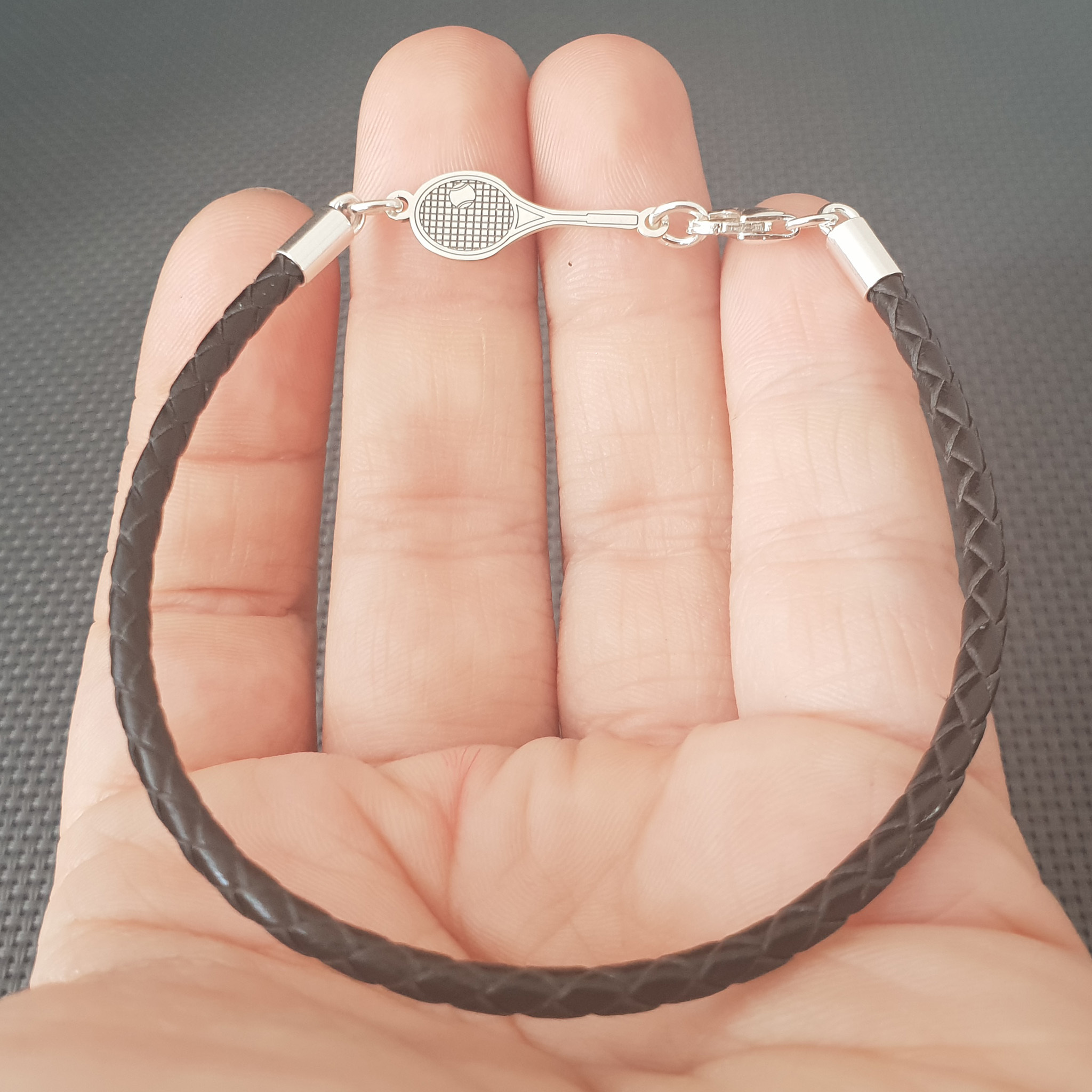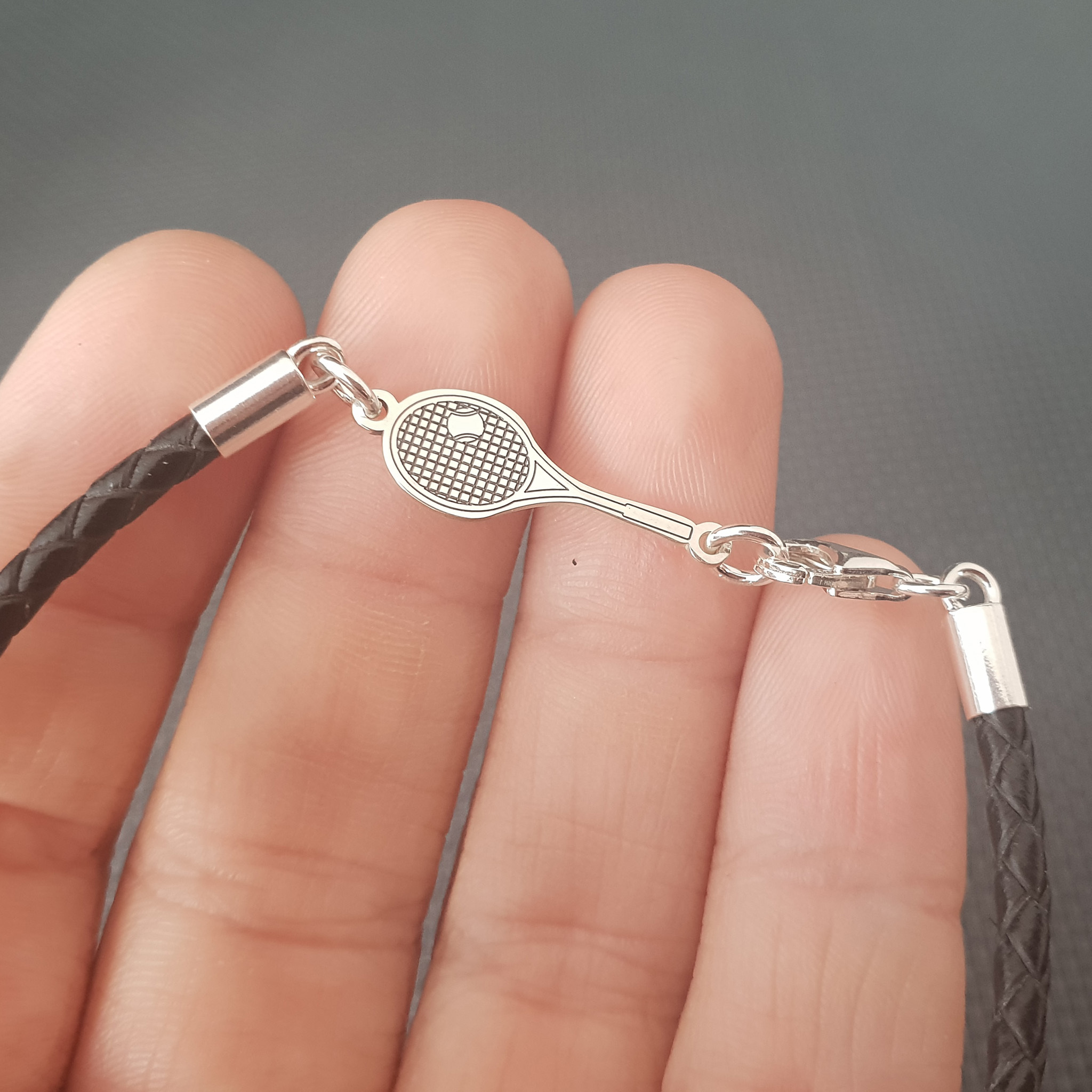 Bratara Racheta Tenis - Argint 925, piele impletita