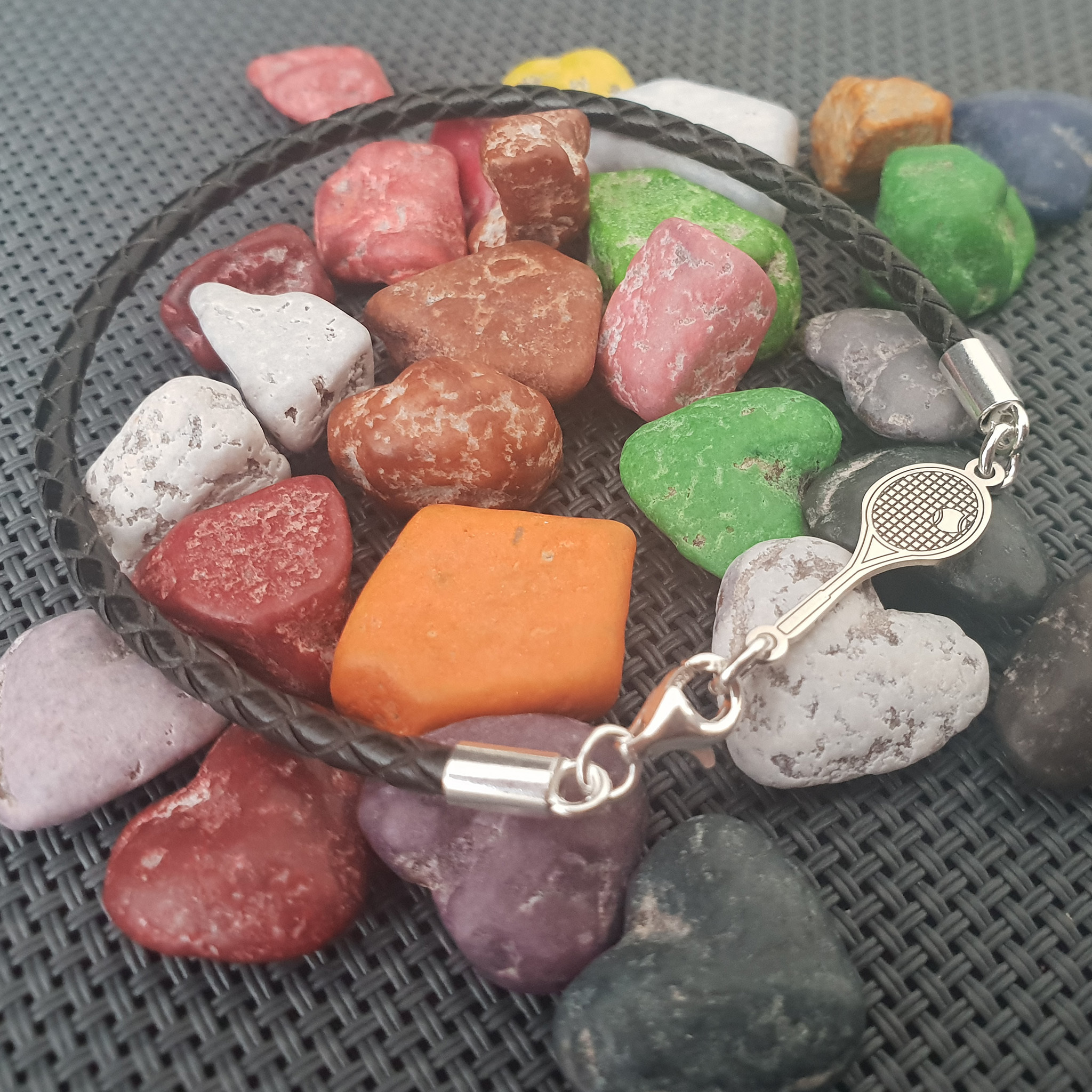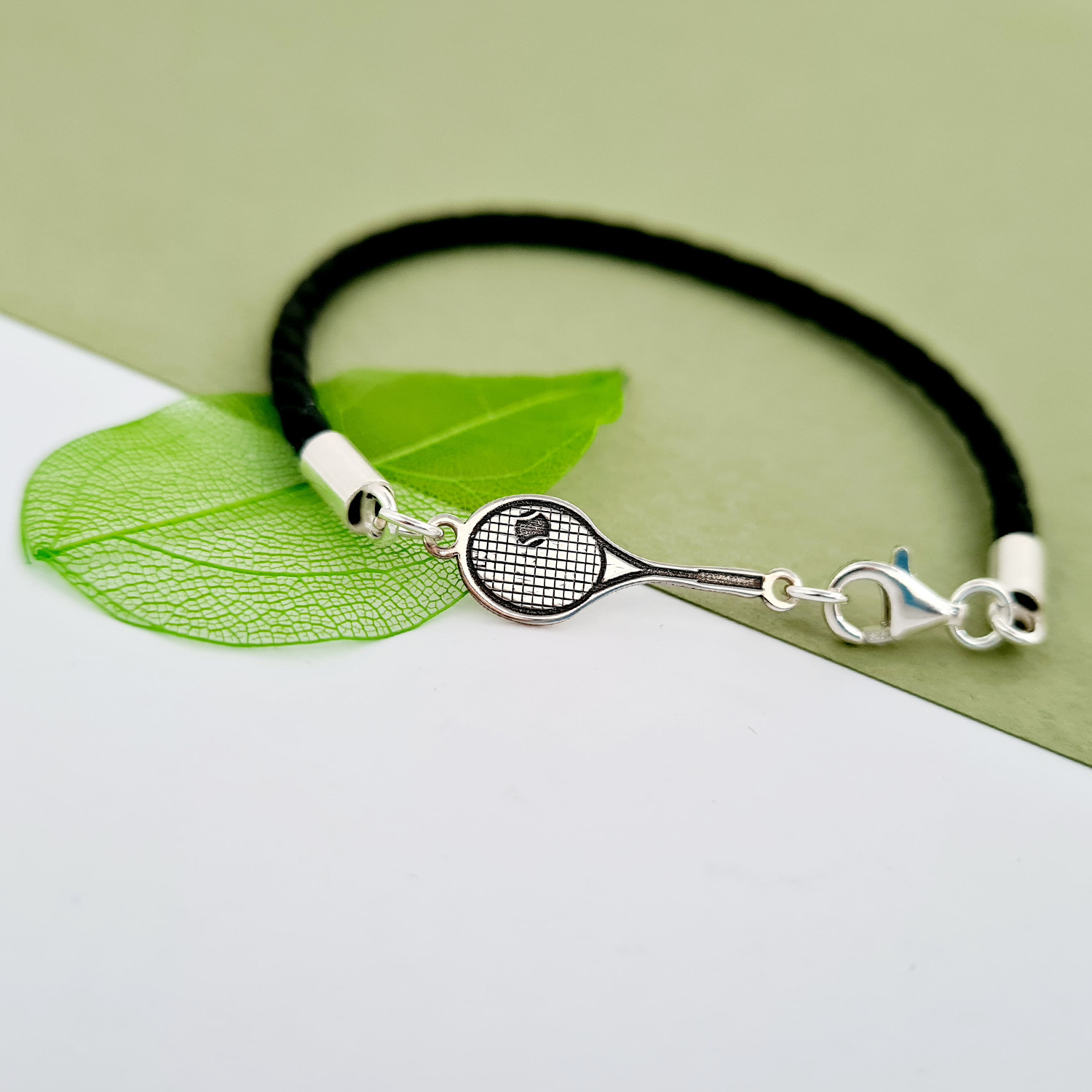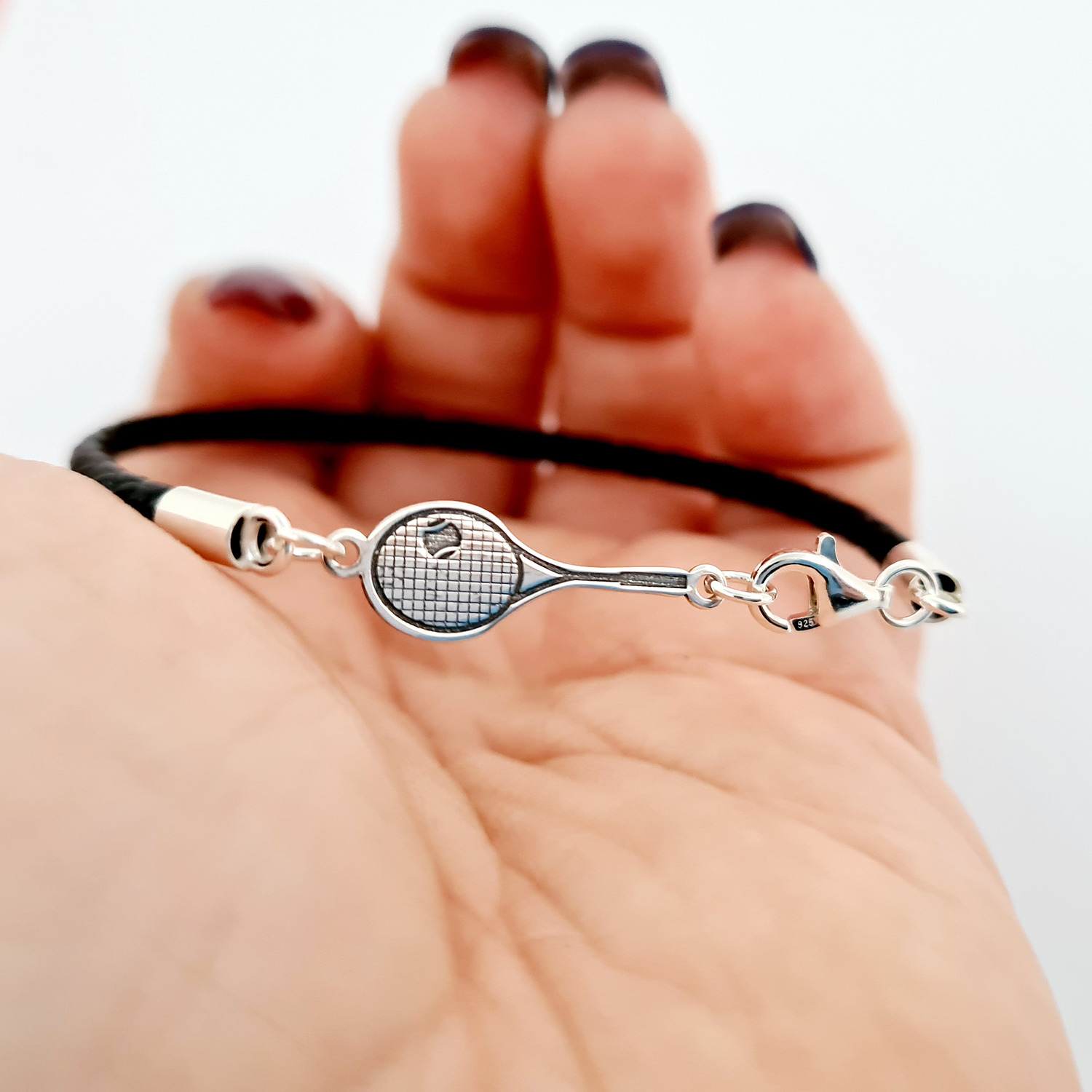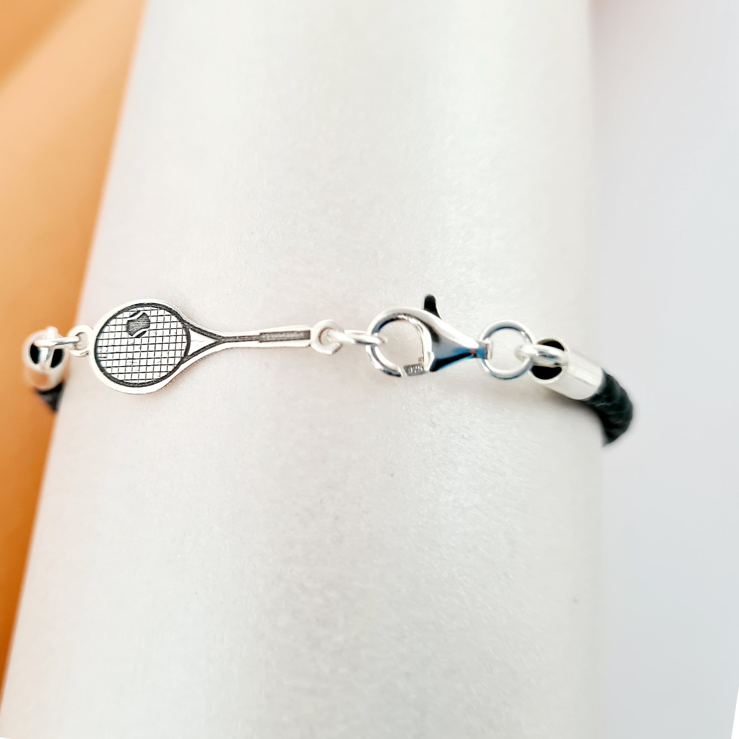 Bratara Racheta Tenis - Argint 925, piele impletita