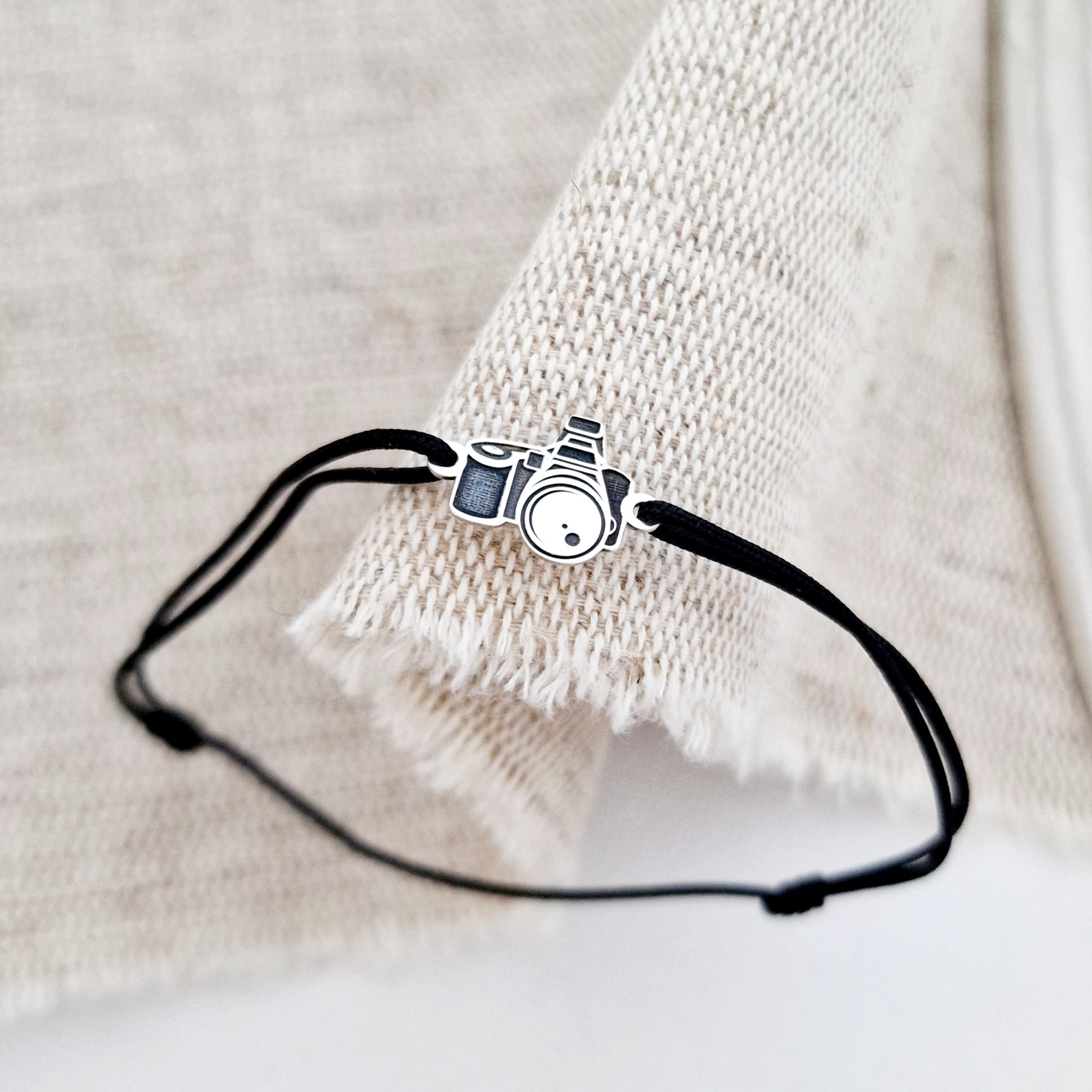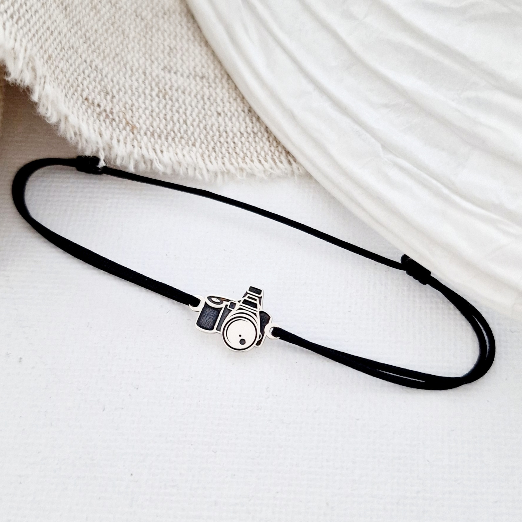 Bratara Aparat foto - Argint 925, snur negru