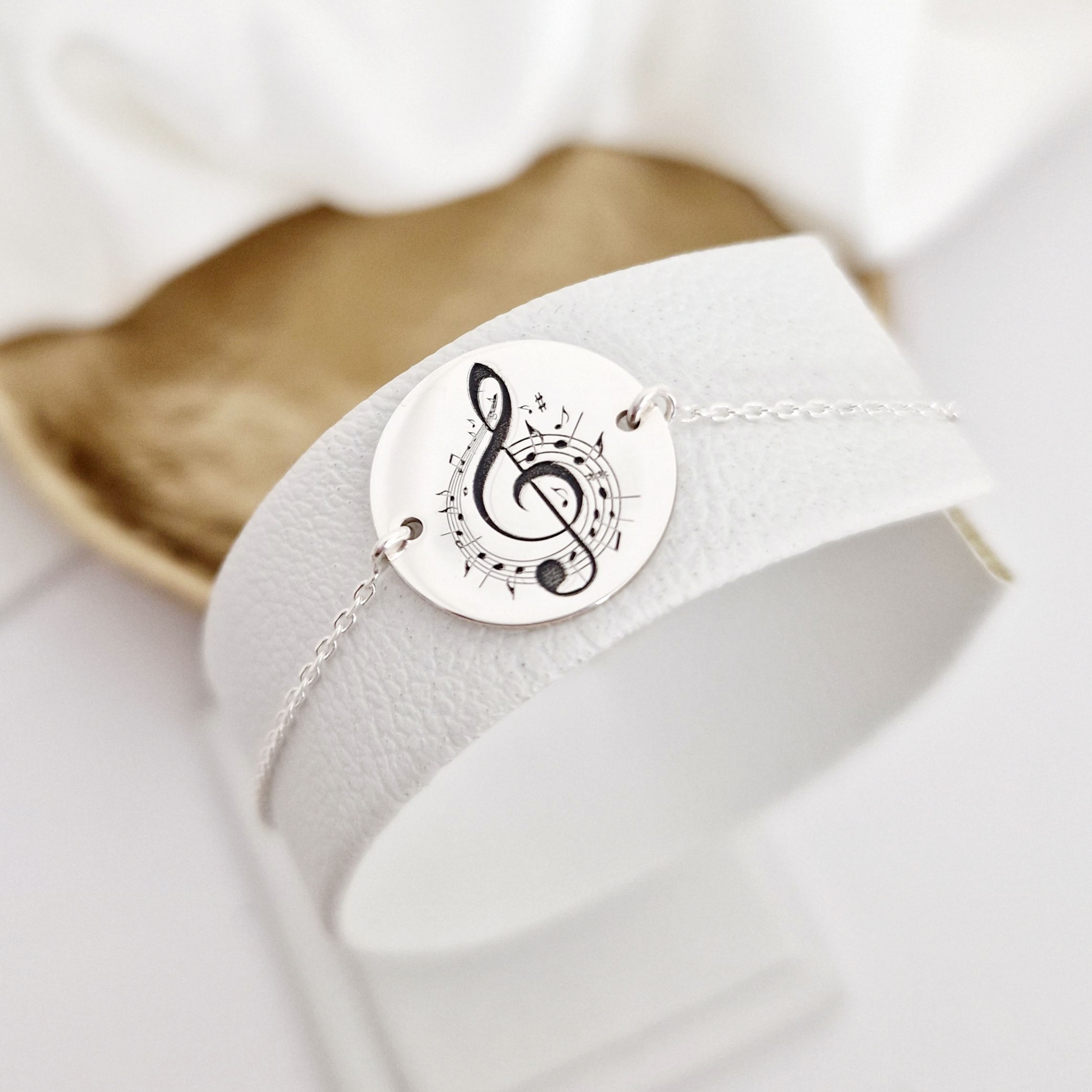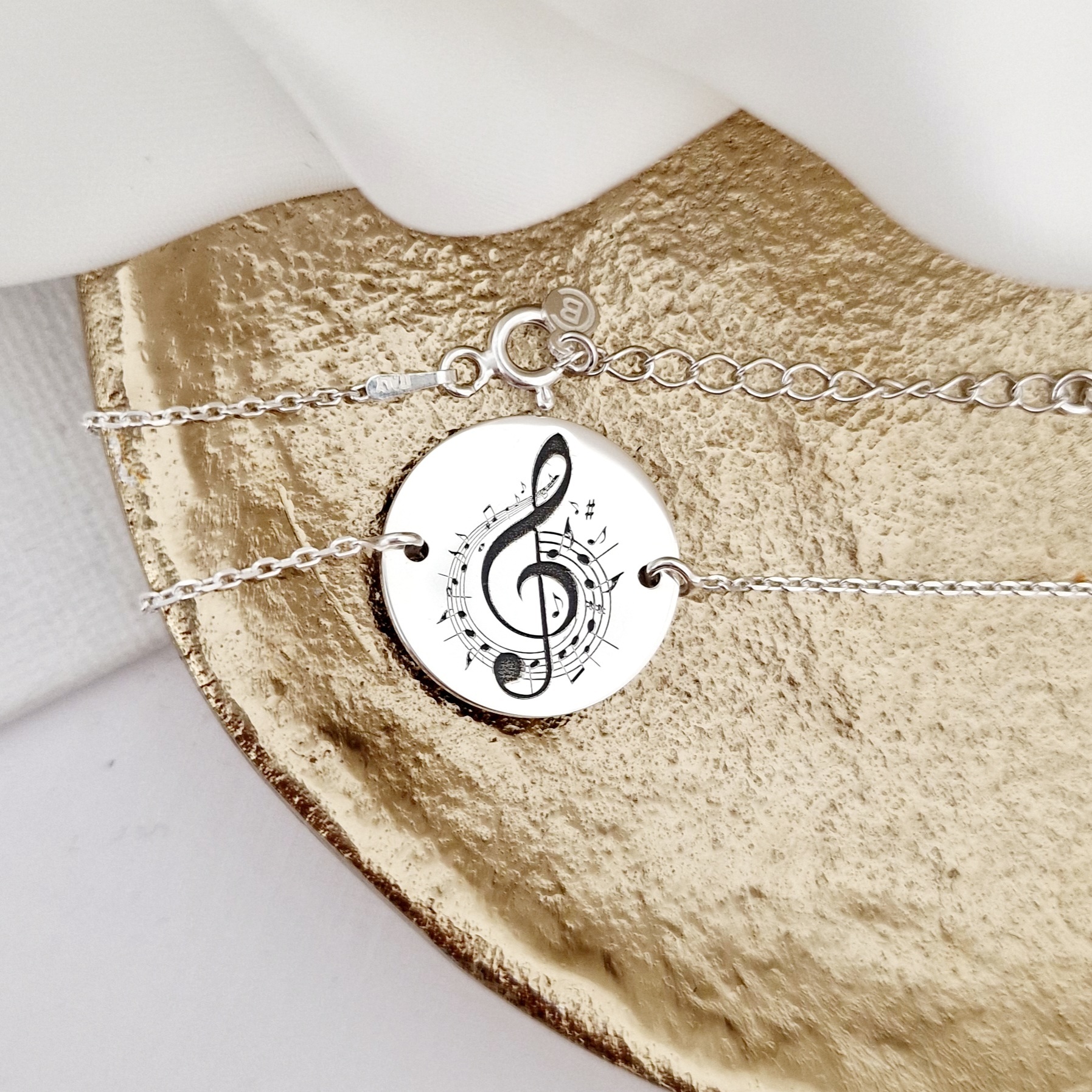 Bratara banut personalizat - Cheia sol - portativ si note muzicale - Argint 925