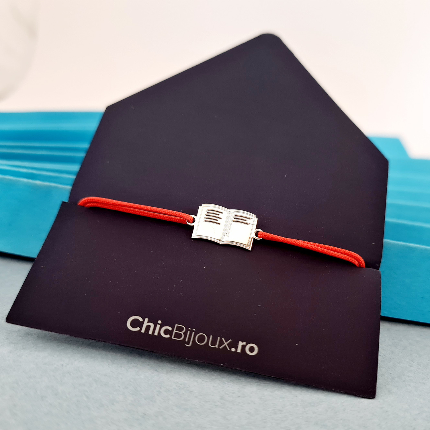 Bratara Carte - Argint 925, snur rosu reglabil
