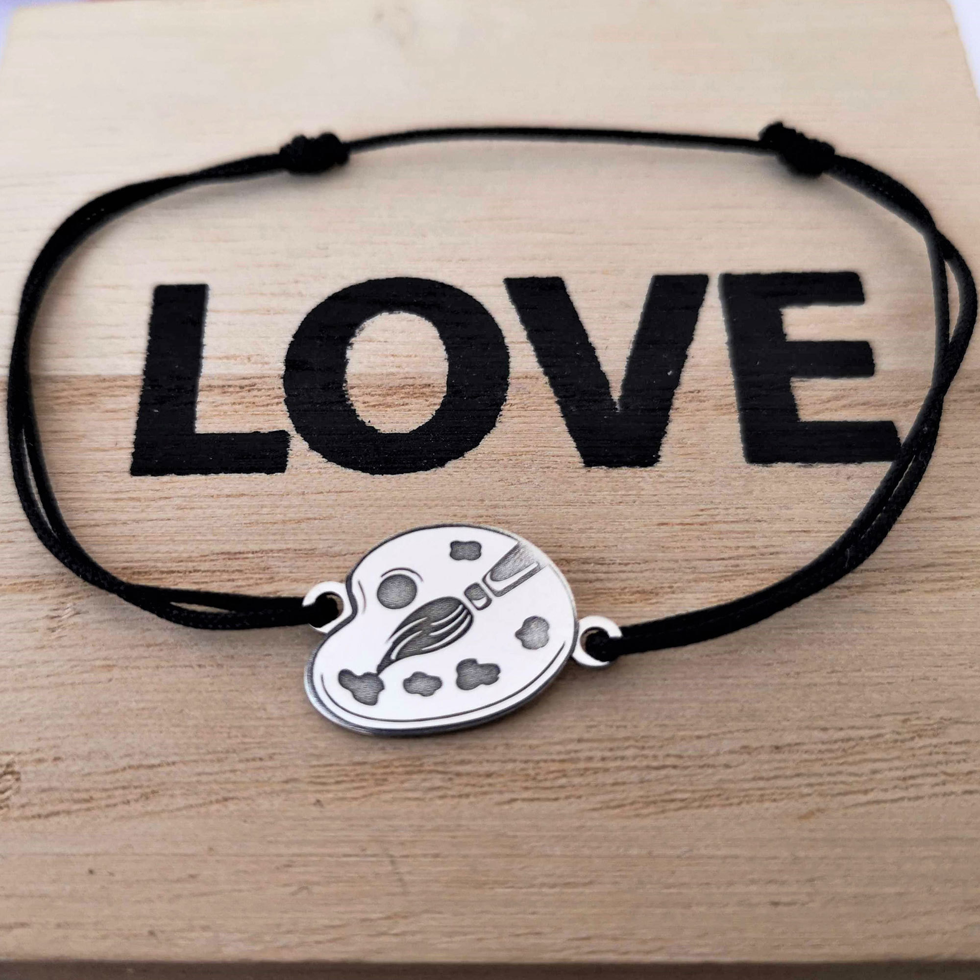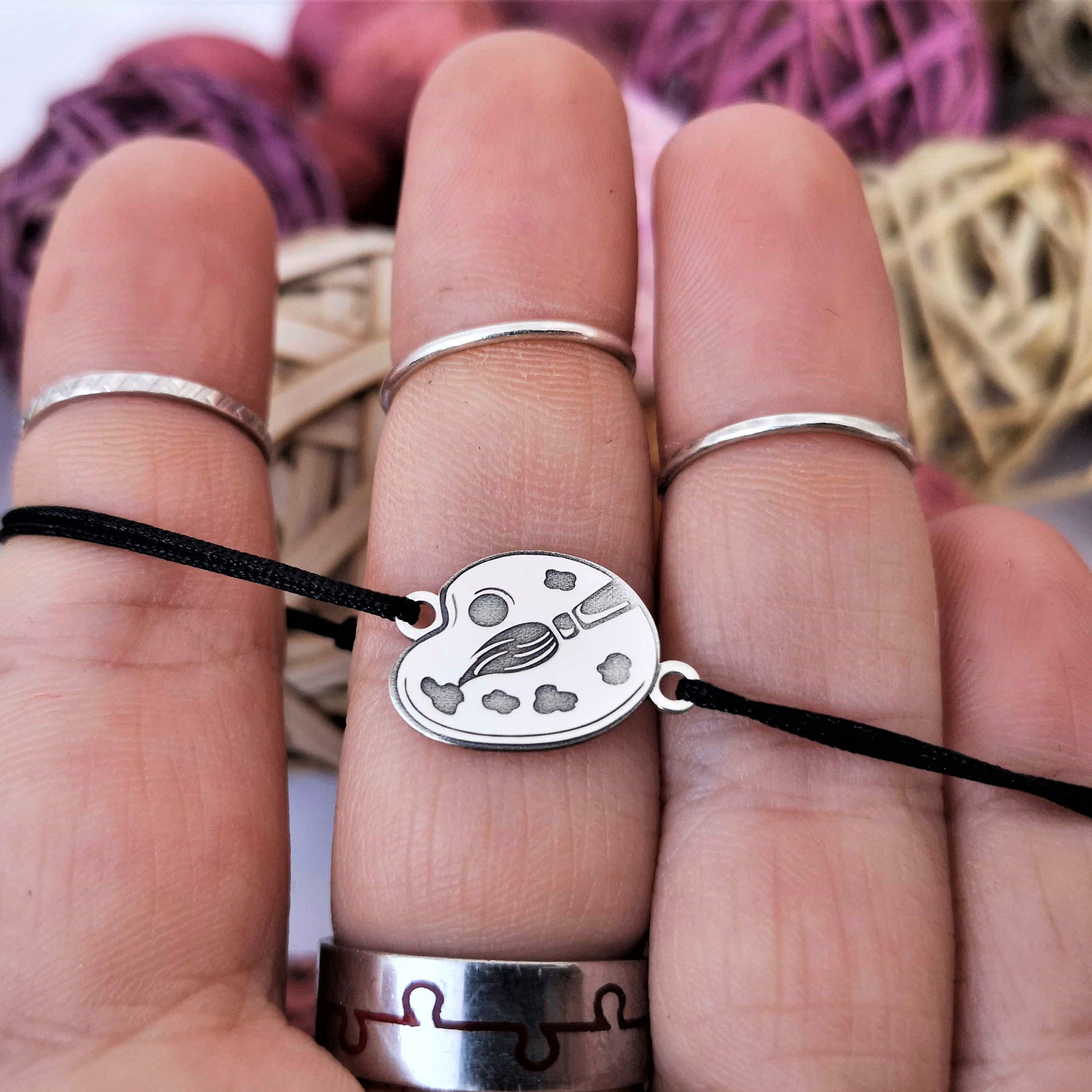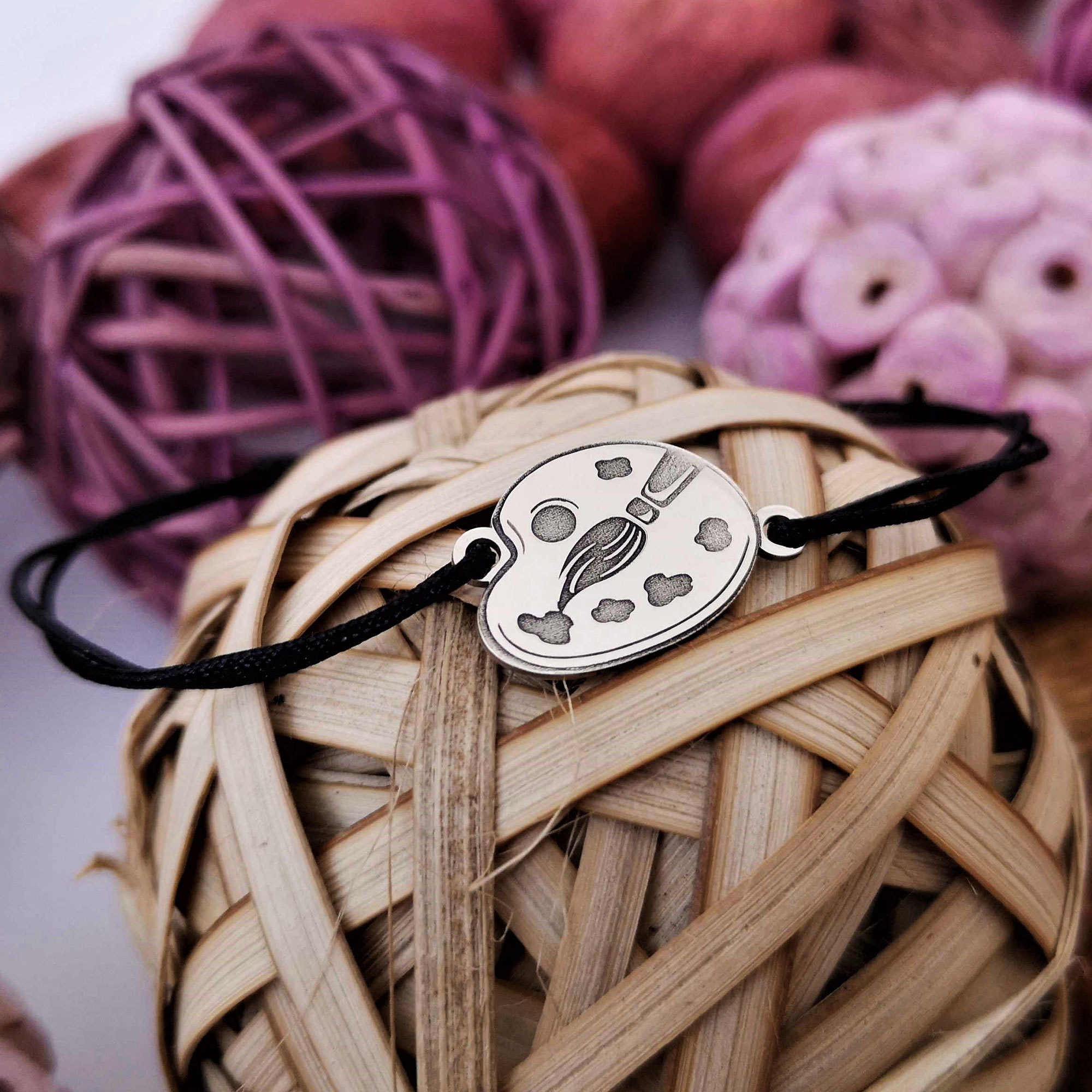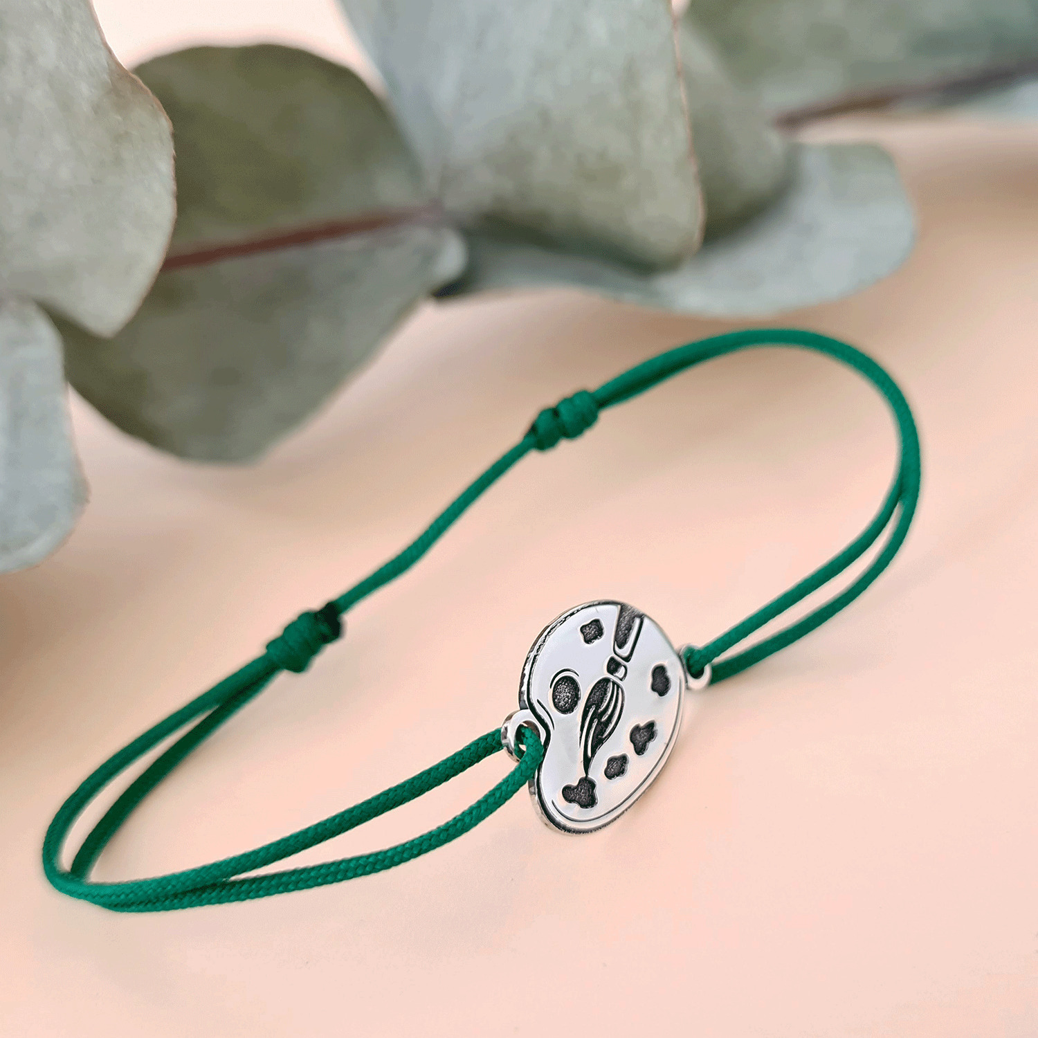 Bratara paleta de pictor - Argint 925, snur reglabil - diverse culori