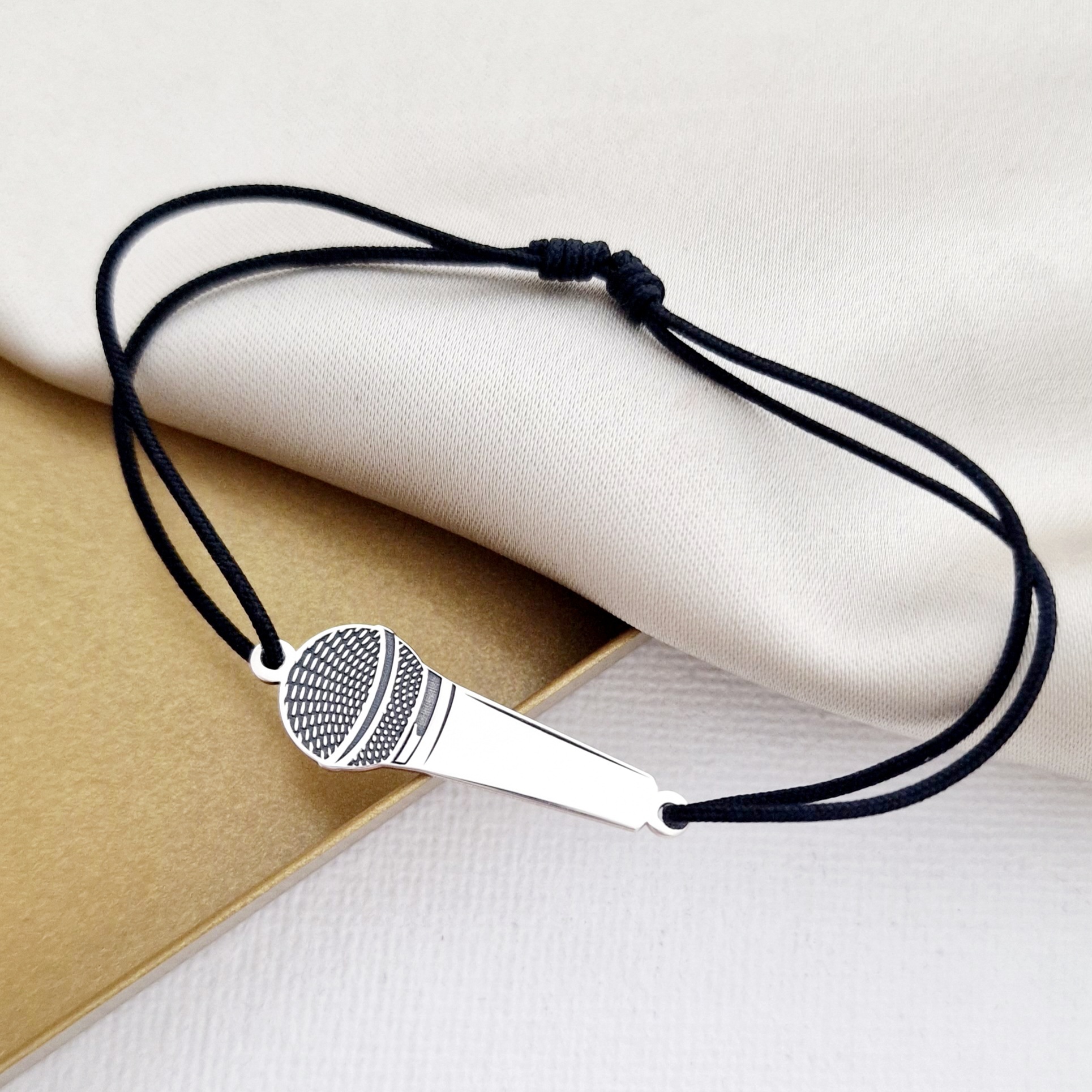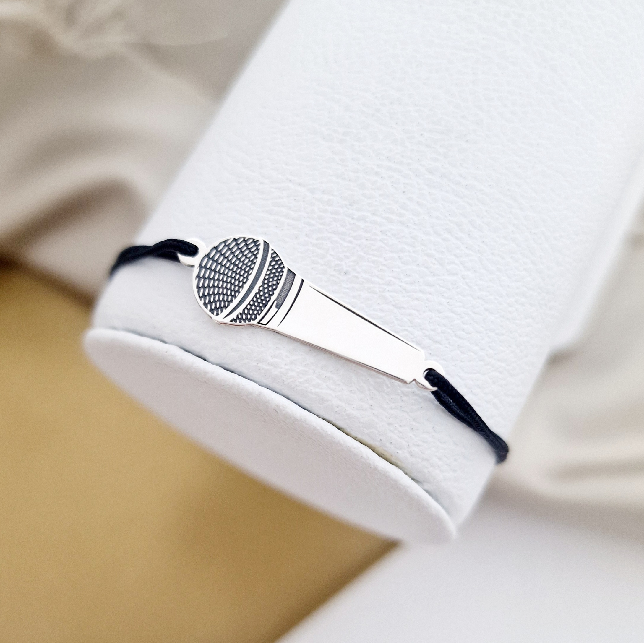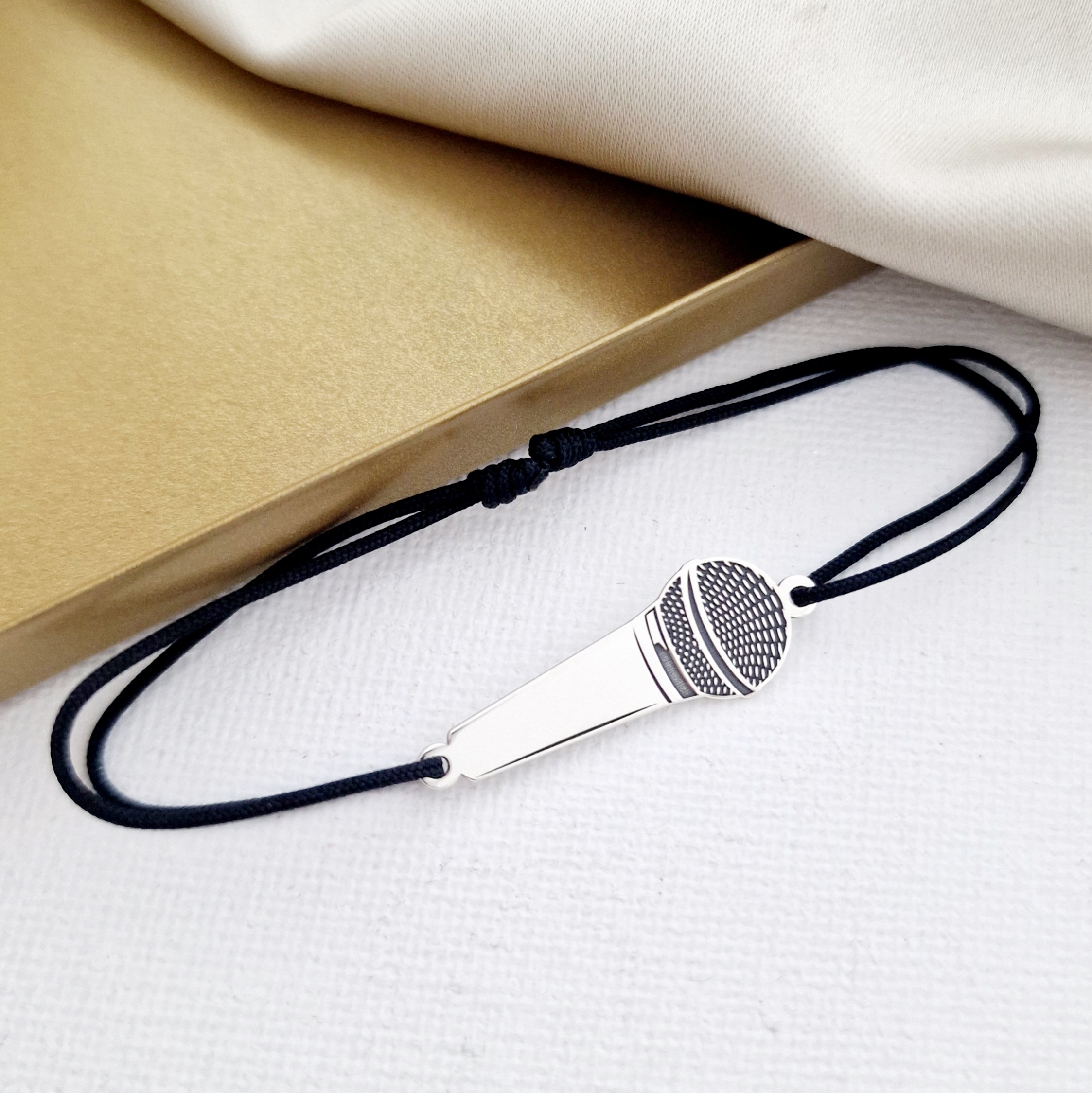 Bratara personalizata - Microfon - Argint 925 - snur reglabil