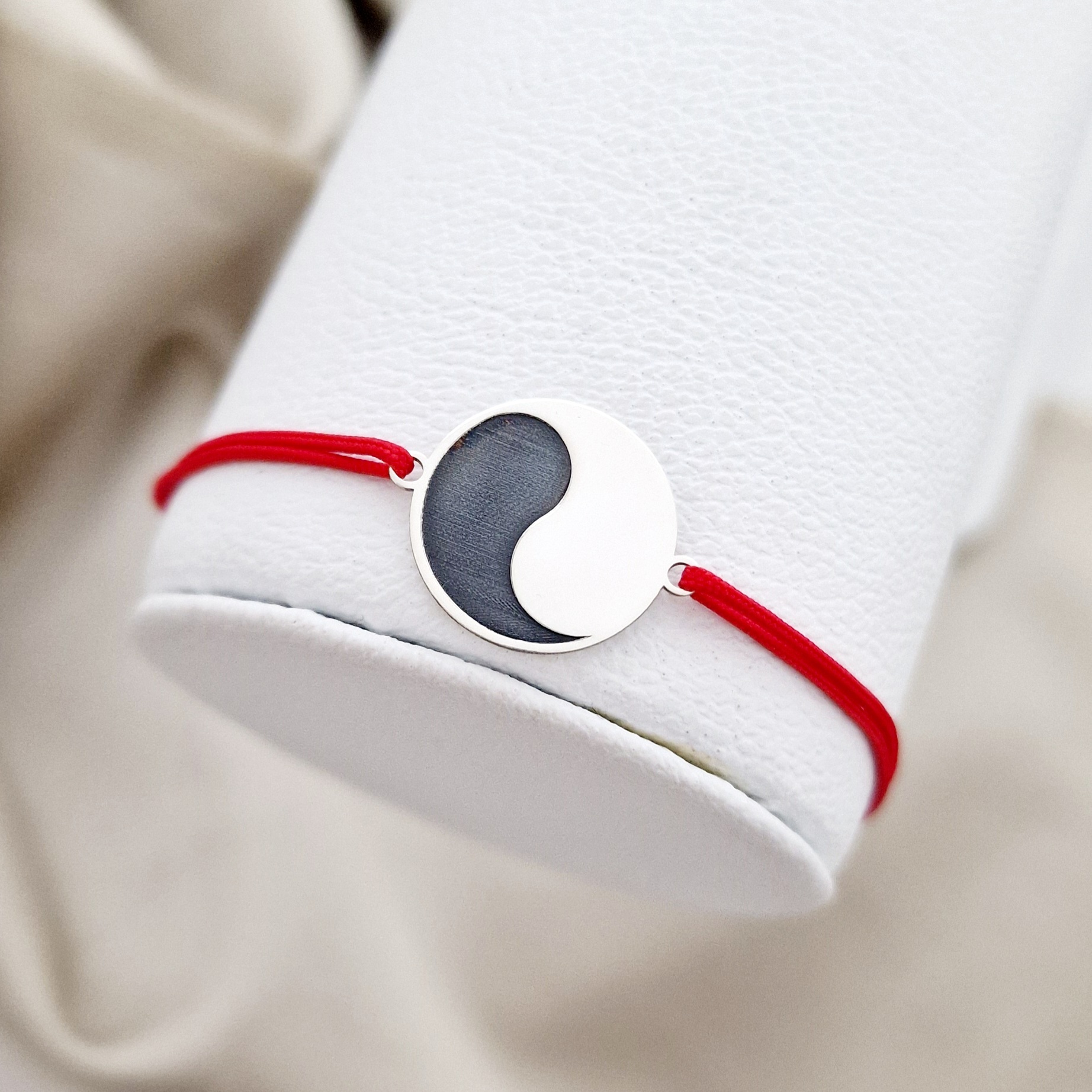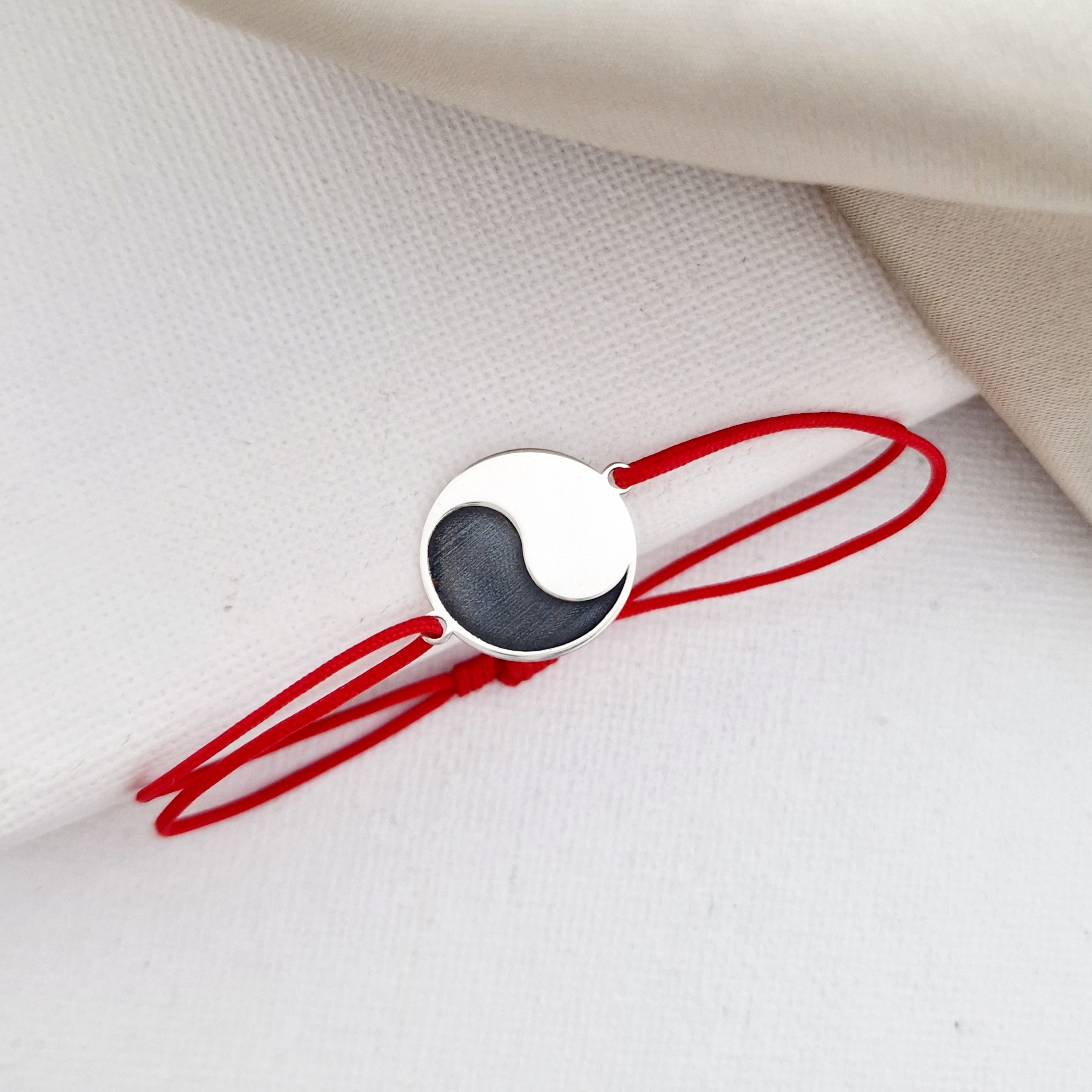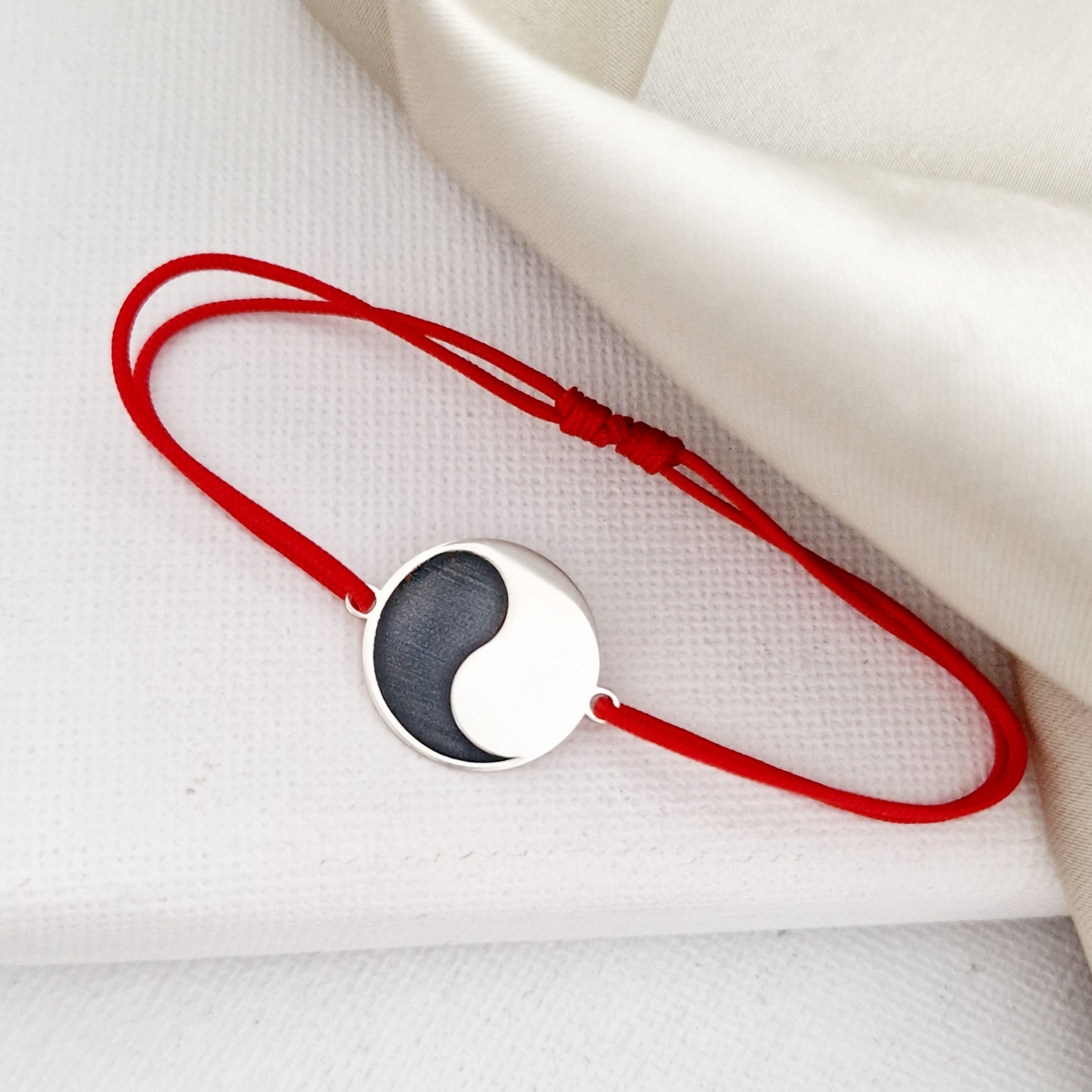 Bratara Yin&Yang - Argint 925, snur negru reglabil