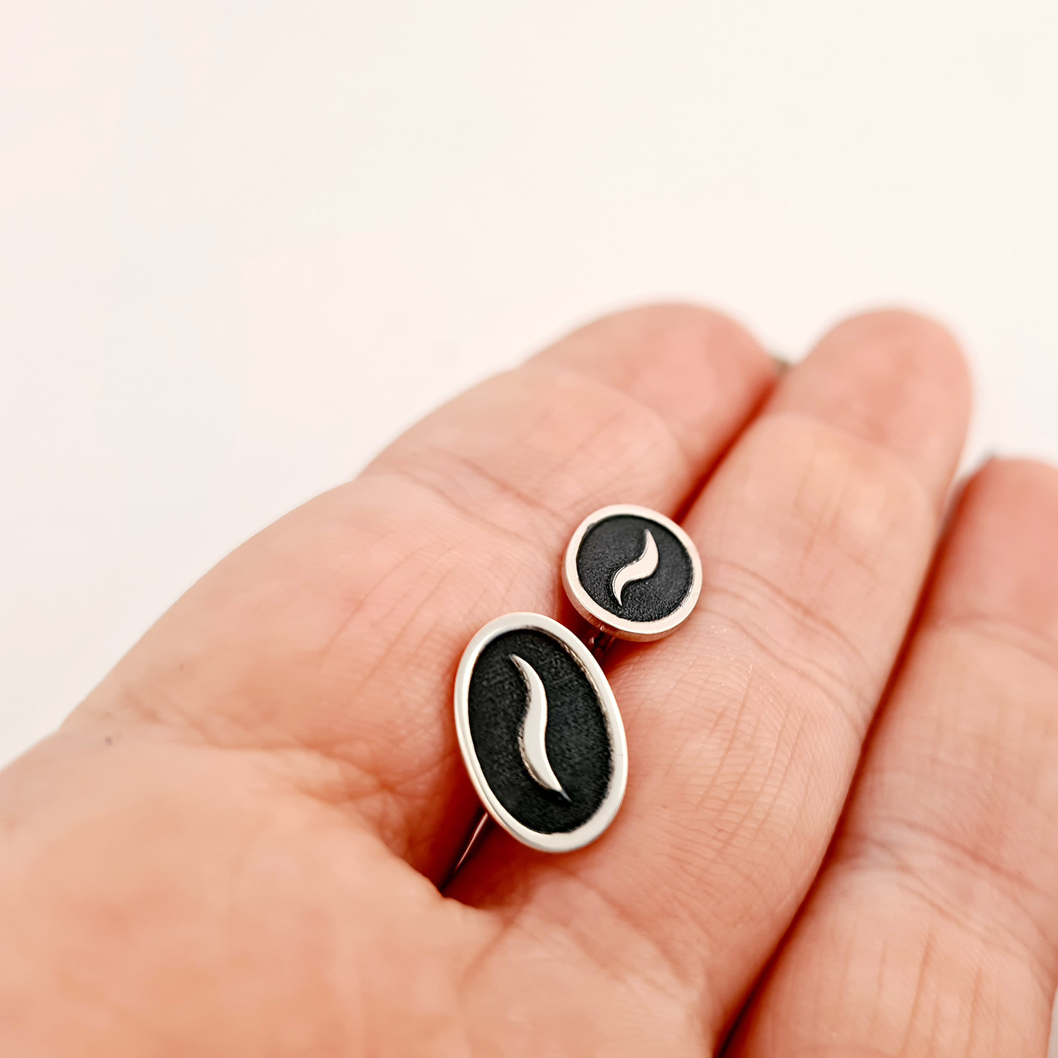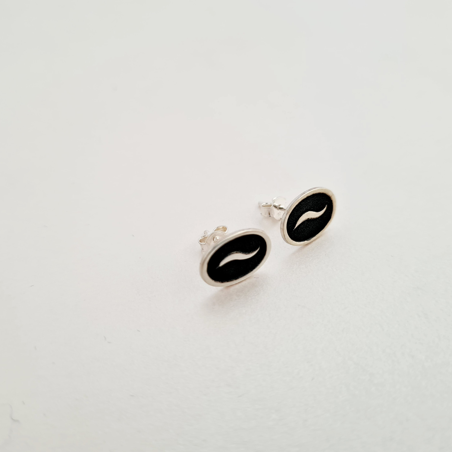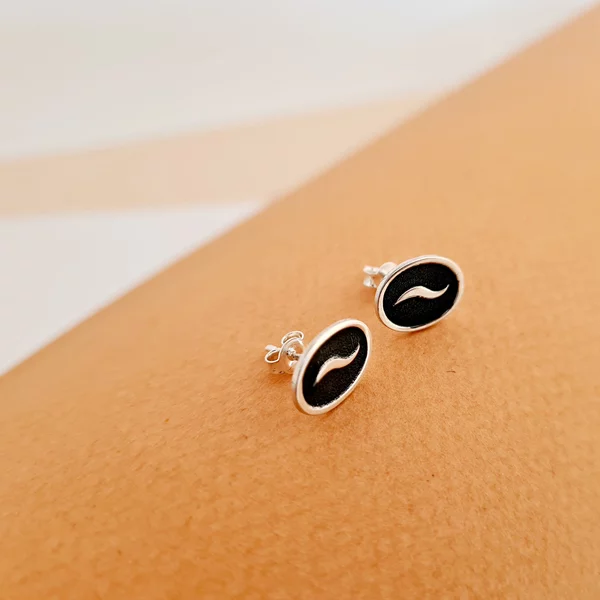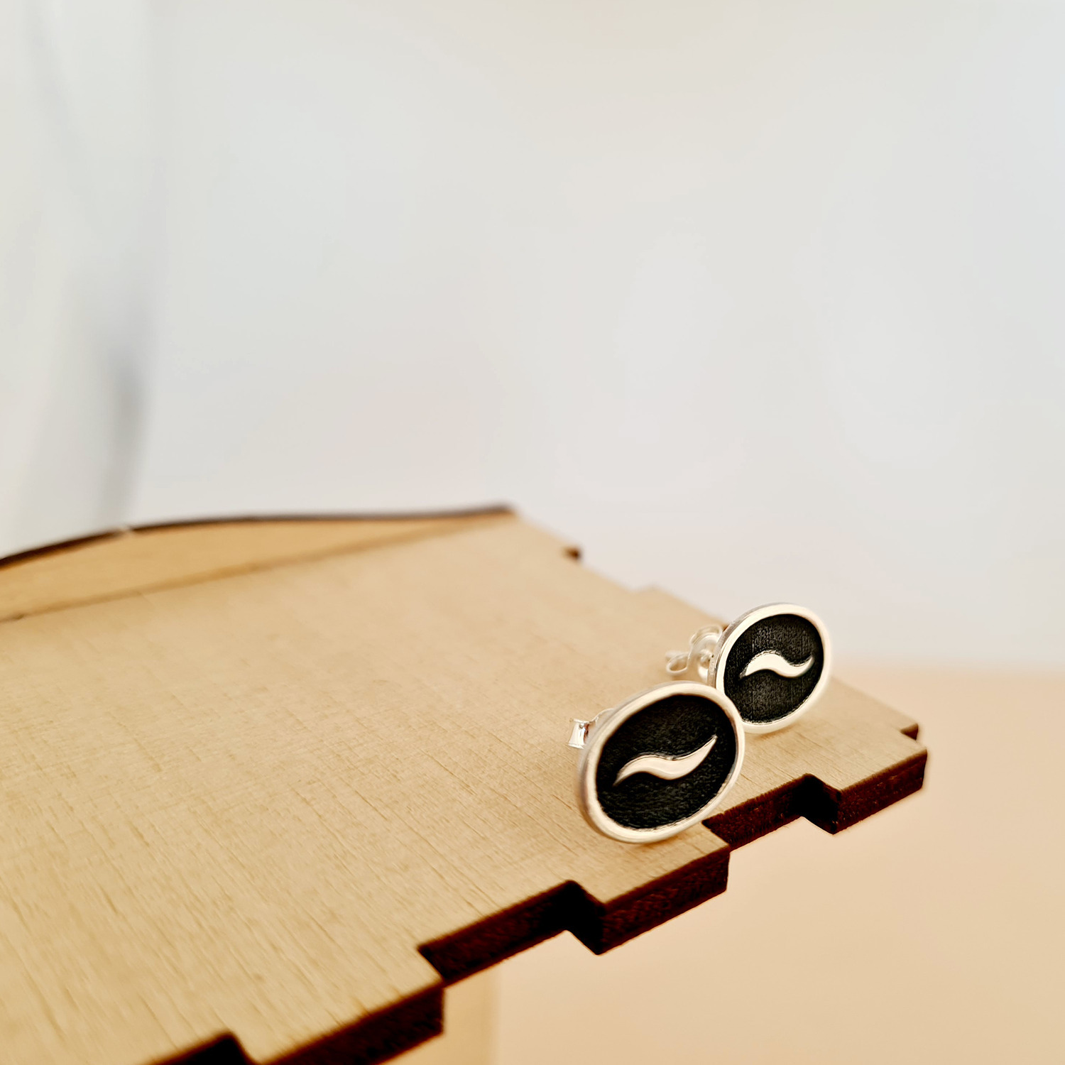 O pereche de cercei personalizata, realizata din Argint 925 prin taiere si gravare laser, avand dimensiunea de 10x12 mm si sistemul de inchidere tip surub.