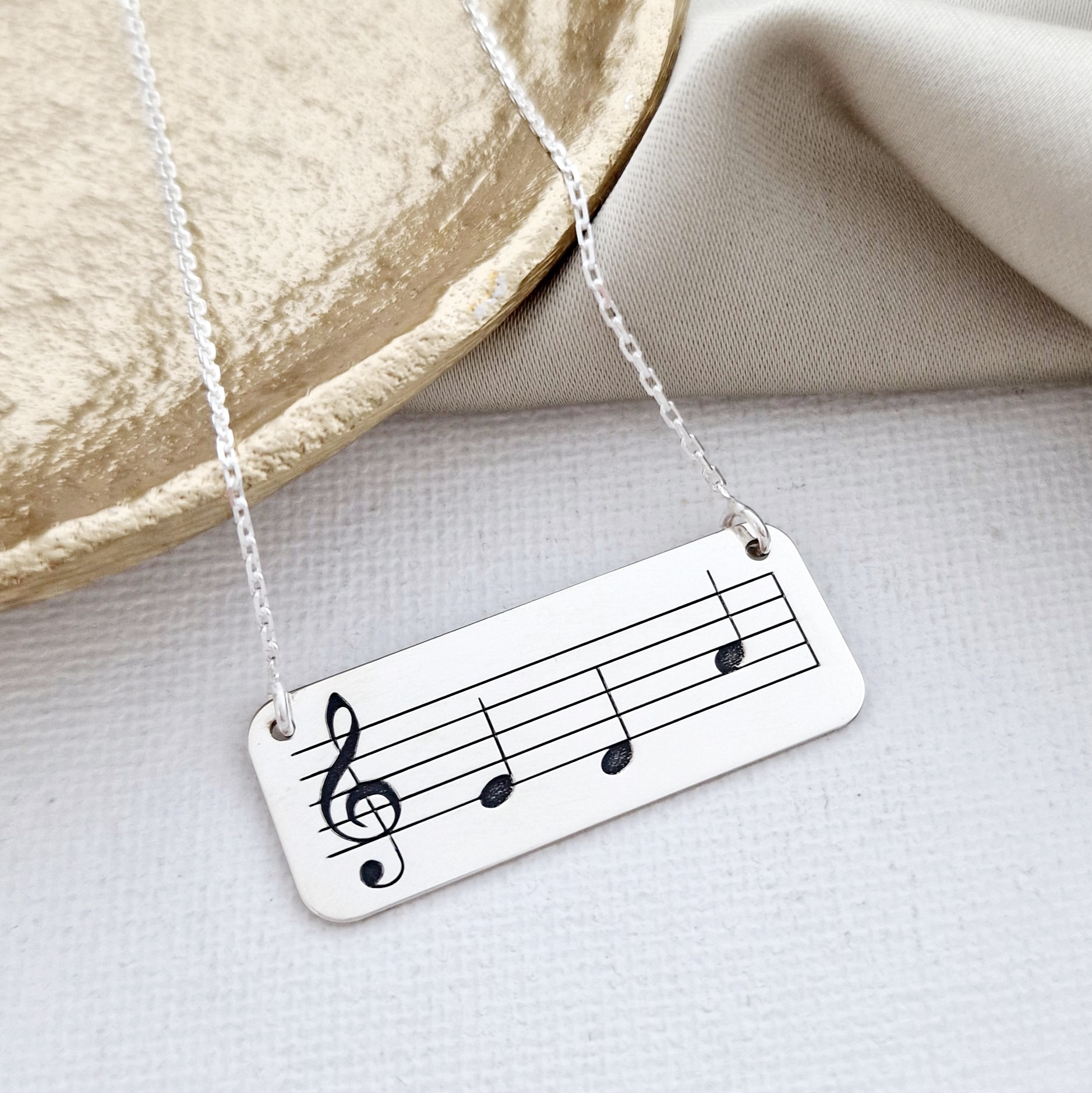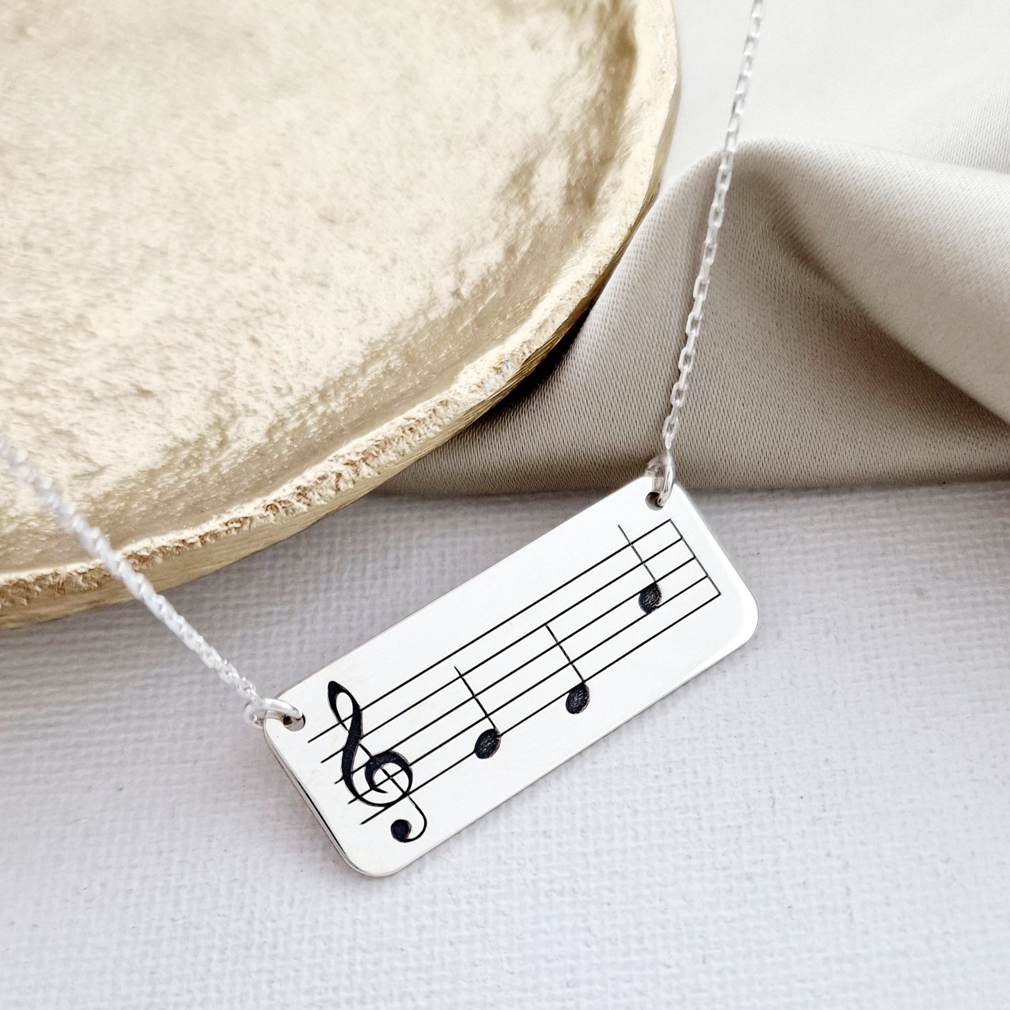 Lantisor cu pandantiv - Placuta gravata cu portativ, cheia sol si note muzicale - Argint 925