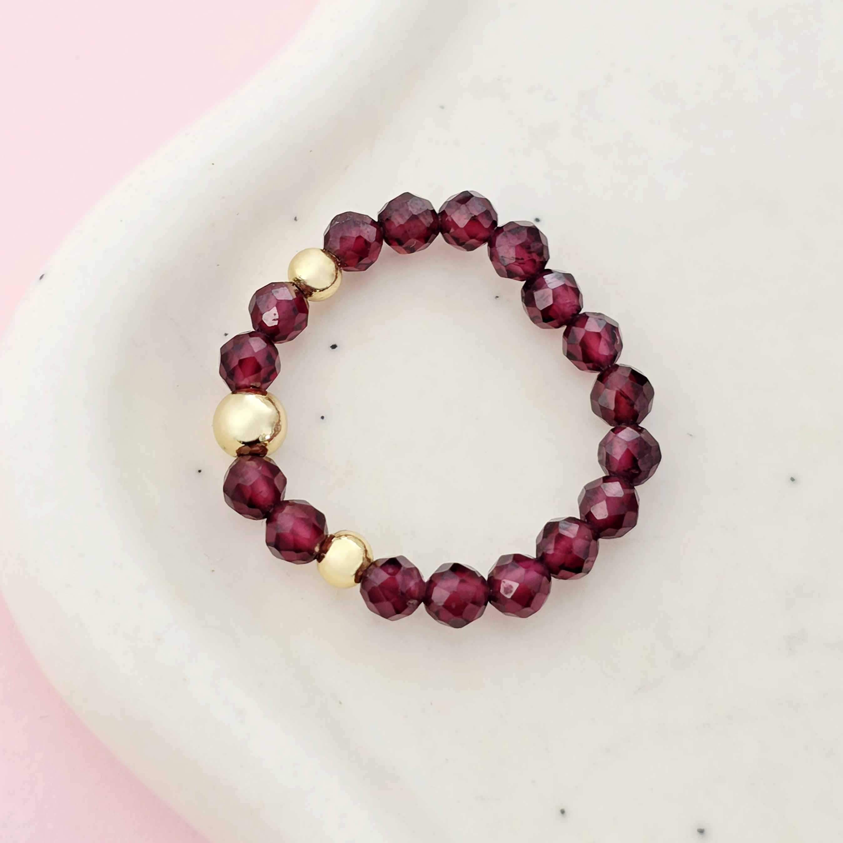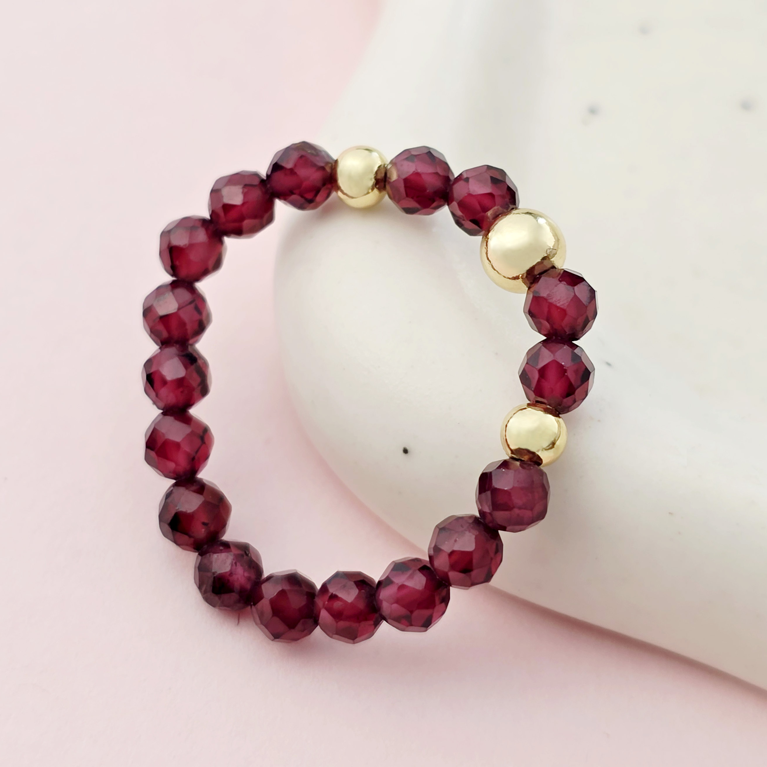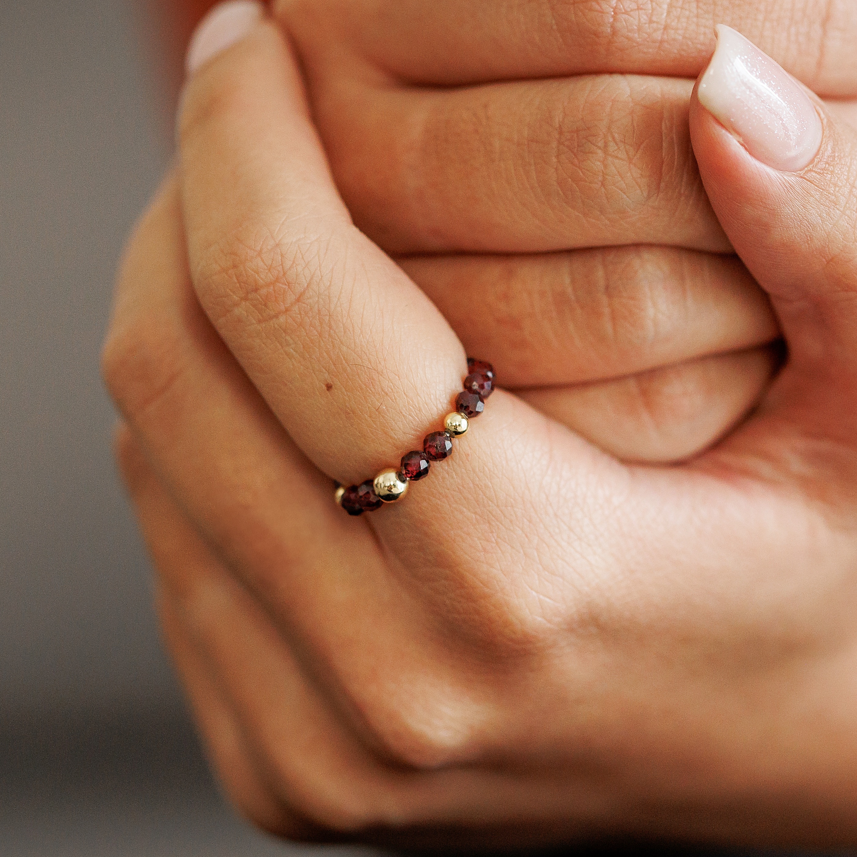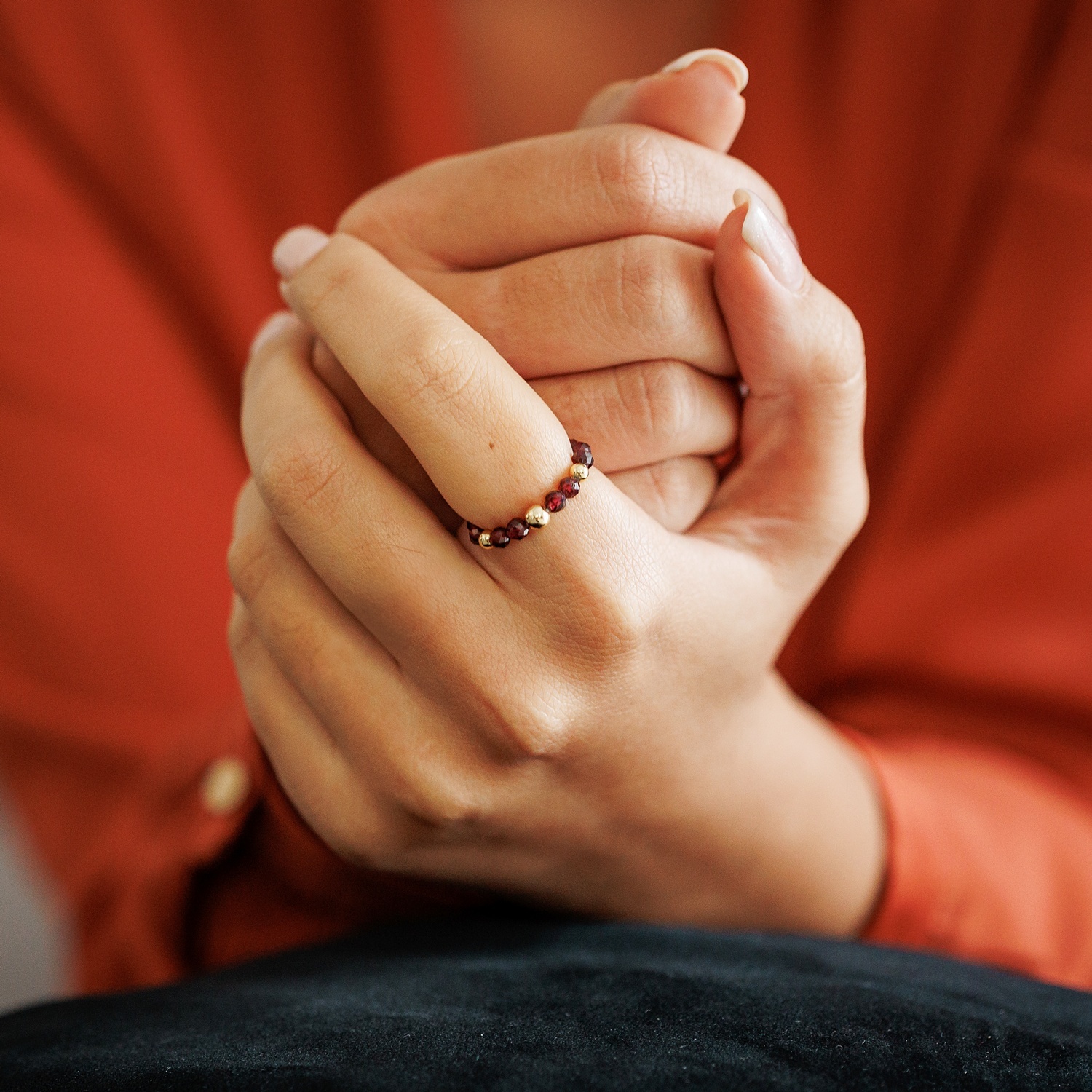 Inel Vitalitate SOLO - Pietre Granat & Bilute Argint placat cu Aur Galben 18k