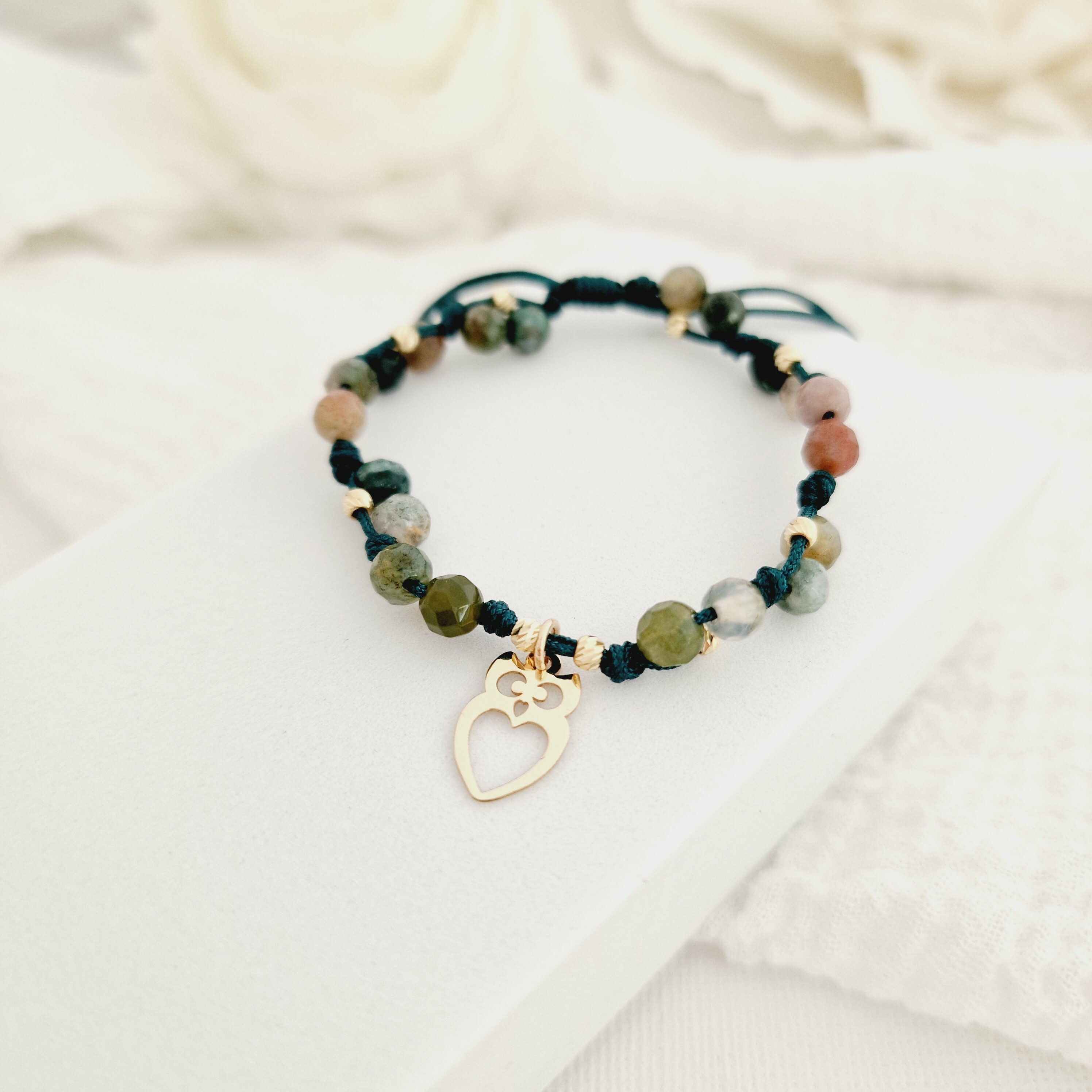 Bratara Vitalitate - Charm bufnita si bilute 2.5 mm din Aur 14K - Pietre semiprețioase Agat fatetat - Snur verde