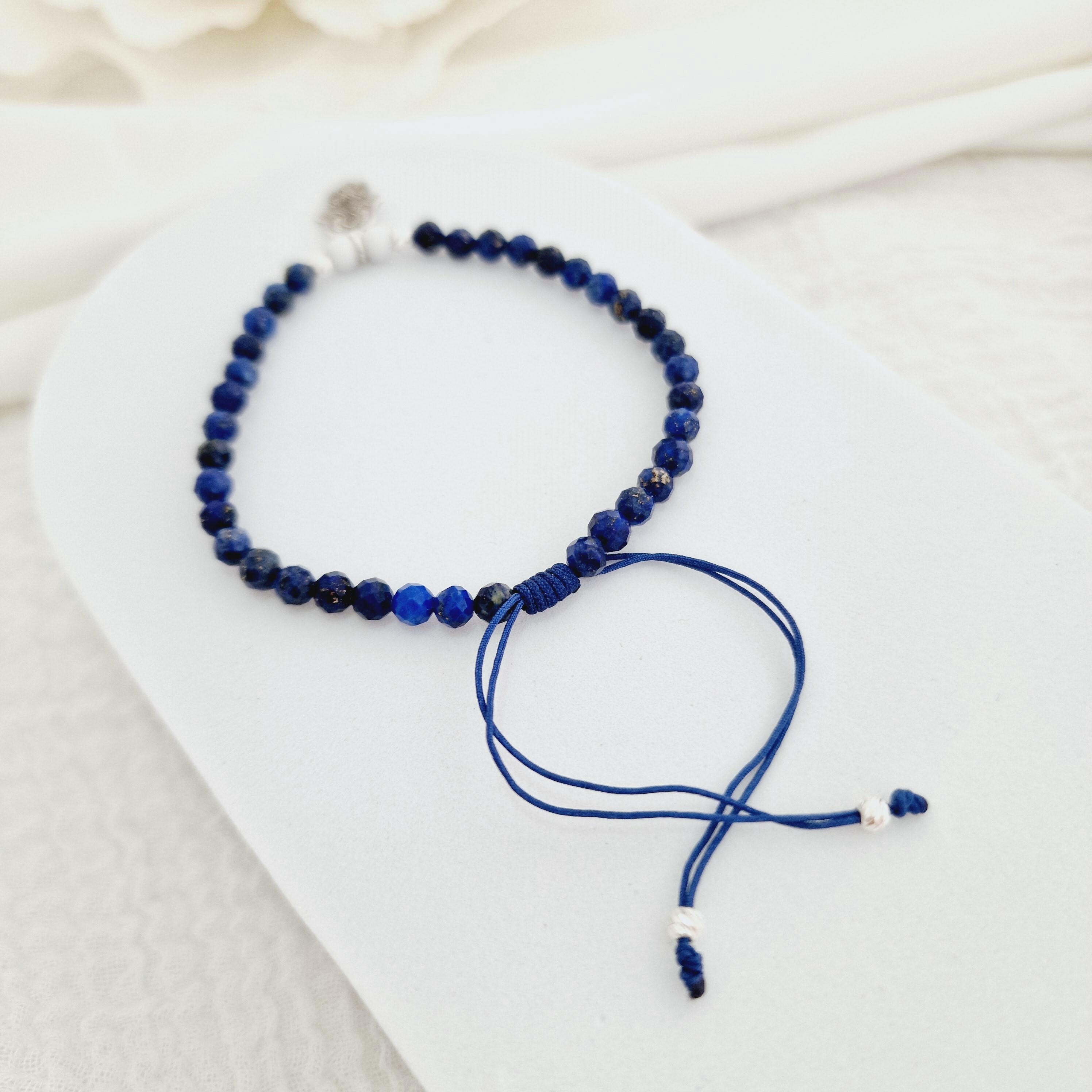 - Bratara este formata dintr-un sirag de 36 de pietre semipretioase lapis fatetat , 2 pietre howlit si 4 bilute de 2.5 mm din Argint 925.