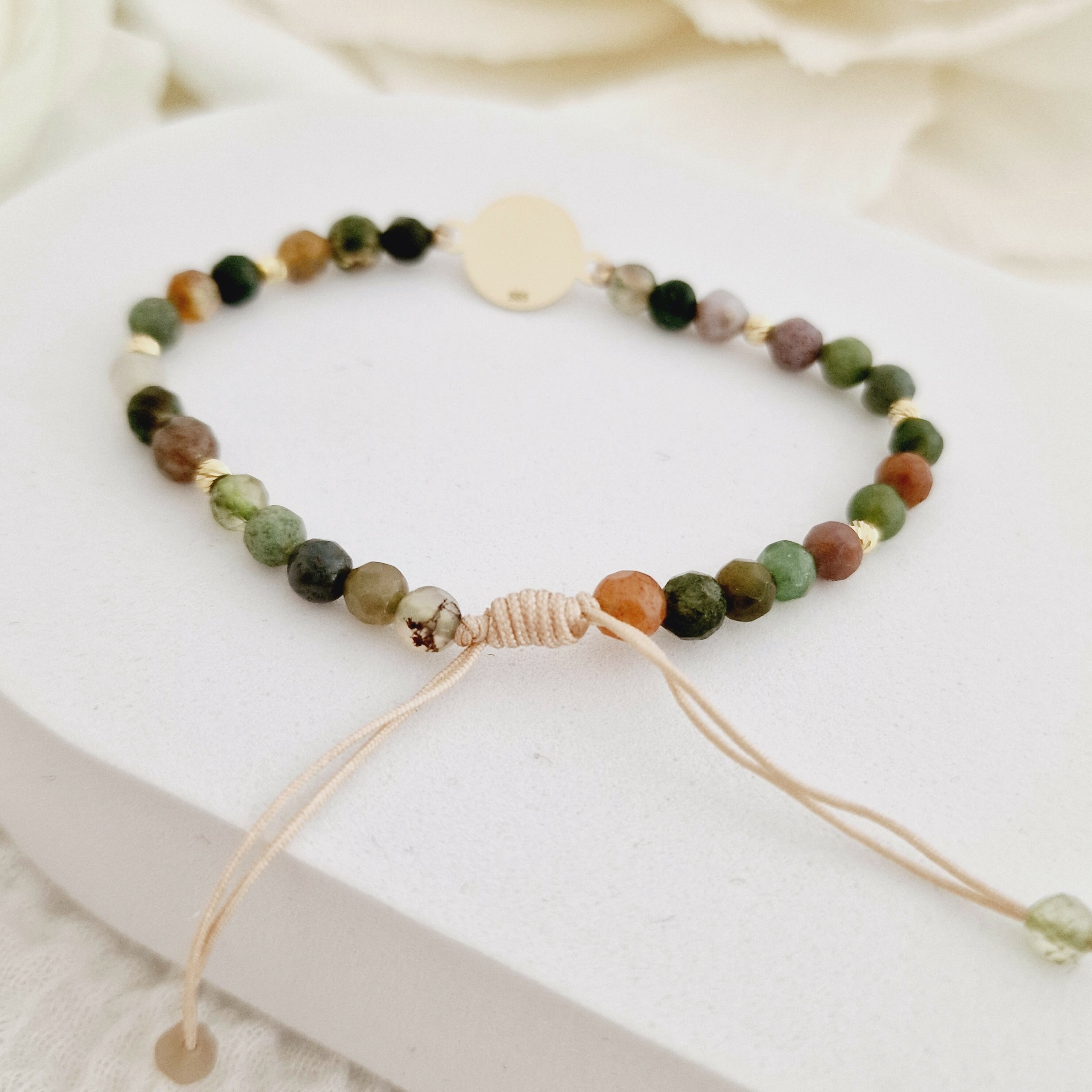 Bratara Vitalitate - Podoaba Naturii - Banut cu femeie cu par din frunze din Aur 14K - Pietre semipretioase Agat fatetat - Snur nude