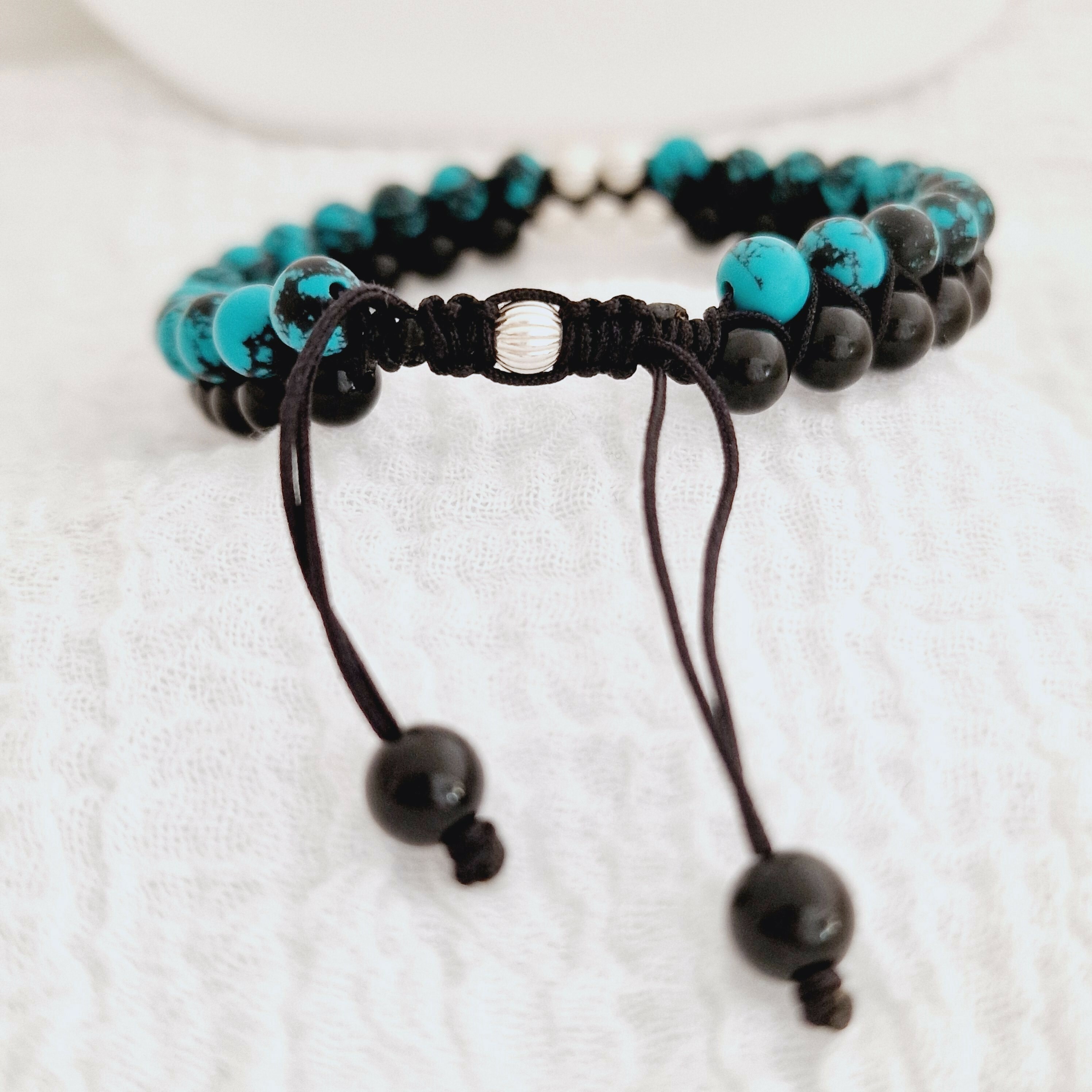 Bratara Vitalitate - Simfonie de Energie - Bilute 5 mm din Argint 925 - Pietre semipretioase Turcoaz & Onix - Snur negru