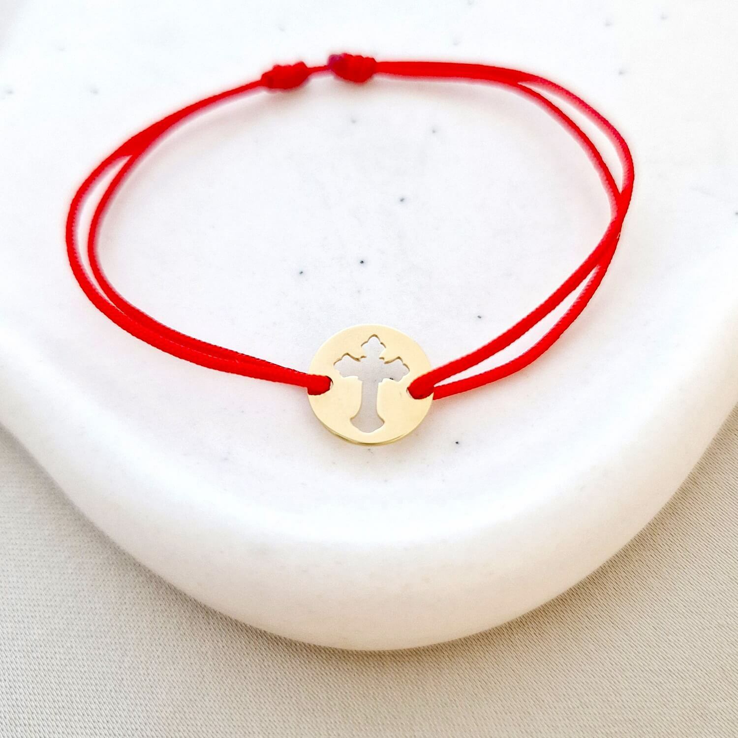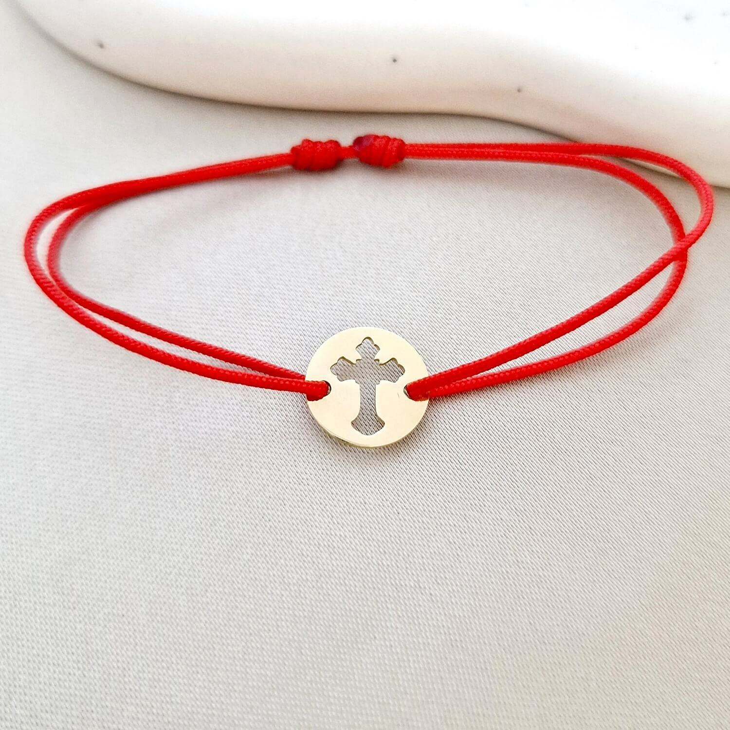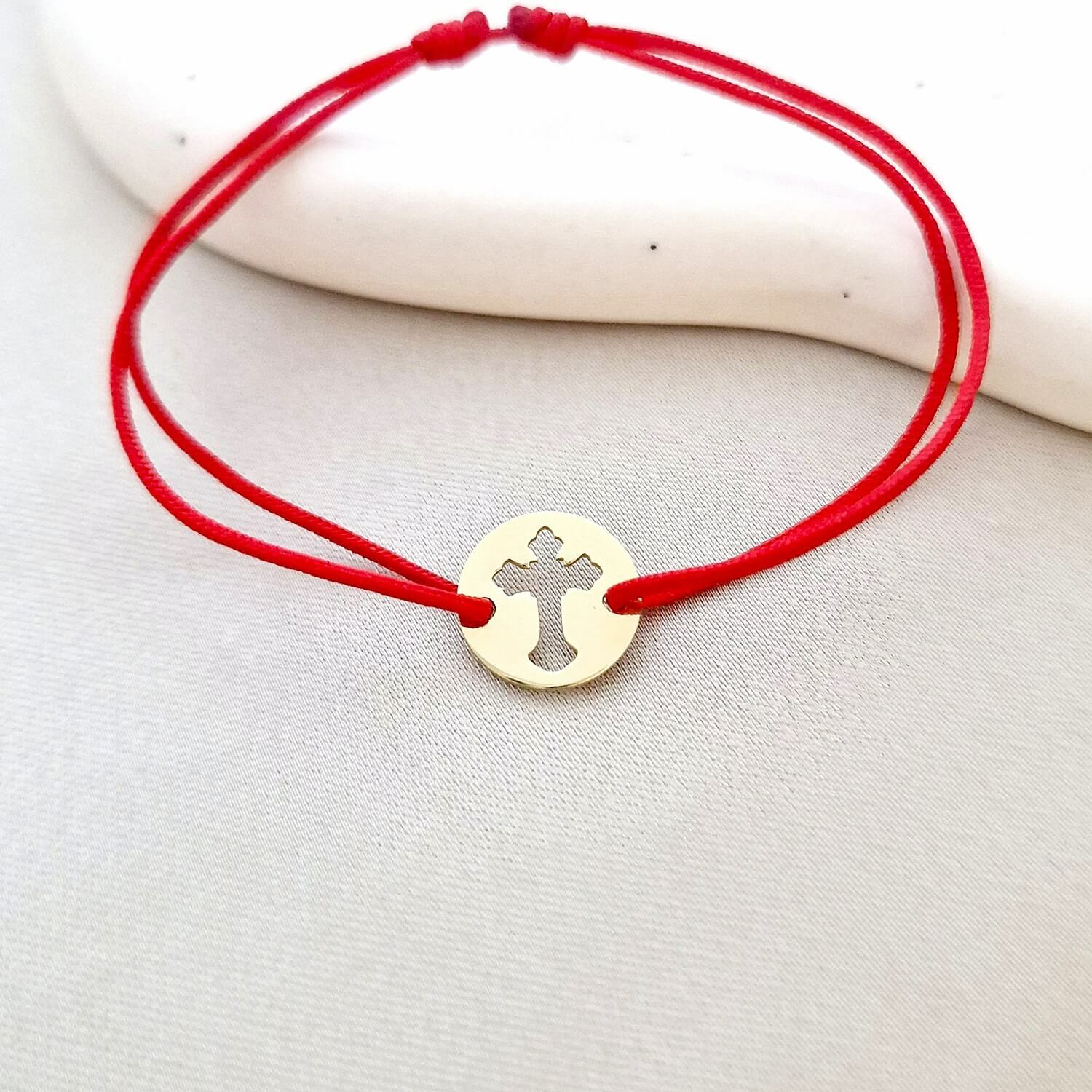 Bratara banut - Cruce decupata - Argint 925 placat cu Aur Galben 18K - snur reglabil