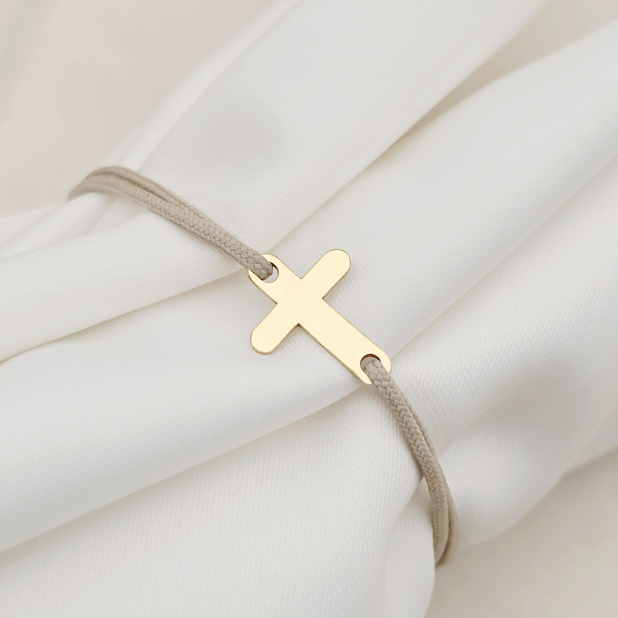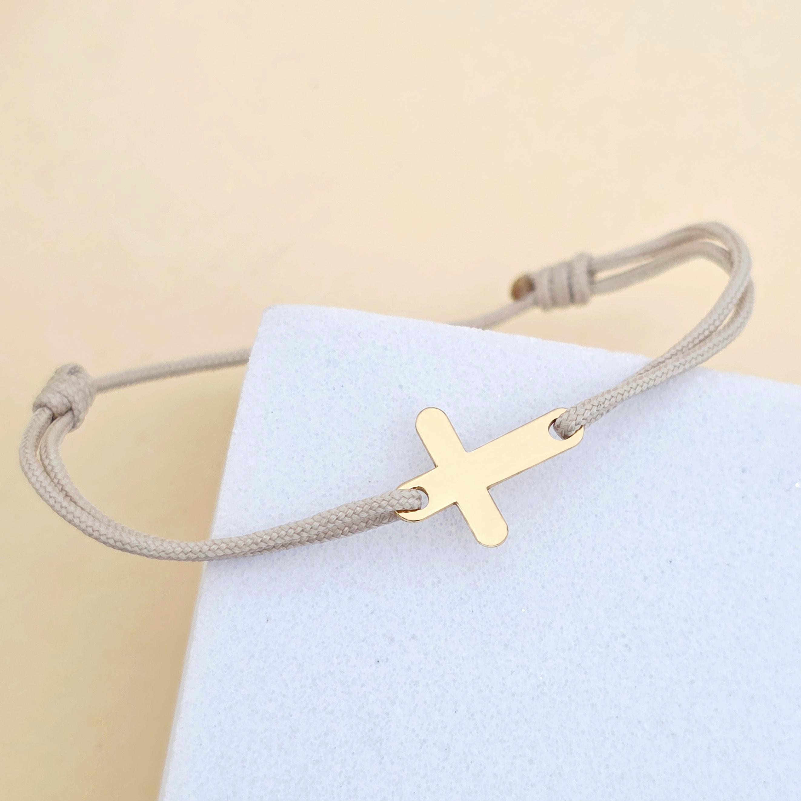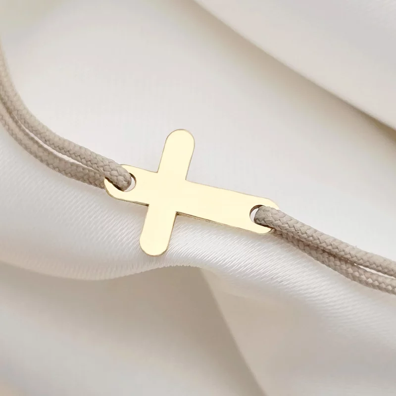 Bratara Cruciulita - Argint 925 placat cu Aur Galben 18K - snur reglabil